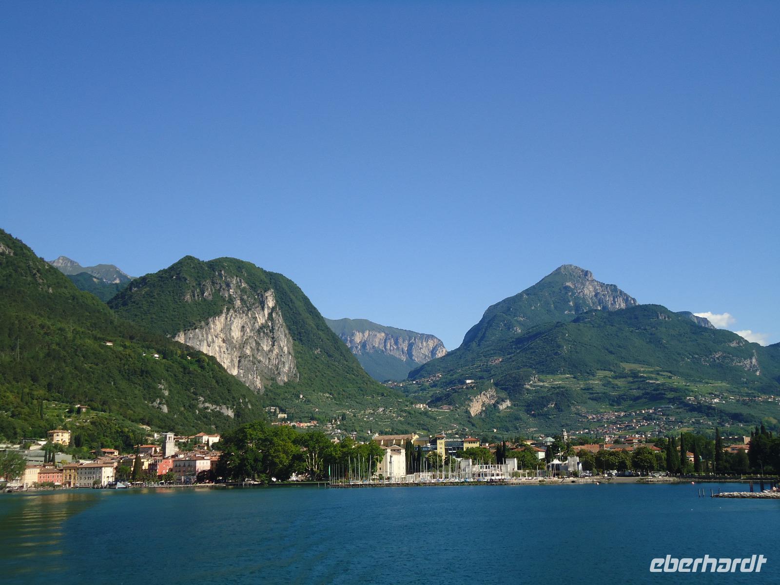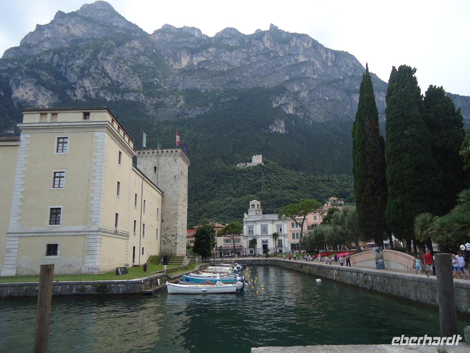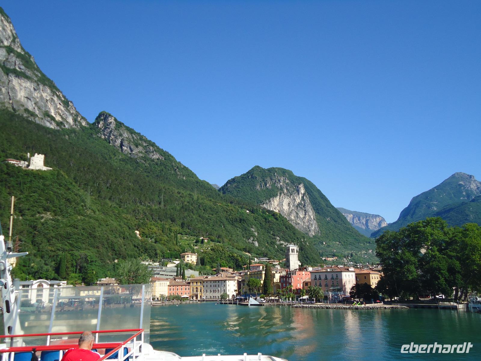 In Riva angekommen ist individuelle Freizeitgestaltung angesagt. Die einen wollen erst einmal ein kleines Nickerchen machen, andere zieht es ins kühle Nass oder zu einem (r) „kühlen Blonden" oder, oder, oder...vielleicht auch zu einem Spaziergang durch die Stadt. Und es gibt auch ein paar ganz, ganz Wagemutige, die den Aufstieg zur Bastion riskieren. Die wie ein Adlerhorst an der Rocchetta hängende Bastion (von denVenezianern 1508 erbaut und von den Franzosen 1703 gesprengt) hat heute keine militärische Funktion mehr, sondern ist vielmehr eine empfehlenswerte Aussichtskanzel.