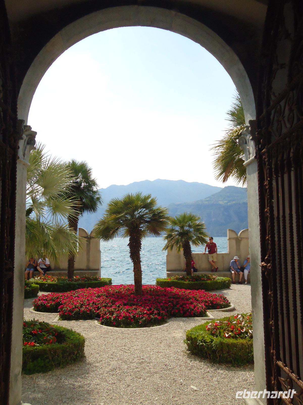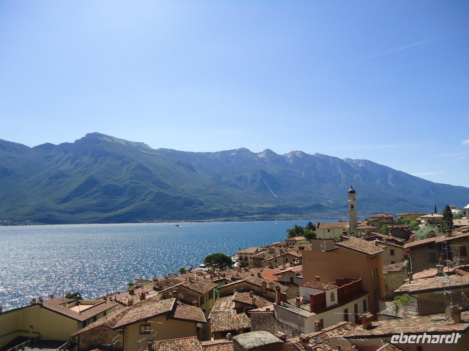 Wir genießen immer wieder die abwechslungsreiche und reizvolle Landschaft, den wunderschönen Blick auf das Westufer, wo die Berge in den See zu fallen scheinen. Wir genießen aber auch immer wieder den Blick auf den See, wo die Sonnenstrahlen auf dem Wasser tanzen und die Boote in den Wellen schaukeln.Ja, der Lago di Garda, der größte der oberitalienischen Seen und zugleich das größte Binnengewässer Italien zeigt sich tatsächlich von seiner allerbesten Seite. Wir können gar nicht anders, wir müssen ein Stop einlegen - und das machen wir in Torri del Benaco!. Es ist der einzige Ort am See, der die römische Bezeichnung für den Gardasee „Lacus Benacus" noch in seinem Namen führt.