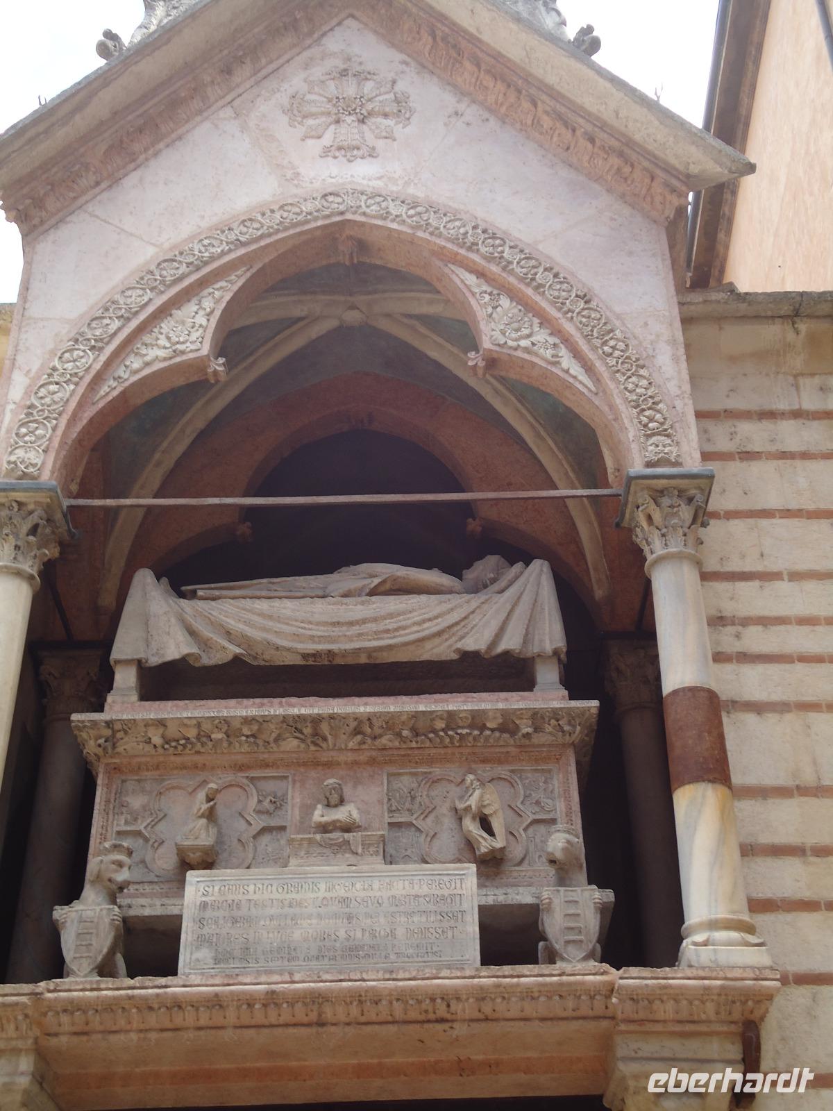 Über die Piazza dei Signori, umgeben von herrlichen Palästen verschiedenster Zeitepochen, erreichen wir die Skaligergräber. Den „Cimitero" (Friedhof) umschließt ein kunstvolles, schmiedeeisernes Gitter aus dem 14. Jahrhundert, in dem immer wieder das Symbol der Skaliger - die Leiter - eingeflochten ist. Am Palazzo della Ragione (auch Palazzo del Comune genannt) vorbei, laufen wir weiter zur Piazza delle Erbe, einst Römisches Forum, heute Zentrum des städtischen Lebens.