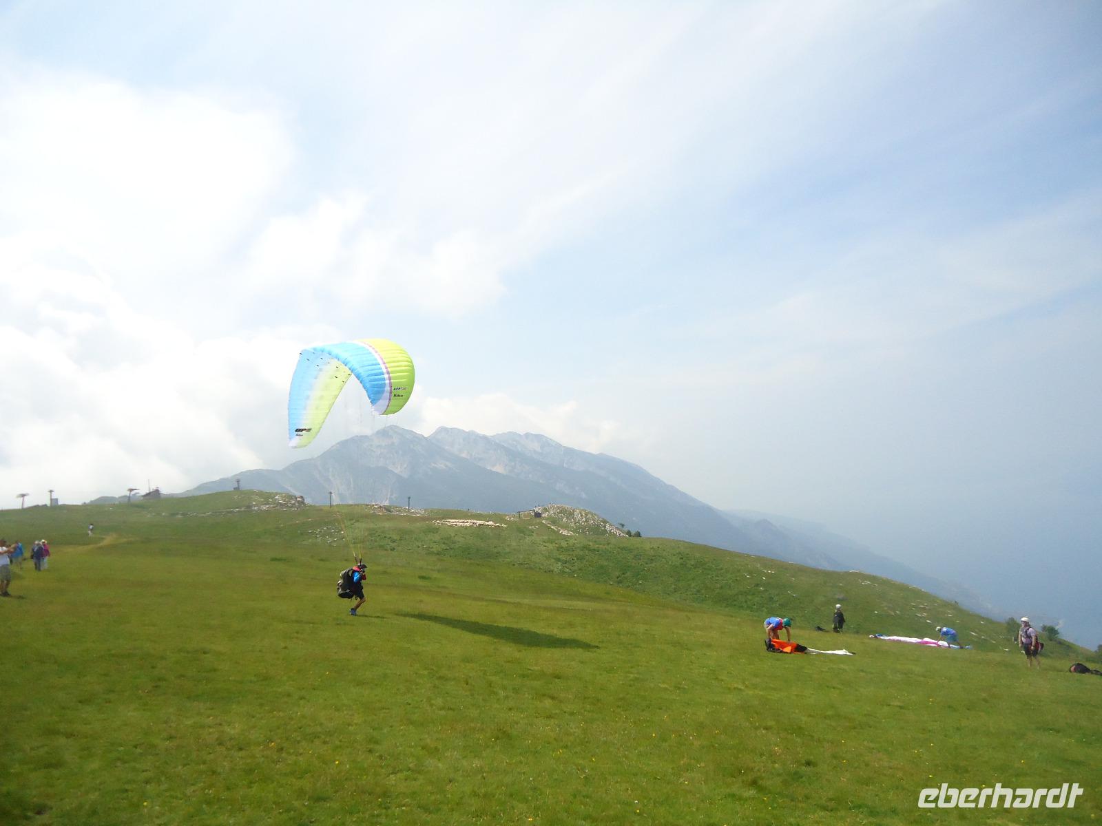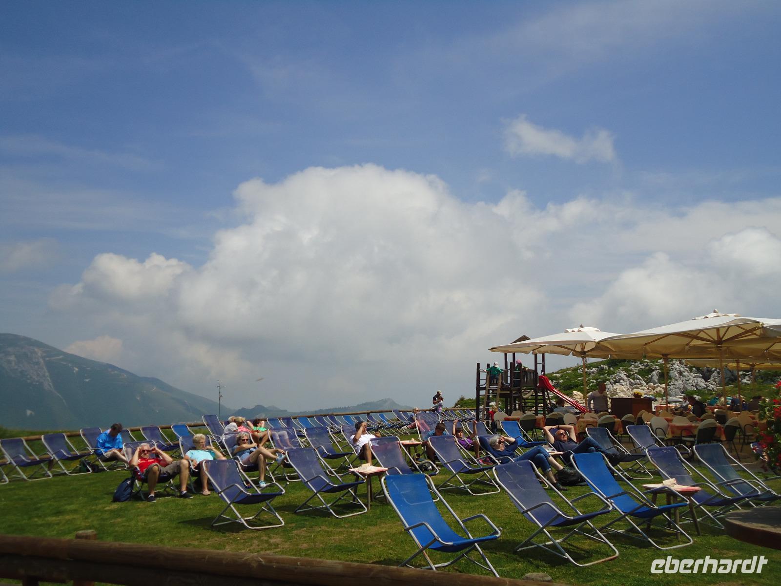 Als ich, eine der letzten, oben ankomme, scheinen sich alle bereits ihre „Rennsemmeln" angezogen und sich auf Wanderschaft begeben zu haben... vielleicht aber lagen Sie schon bereit für ein Mittagsschläfchen in einem der zahlreichen Liegestühle??? Ganz gleich, was Sie auf dem Kamm des Bergmassivs unternommen haben, ob Sie gewandert sind oder den Paraglidern zugeschaut haben, es war einfach nur schön. Ganz individuell konnten Sie anschließend wieder ins Tal gondeln, um dann noch einmal den hübschen, allerdings auch sehr bevölkerten Ort Malcesine unter die Lupe zu nehmen. Mit vielen, neuen Eindrücken im Gepäck nahmen wir am späten Nachmittag mit unserem Bus wieder Kurs auf Riva.