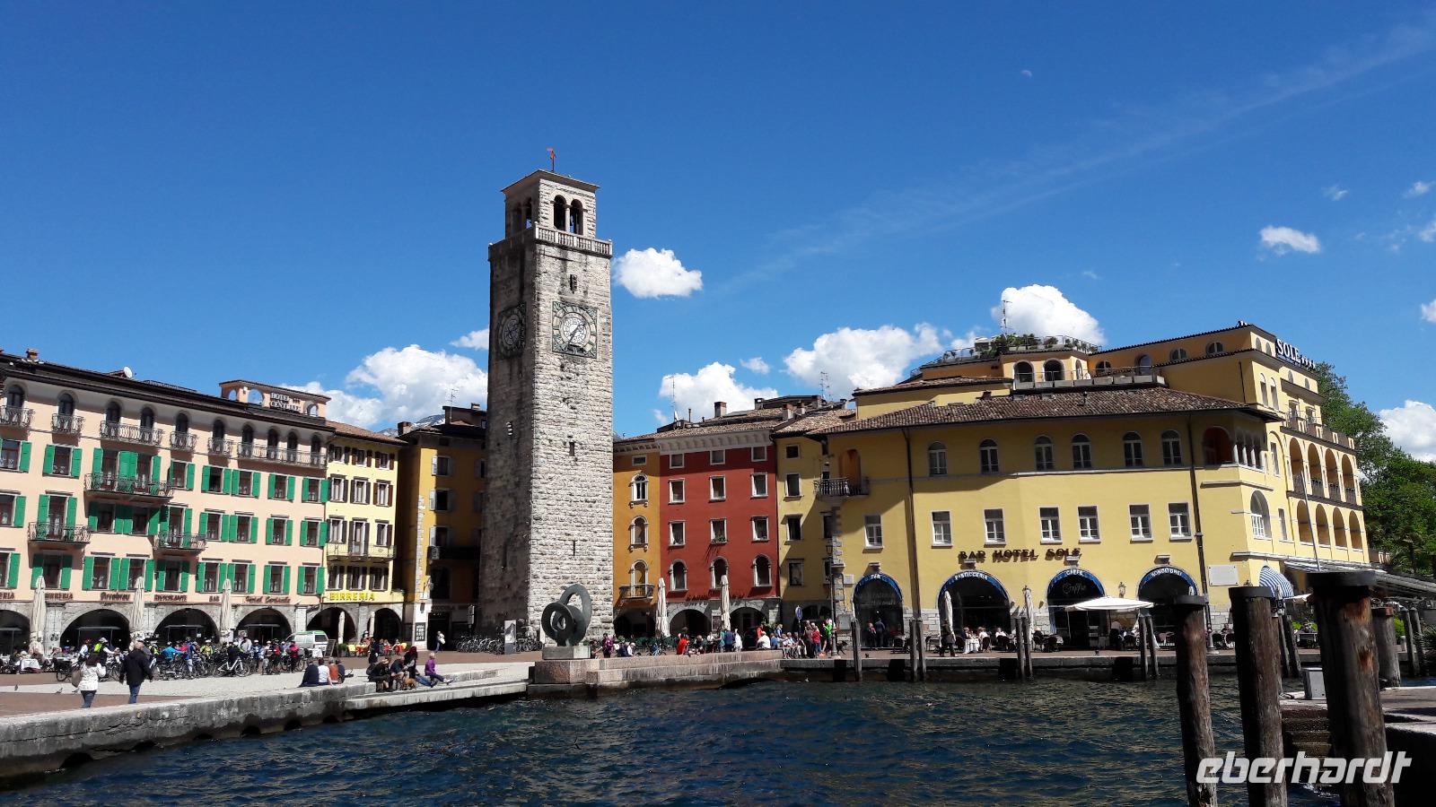 In Riva angekommen, ist Freizeit angesagt - und die wird genutzt für eine Verschnaufpause, für einen Spaziergang durch die Stadt, für einen Bummel durch die Geschäfte (die Damen natürlich nur mit „verbundenen" Augen), für einen Besuch der Rocca, der Kirchen oder für einen Aufstieg zur Bastion. Letztere von den Venezianern Anfang des 16. Jahrhunderts zum Schutz von Riva und Umgebung gebaut, wurde Anfang des 18. Jahrhunderts von den Franzosen in die Luft gesprengt.