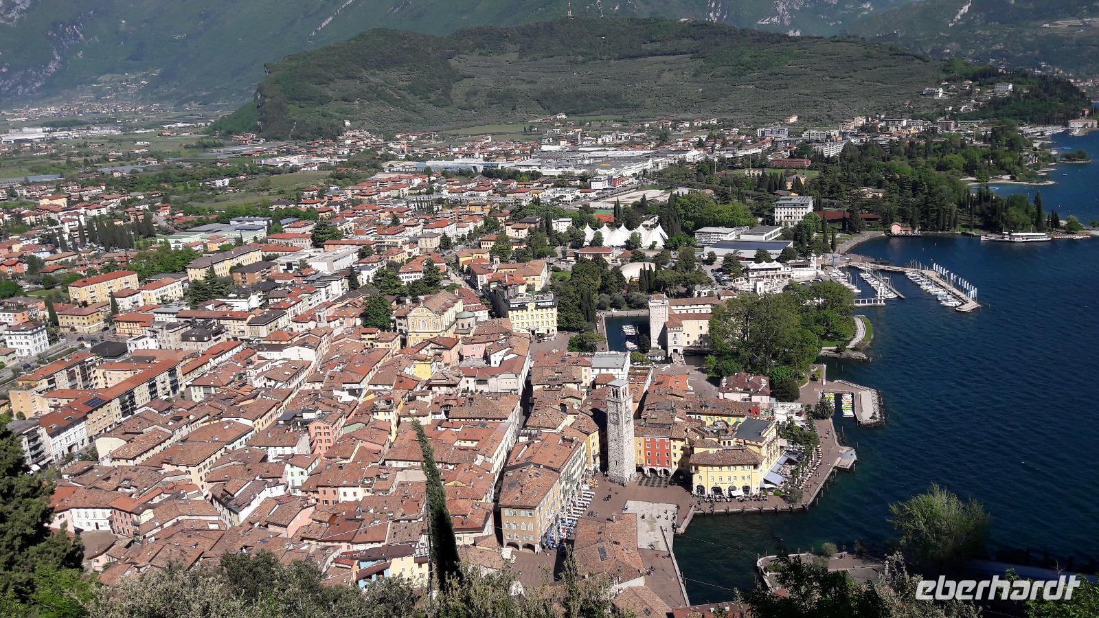 Es ist einfach traumhaft - im Vordergrund die Ortschaften Riva und Torbole mit dem See und seinem blau-grünen, glasklaren Wasser, eingerahmt von einer sagenhaften Bergwelt. Eine tolle Kulisse!