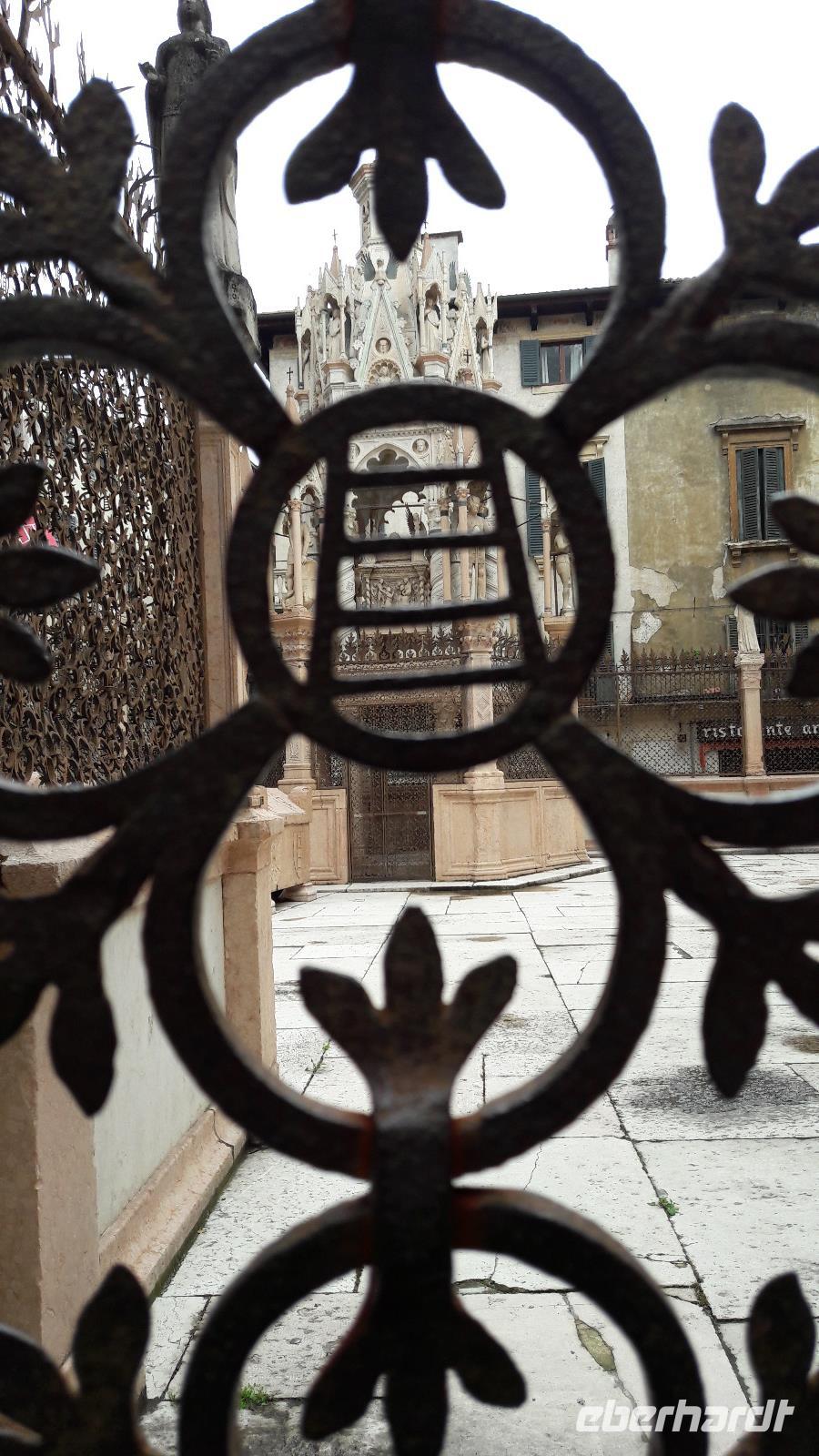 Wir spazieren weiter und erreichen nach wenigen Minuten das Haus der Julia, Pilgerort für alle Liebenden oder Trostsuchenden. Die Wände der Toreinfahrt sind übersät mit bunten Scraffitti, mit Gebeten, Liebeserklärungen, Wünschen mit Namen, Herzchen, Rosen und, und, und.
