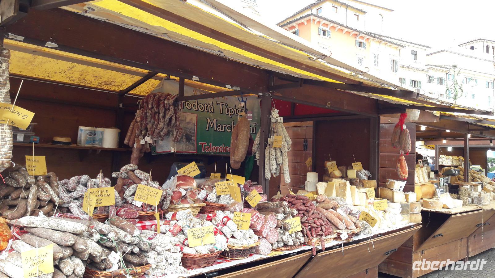 Piazza delle Erbe, einst Römisches Forum, heute Zentrum des städtischen Lebens.