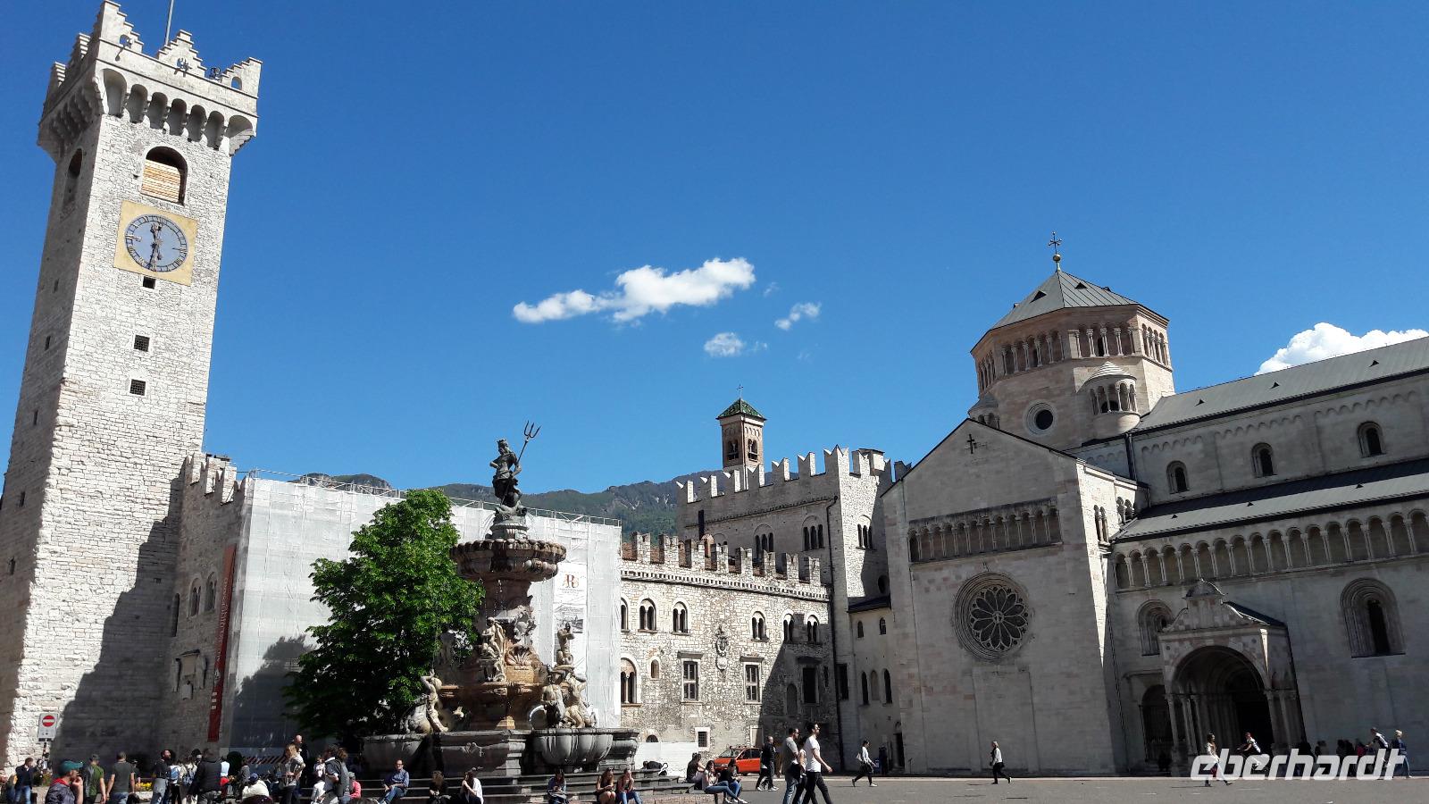 Nach dieser recht erlebnisreichen Fahrt „überqueren" wir quasi die Brennerautobahn und erreichen Trient, das einst von den Römern gegründete Tridentum, wo wir von Maria, unserer Stadtführerin, bereits erwartet werden. Mit dem Bus geht es noch ein kleines Stück durch die Stadt, dann heißt es „fleißig laufen". Maria spaziert mit uns durch die Stadt, zeigt uns die zahlreichen Paläste und führt uns zum Mittelpunkt Trients, der Piazza Duomo (Domplatz) und natürlich auch in den Dom. Hier in Trient, hier im Dom wurde einmal richtig Geschichte geschrieben, denn hier fand das berühmte Trienter Konzil statt.