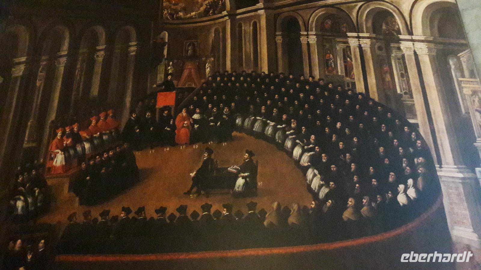 Das ursprüngliche Anliegen des Konzils, welches hier von 1545 - 1563 stattfand, war, die durch Martin Luthers Thesen entzweite Kirche wieder zu vereinigen. Im Endeffekt aber wurde sie nur noch tiefer gespalten, es kam zur Gegenreformation. Das Trienter Konzil gehört mit zu den bedeutendsten Konzilen in der Geschichte der katholischen Kirche.