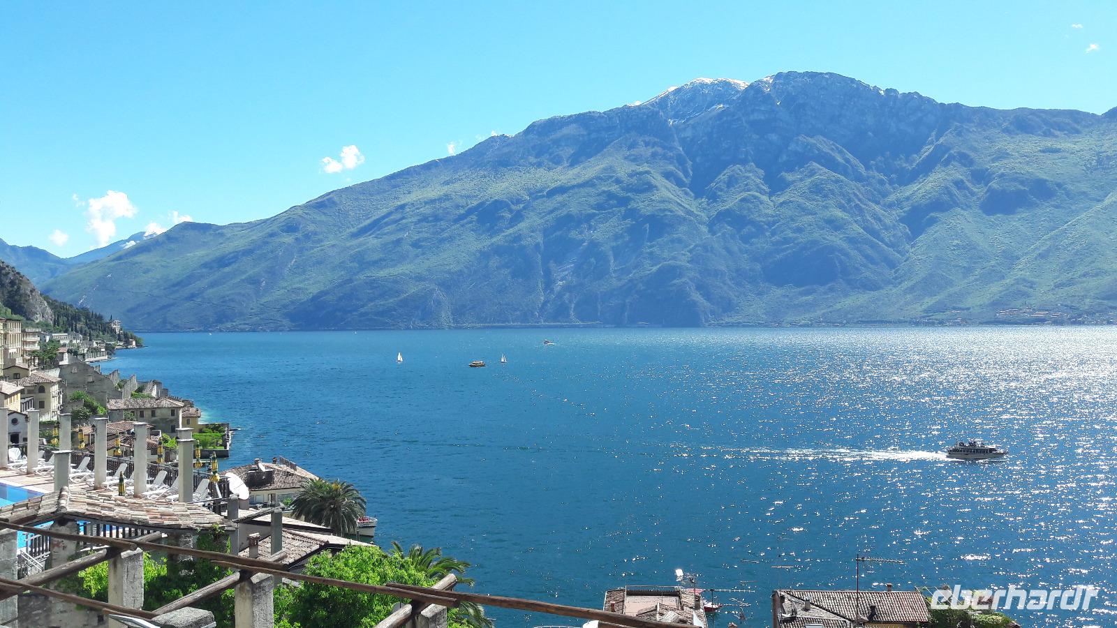 Danach durchqueren wir noch einen Teil der autonomen Provinz Trentino, fahren vorbei an deren Hauptstadt Trient. Kurze Zeit später erreichen wir unser Ziel, Riva am Gardasee (hier werden wir die nächsten Tage nächtigen). In Nago erhaschen wir einen ersten Blick auf den See (es ist einer der schönsten überhaupt) und wir verstehen sofort, warum der römische Dichter Catull ihn seinen „Augenstern" nannte und unser Geheimrat J.W.v. Goethe beim Anblick des Sees von einem „köstlichen Schauspiel" sprach.