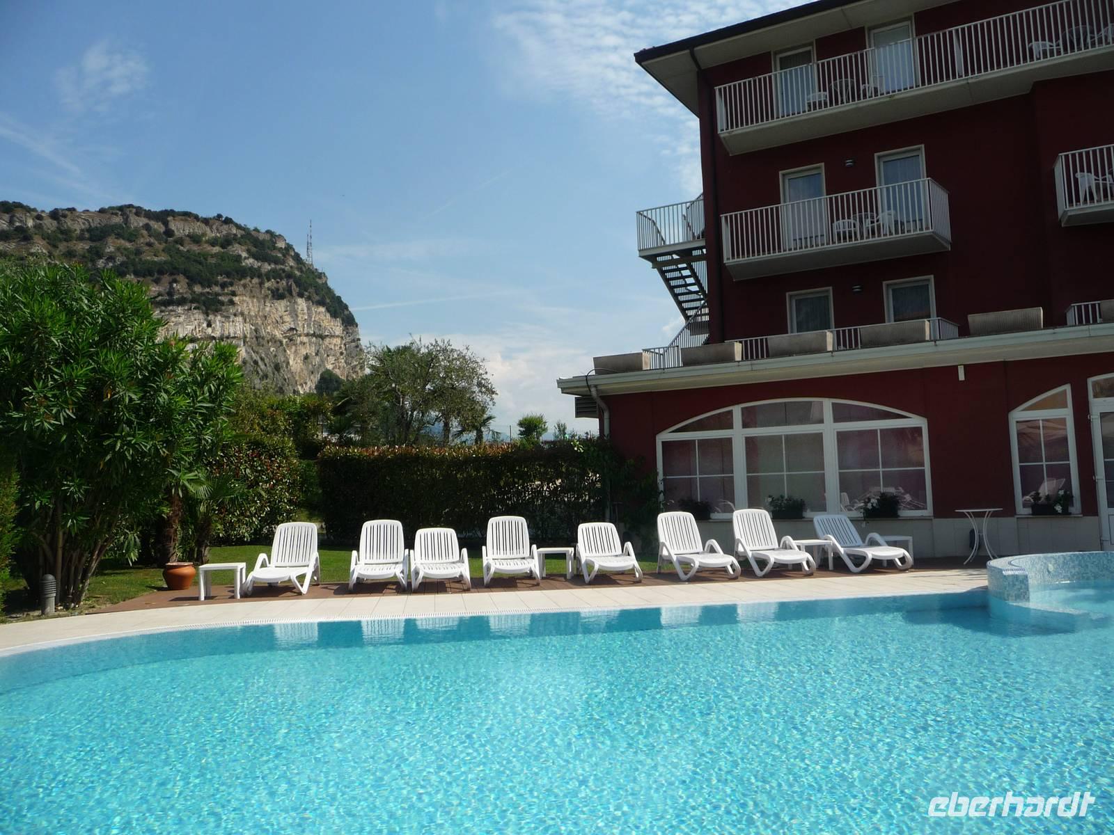 Jetzt bringt uns das Schiff nach Riva, wo Reisegruppe und Reiseleiter einen schönen gemeinsamen Stadtrundgang unternehmen und von wo aus uns dann der Ralf mit dem Eberhardtbus abholt, um uns ins nicht weit entfernte Torbole zu unserem Hotel "Villa Rosa" zurückzubringen.