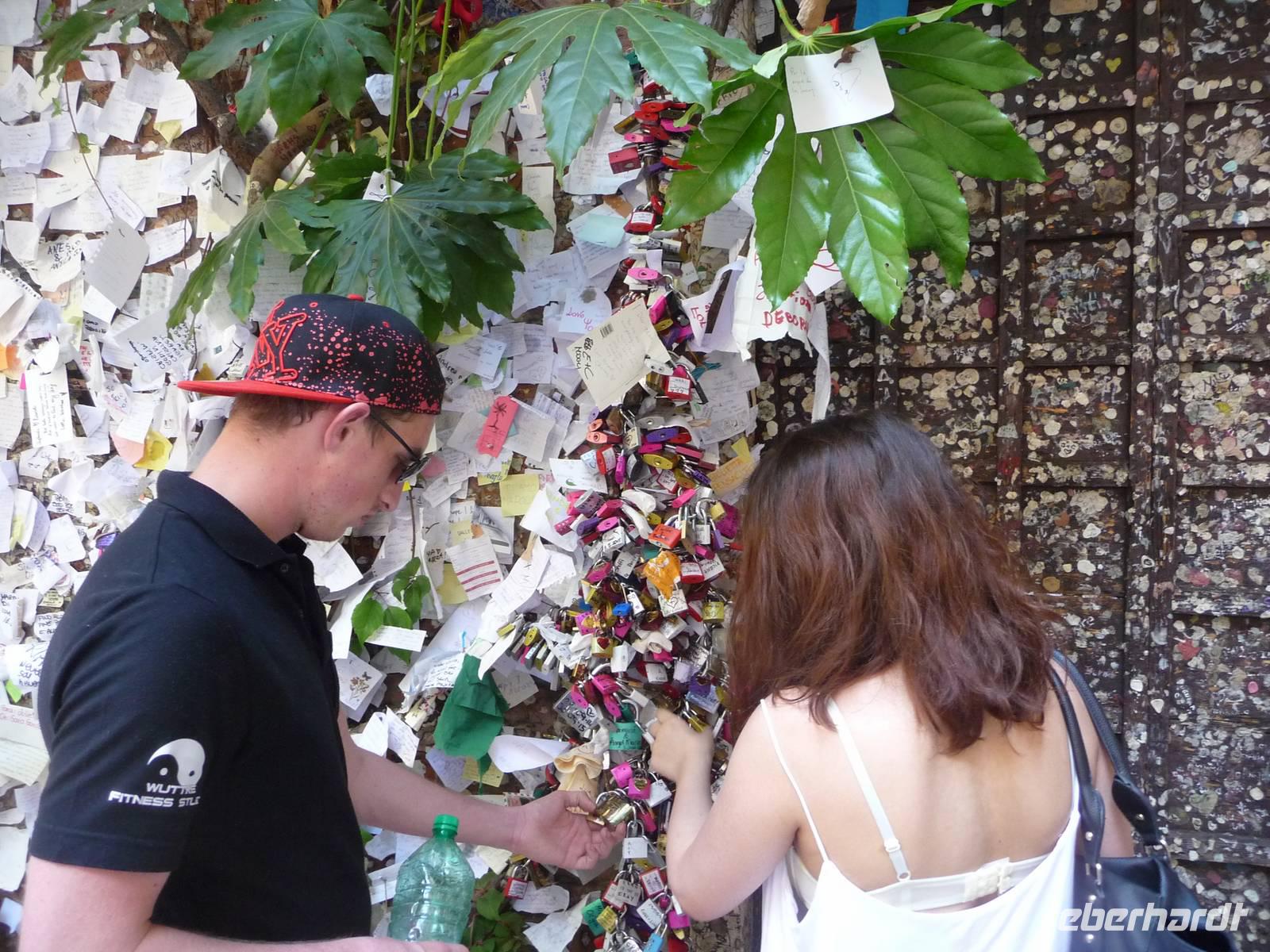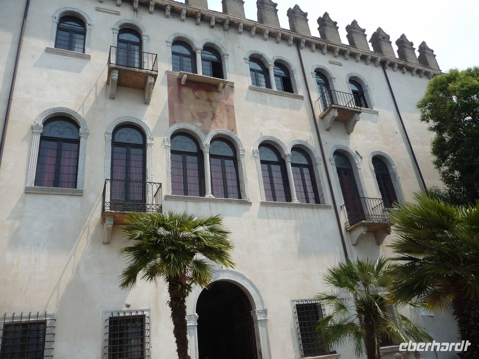 Der heutige Obst- und Gemüsemarkt war im MA das römische Forum, wo man damals selbst Pferderennen veranstaltet hat. Heute sehr lebendig mit einer geschlossenen mittelalterlischen Architektur, großartig! Und dann kommt das Unausweichliche, der Besuch des Hauses der Julia. Stefano sagt uns die bittere Wahrheit: Romeo und Julia sind nur literarische Erfindungen! Aber hätten sie gelebt, dann hätte Julia bestimmt in diesem Haus mit dem berühmten Balkon gelebt und Romeo hätte mit Gitarrenspiel und Gesang hier um ihre Liebesgunst gebuhlt. Wie schön!