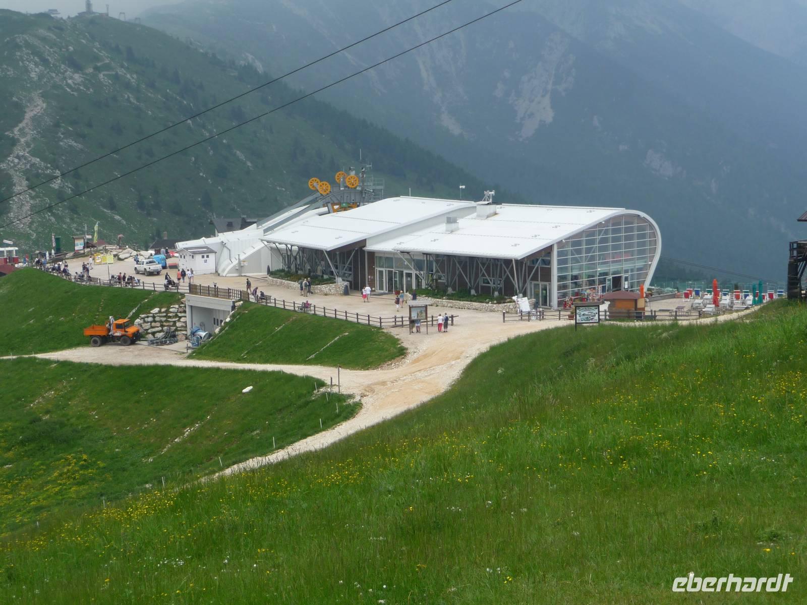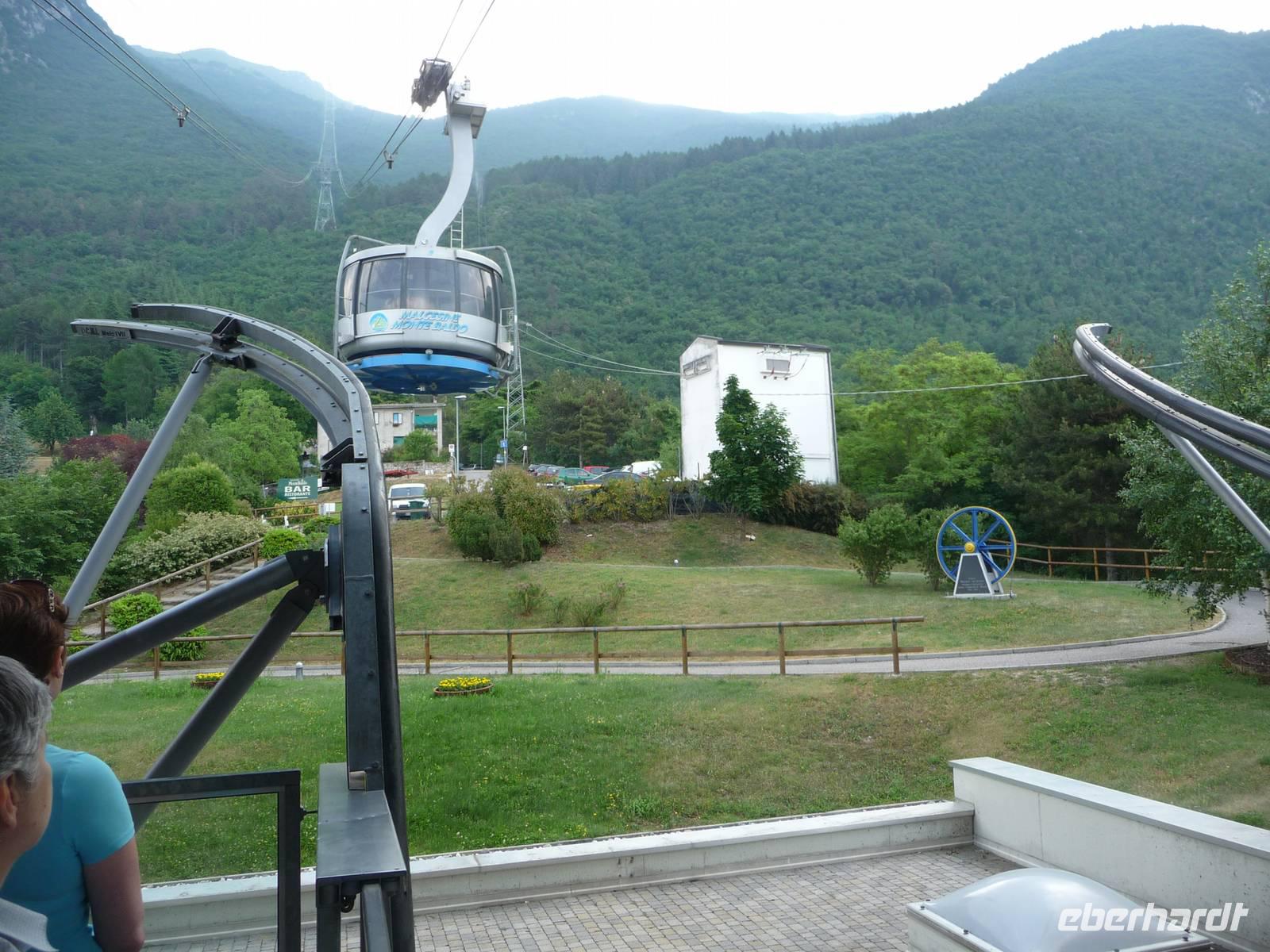 Im Regen fahren wir nun wieder mit der "Funivia" zurück und ab Umstieg auf der Mittelstation scheint wieder die Sonne, während es "oben" weiterhin regnet. Alpenwetter halt.