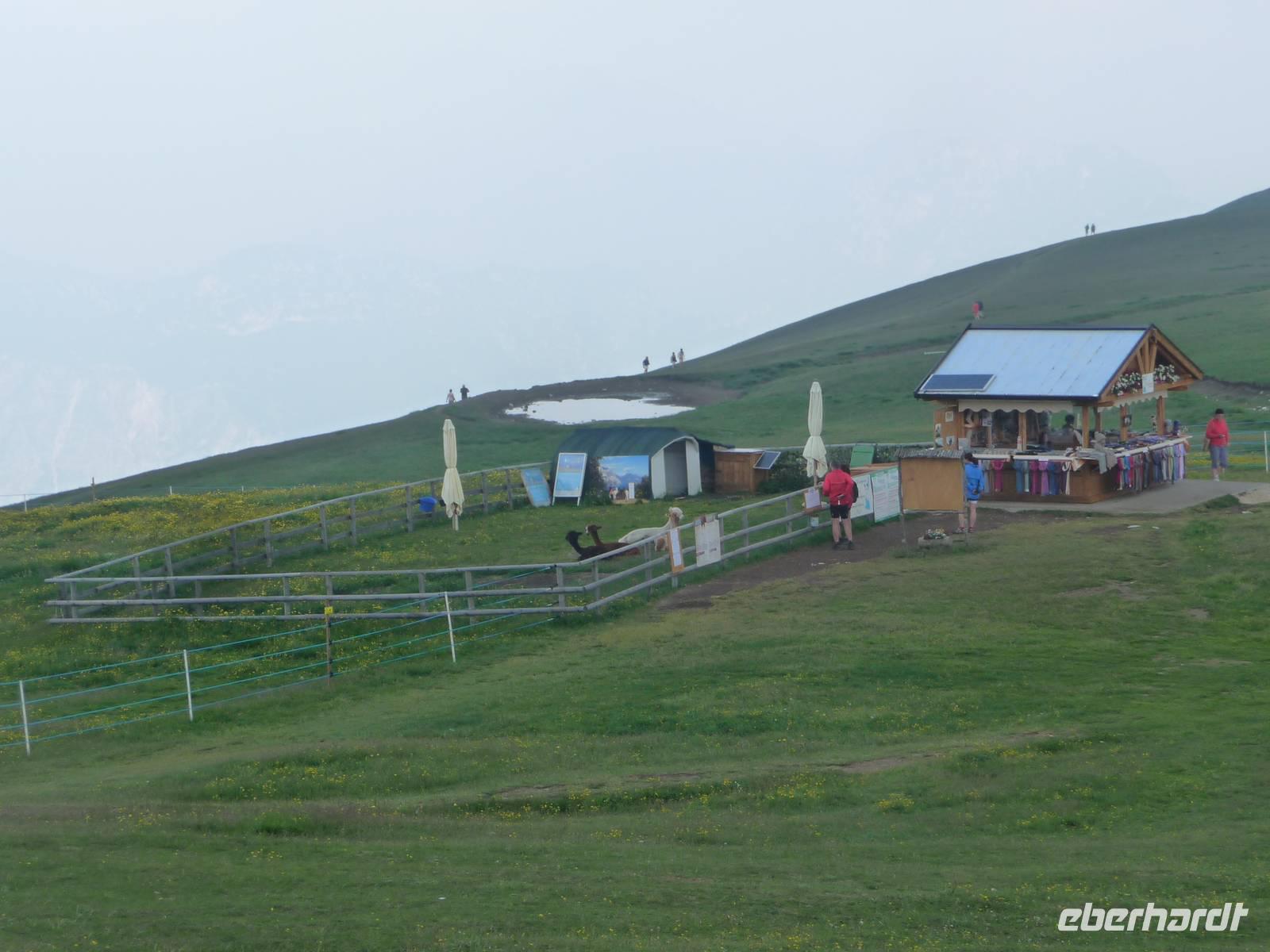 Wer Lust hat auf irgendeine Erfrischung, der findet eine Berghütte vor, wo man sogar "Kaiserschmarrn" zubereitet.