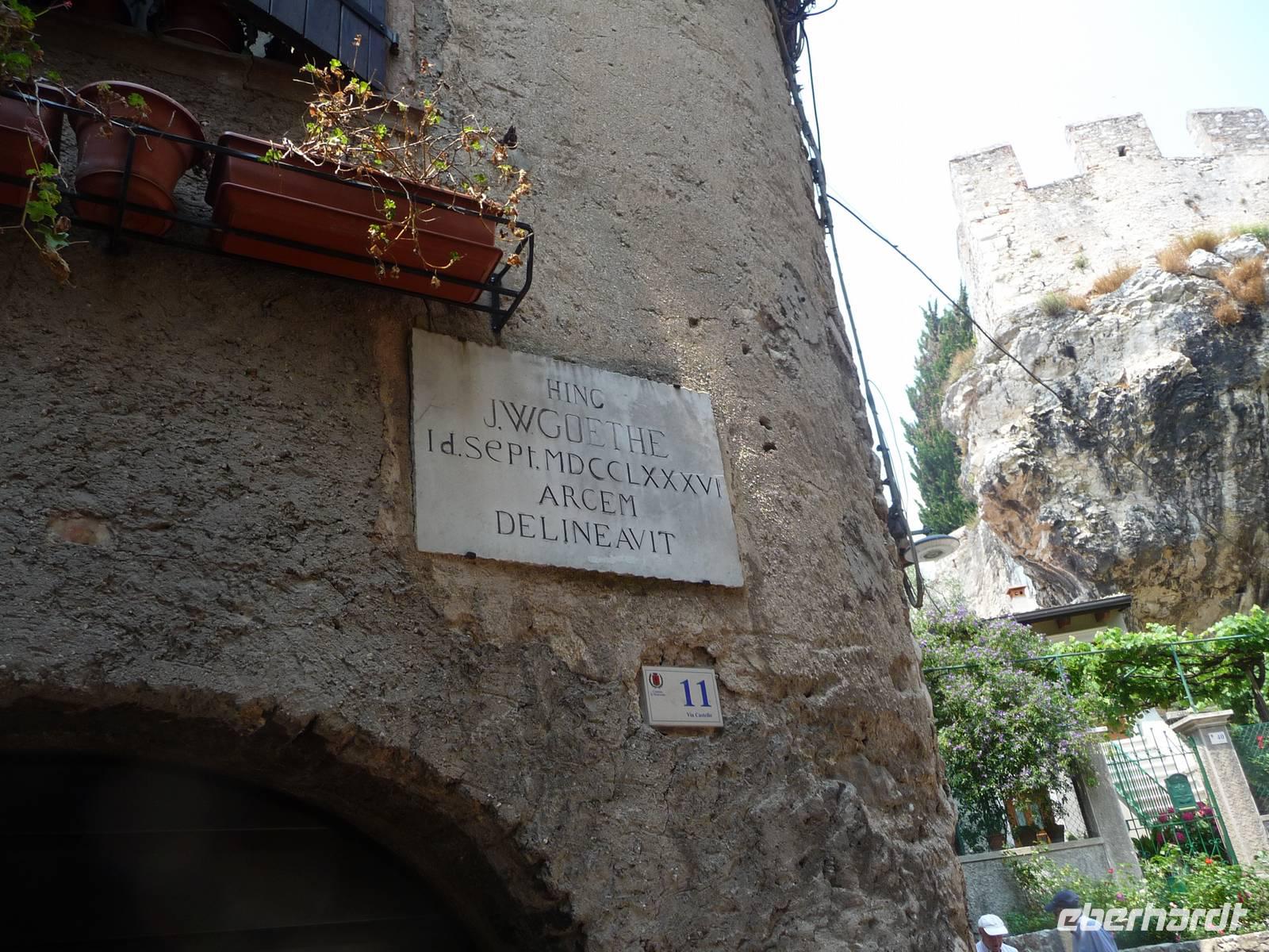 Und nun Malcesine. Die "Perle des Gardasees" genannt bietet uns zur Besichtigung eine weitere Scaliger - Burg an. Wer mit hineingeht und wer mit hinaufsteigt, hat einen tollen Blick über den Gardasee nach Limone hinüber und über die Dächer von Malcesine. Eingangs der Burg erwartet uns eine Büste des Dichterfürsten J.W.v.Goethe, den man beim Zeichnen der Burg für einen Spion hielt und ihn für zwei Stunden mit aufs Revier nahm. Goethe nahm es nicht krumm und hat seinerseits über das Städtchen Malcesine in höchsten Töne geschrieben.