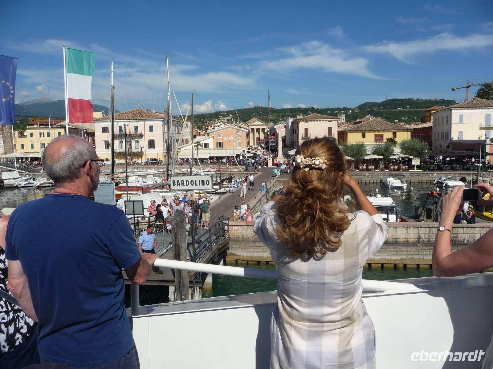 Am Nachmittag ist die Schifffahrt von Sirmione nach Garda der Höhepunkt. Nun seeseitig vorbei an Lazise mit seinen ehemaligen Festungsmauern, vorbei auch an Bardolino, wobei jeweils neue Passagiere an Bord kommen, gelangen wir schließlich nach Garda, was uns mit seinen hübschen Cafés an der Uferpromenade zu Kaffee und Kuchen einlädt - wer halt möchte.