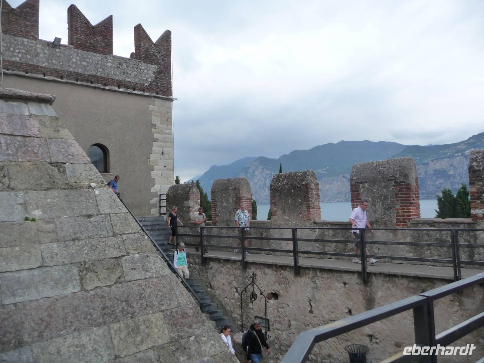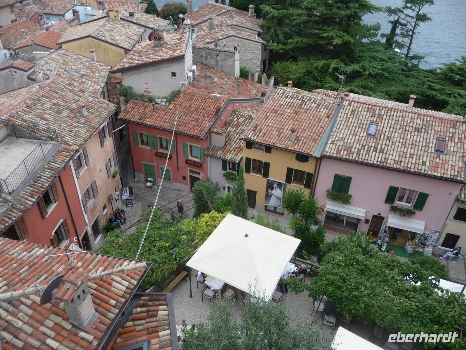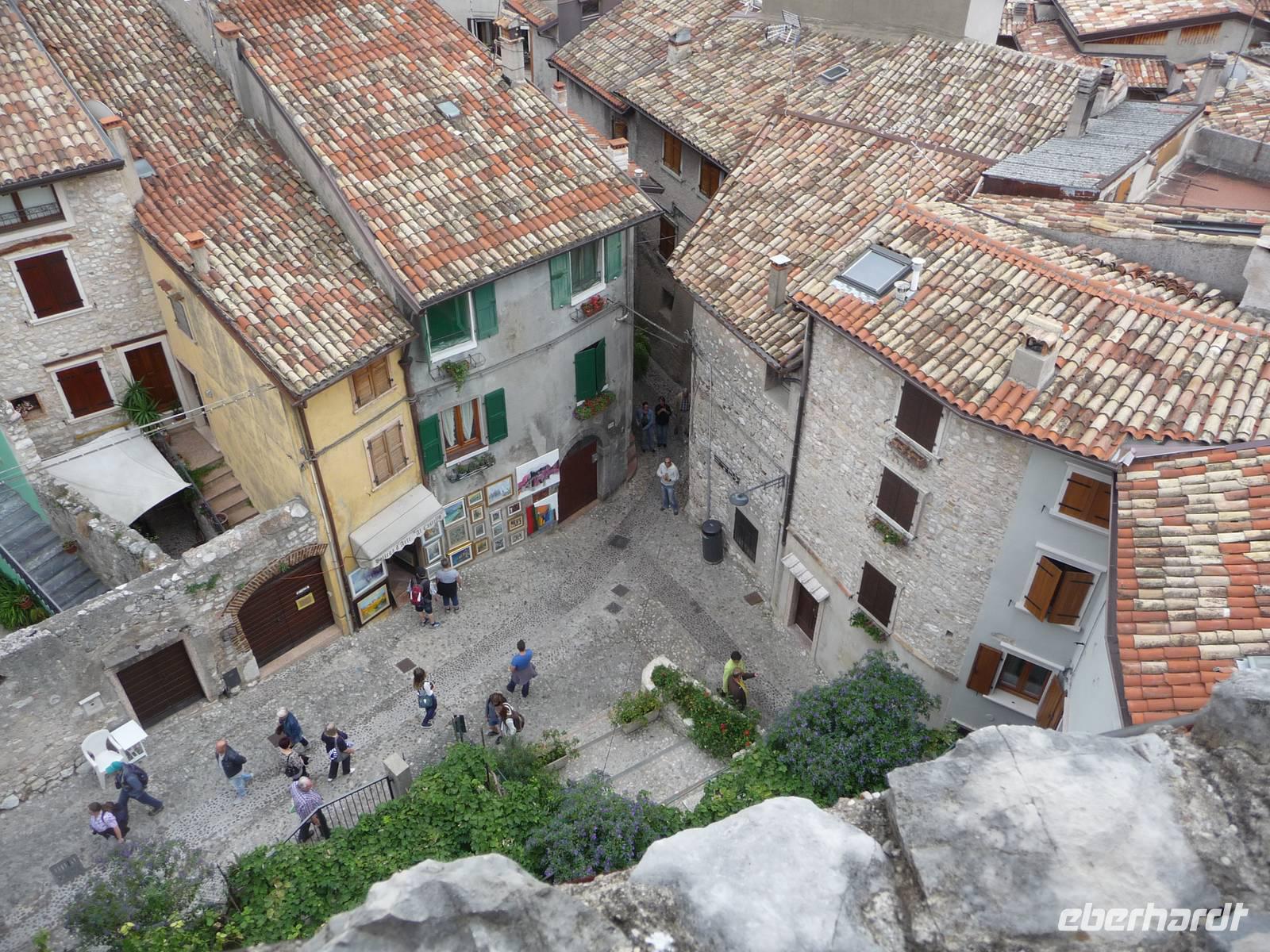 "Unten" wieder angekommen, gehen wir durch das malerische Malcesine zur Scaligerburg und hinein in diesselbe und können Darstellungen über das Leben der einstigen Bewohner erfahren aber auch moderne Kunst ist in den jeweiligen Räumen zu entdecken.