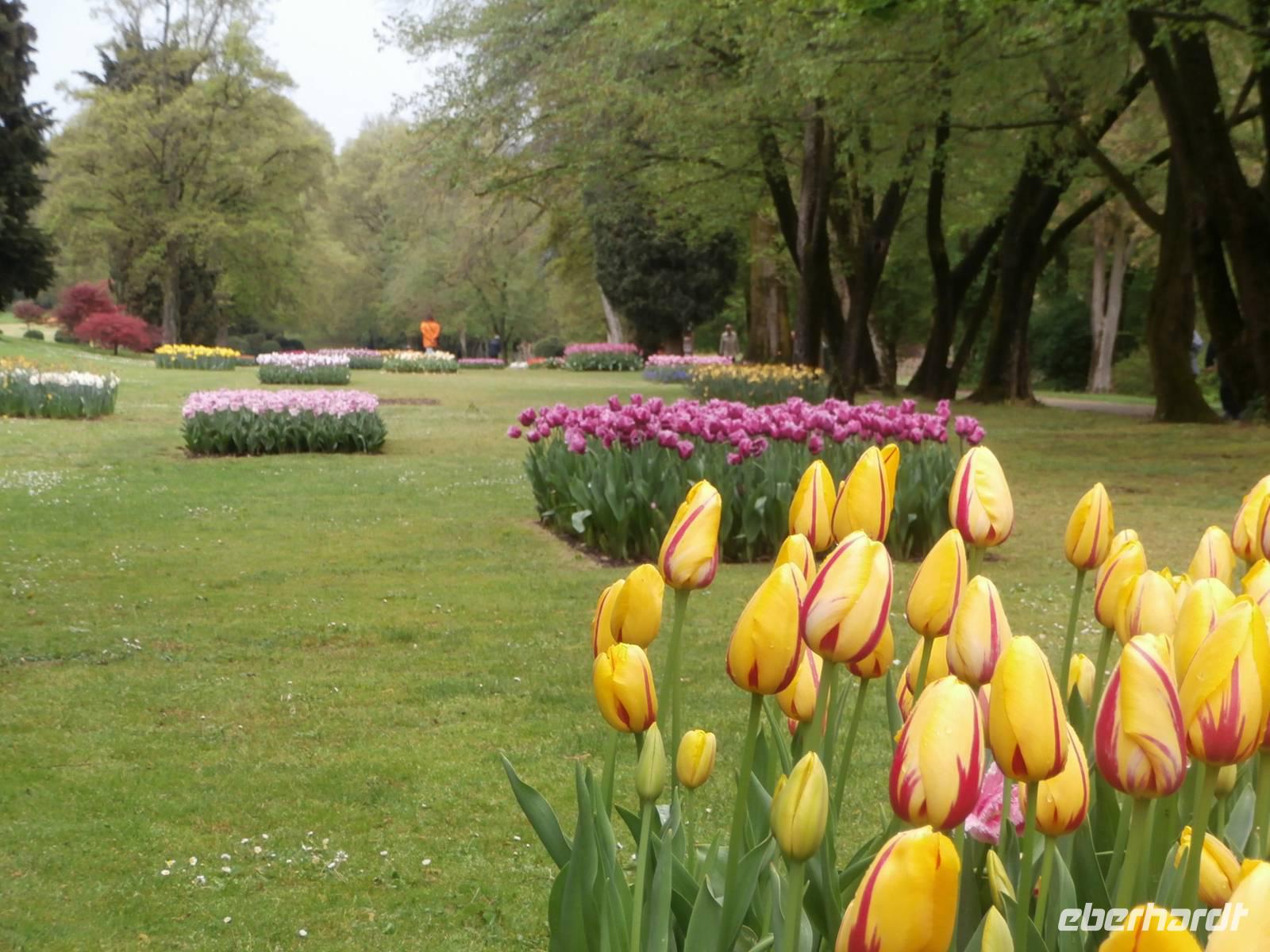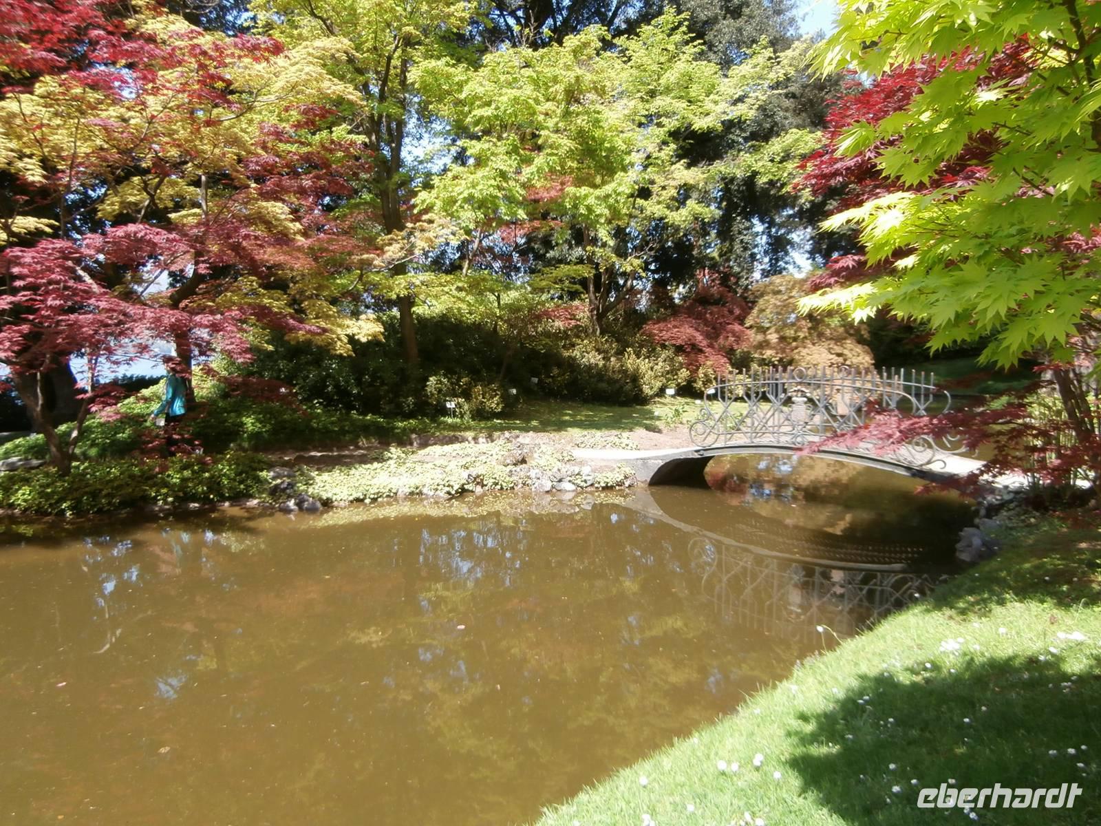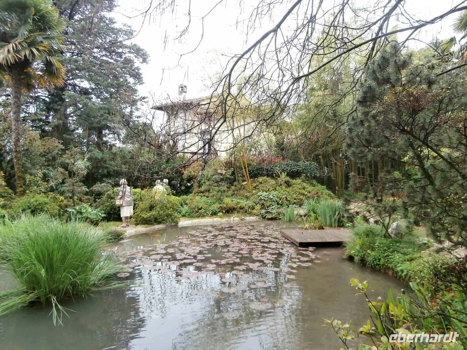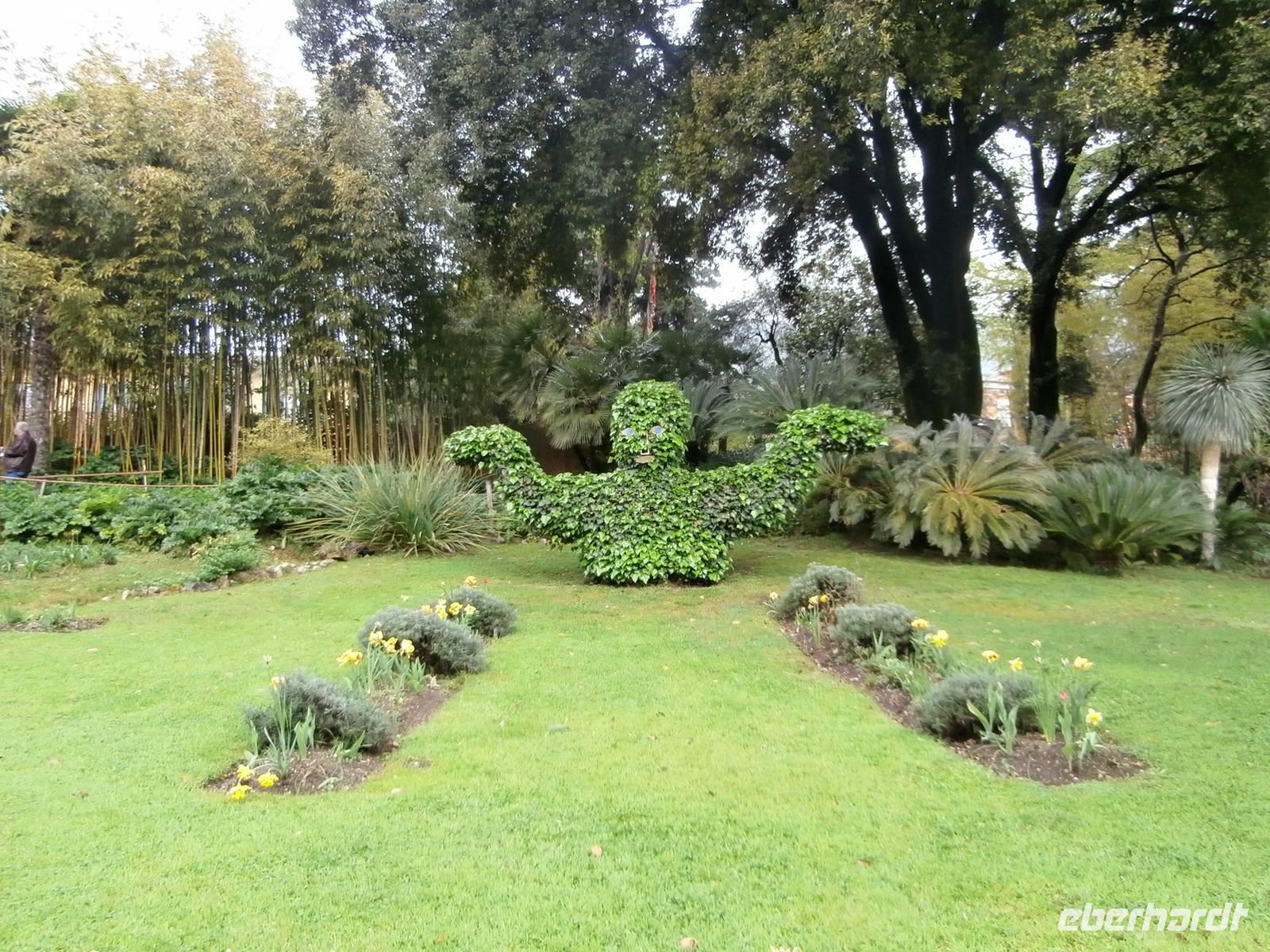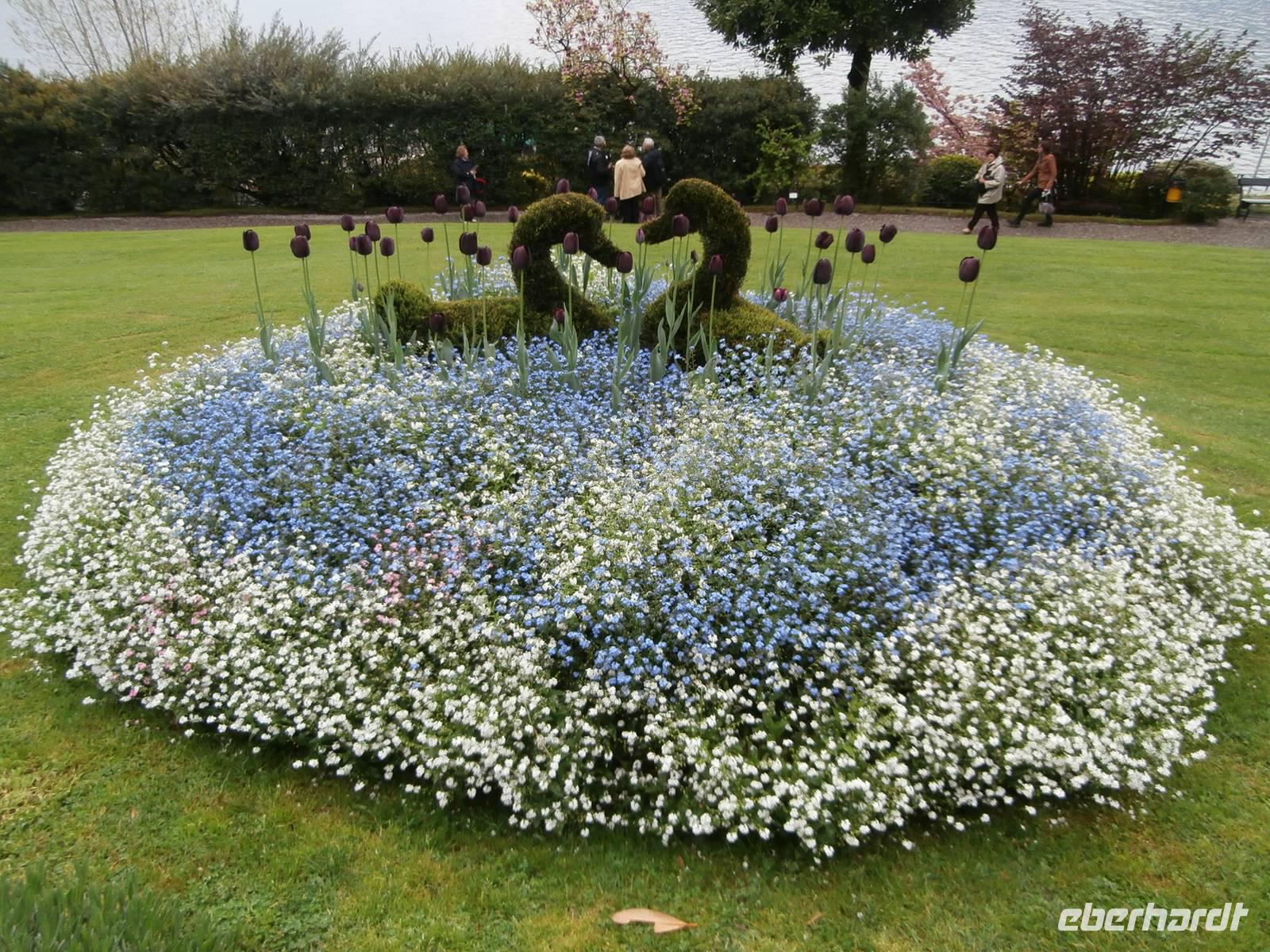Trüb aber noch trocken-so präsentiert sich der Morgen zum Frühstück. Wir erreichen ohne Regen Gardone Riviera und hier besichtigen wir den „Botanischen Garten"-die grüne Oase mit dem heutigen Namen "Heller Garten". Wir bummeln begeistert durch die Miniaturwelt mit Pflanzen und Bäumen, die aus der ganzen Welt zusammengetragen wurden. Nebel im Bambuswald und zwei Masken an einer Brücke, die sich gegenseitig mit Wasser bespucken-einfach herrlich durch dieses kleine Gartenwunder zu bummeln. Am Nachmittag führt uns die Fahrt nach Valeggio sul Mincio, hier werden wir zur Besichtigung im Parco Sigurta erwartet. Ohne Regen geht's los, mit unserer Führerin Sylviane Klein sehen wir auf einer riesengroßen Rasenfläche Tulpenbeete in einer Vielfalt an Formen und Farben. Wir sind am Fotografieren, Fachsimpeln und mit Sylvi auch gut versorgt, denn sie gibt uns viele Informationen zum Landschaftsgarten, der sich als weitläufige Parkanlage bis hin zum Mincio erstreckt. Auch das im Jahre 2011 neu angelegte Labyrinth mit über zwei Meter hohen Eiben bäumen sehen wir. Die anschließende Fahrt mit der Parkbahn lassen wir ausfallen, der einsetzende Regen lässt eine Warteschlange anwachsen, dort wollen wir uns nicht anstellen, haben wir doch den Park zu Fuß erschlossen und viel gesehen. Im Hotel wird uns wieder ein tolles Abendessen serviert.