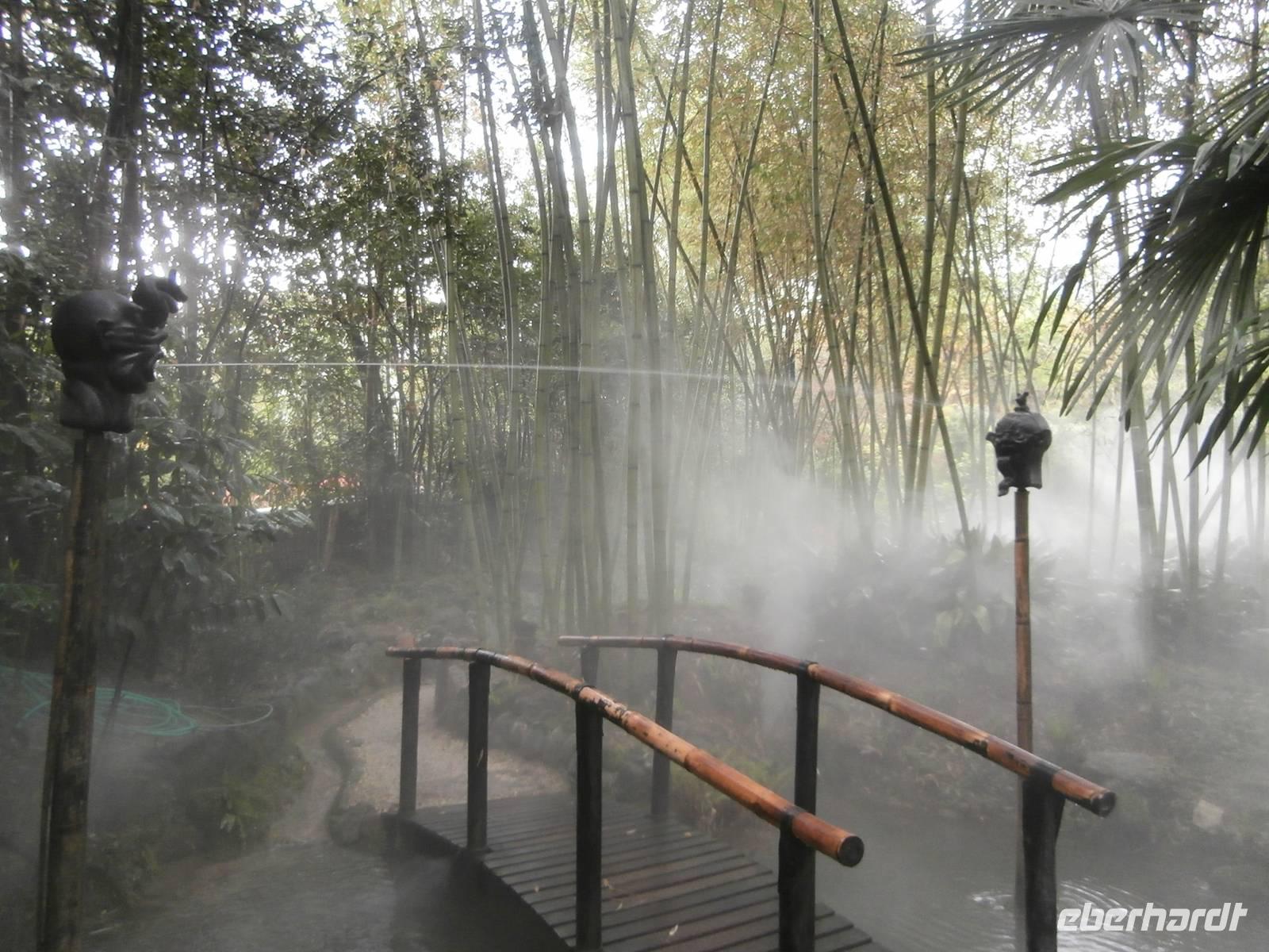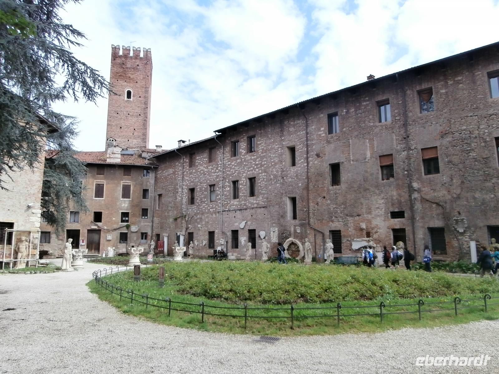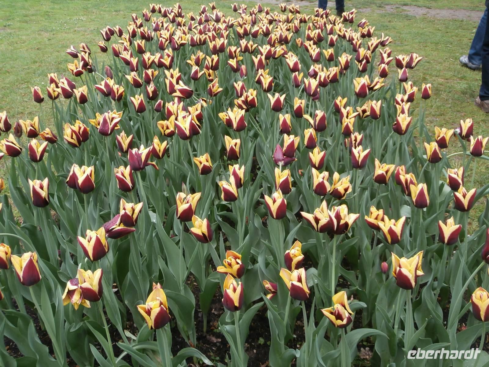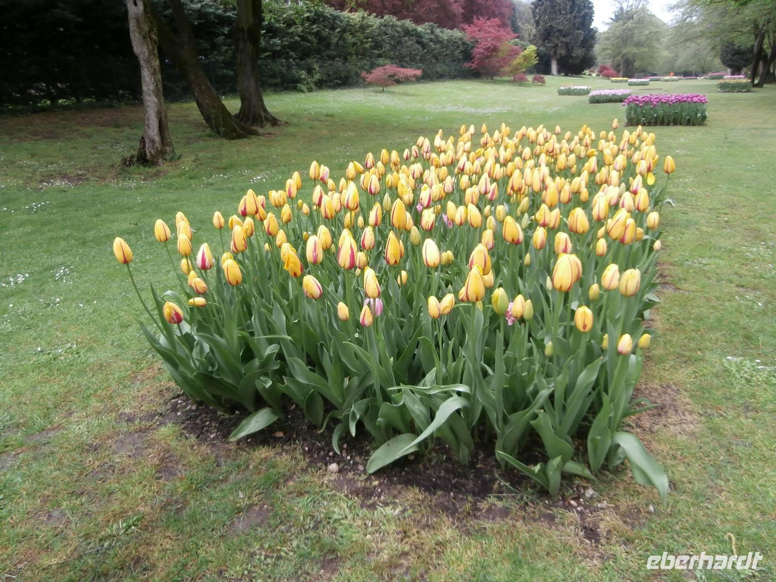 Trüb aber noch trocken-so präsentiert sich der Morgen zum Frühstück. Wir erreichen ohne Regen Gardone Riviera und hier besichtigen wir den „Botanischen Garten"-die grüne Oase mit dem heutigen Namen "Heller Garten". Wir bummeln begeistert durch die Miniaturwelt mit Pflanzen und Bäumen, die aus der ganzen Welt zusammengetragen wurden. Nebel im Bambuswald und zwei Masken an einer Brücke, die sich gegenseitig mit Wasser bespucken-einfach herrlich durch dieses kleine Gartenwunder zu bummeln. Am Nachmittag führt uns die Fahrt nach Valeggio sul Mincio, hier werden wir zur Besichtigung im Parco Sigurta erwartet. Ohne Regen geht's los, mit unserer Führerin Sylviane Klein sehen wir auf einer riesengroßen Rasenfläche Tulpenbeete in einer Vielfalt an Formen und Farben. Wir sind am Fotografieren, Fachsimpeln und mit Sylvi auch gut versorgt, denn sie gibt uns viele Informationen zum Landschaftsgarten, der sich als weitläufige Parkanlage bis hin zum Mincio erstreckt. Auch das im Jahre 2011 neu angelegte Labyrinth mit über zwei Meter hohen Eiben bäumen sehen wir. Die anschließende Fahrt mit der Parkbahn lassen wir ausfallen, der einsetzende Regen lässt eine Warteschlange anwachsen, dort wollen wir uns nicht anstellen, haben wir doch den Park zu Fuß erschlossen und viel gesehen. Im Hotel wird uns wieder ein tolles Abendessen serviert.