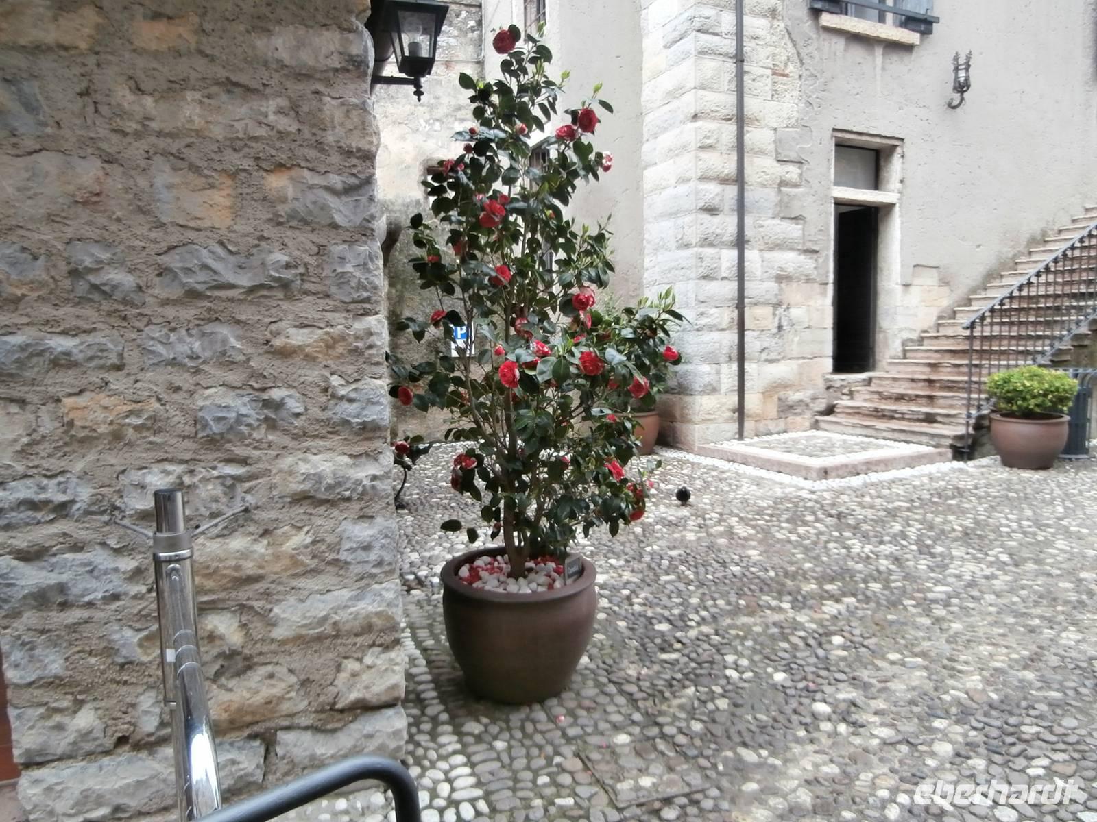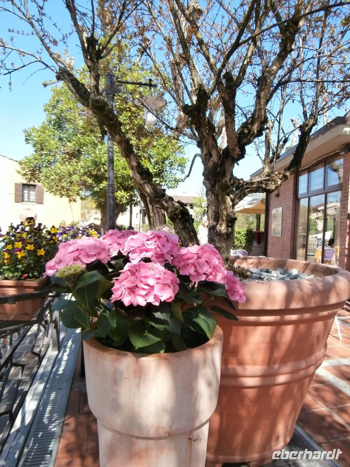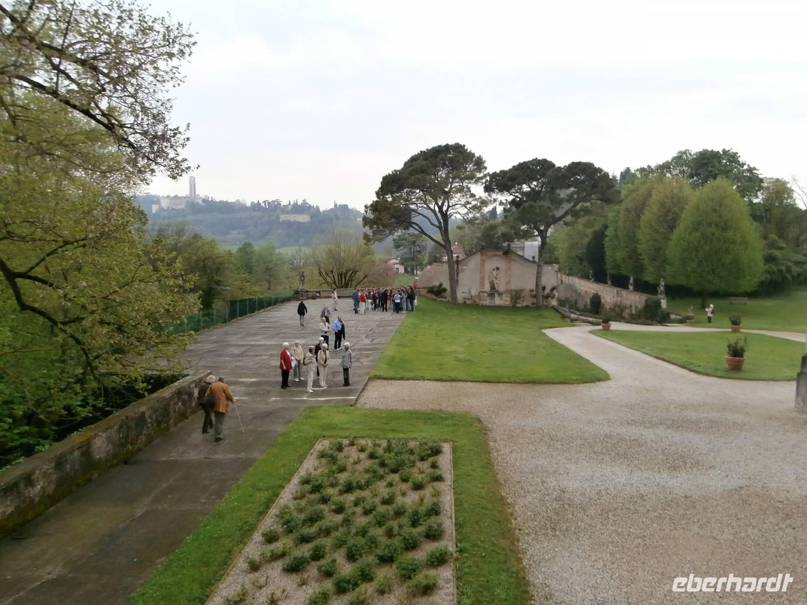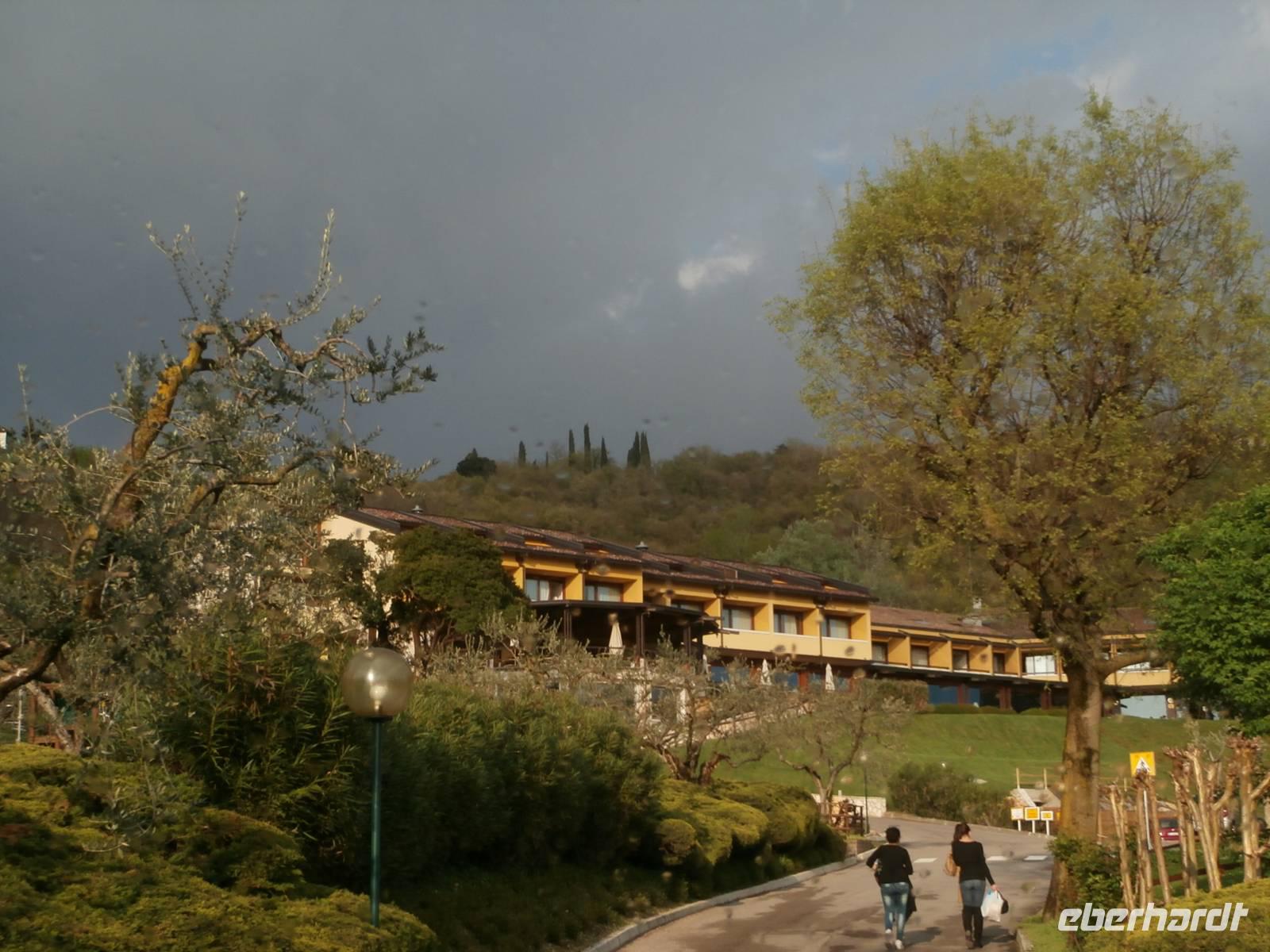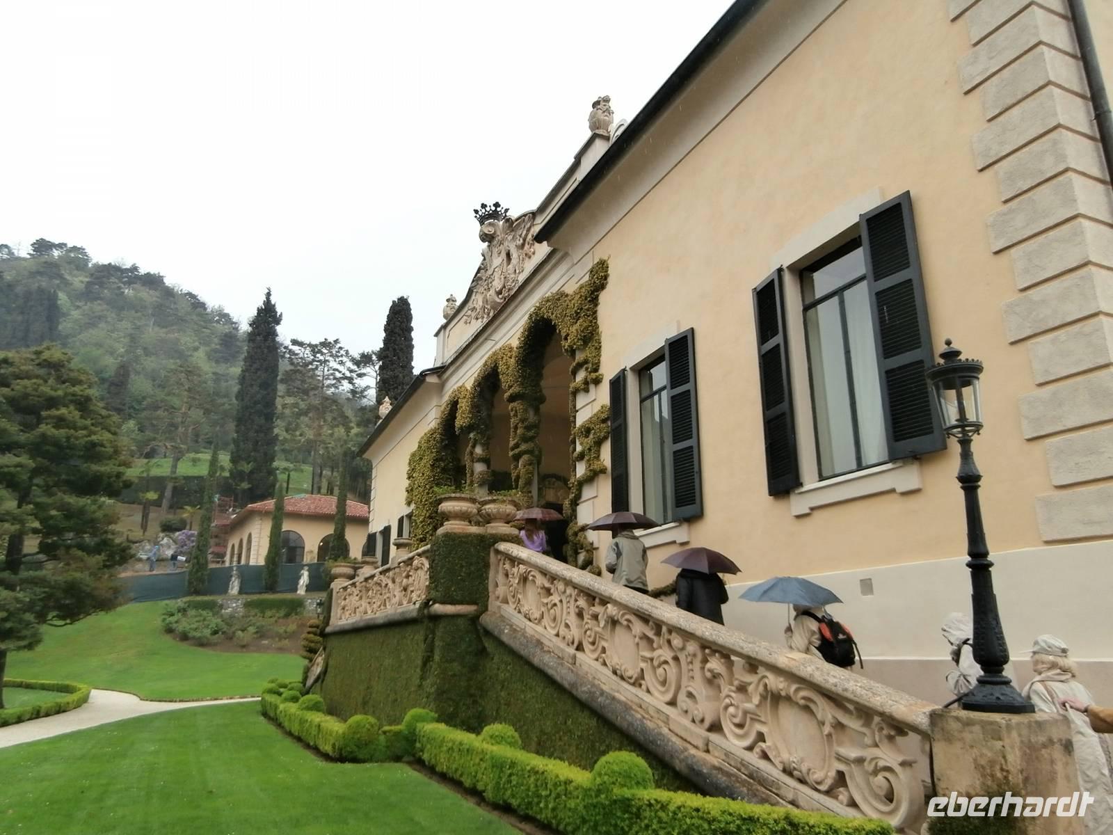 Wir starten unsere Gartenreise in Dresden an einem kalten Samstagmorgen. Unsere Fahrt führt vorbei an München, Regen unterwegs stört uns wenig, hoffen wir doch alle auf Wetterbesserung bei den schlechten Vorhersagen für Italien und den Gardasee. Eine gute Sicht auf Berge ist selten, doch bewundern wir die Frühlingshafte Natur, es ist alles am Grünen und Erwachen. Über den Brenner, vorbei an Brixen und Bozen kommen wir bald an den Lago di Garda. In Costermano erreichen wir am Abend unser fantastisches Hotel „Poiano", es ist umgeben von einem großen Park mit Palmen, Oliven, Wein und Oleanderbäumen. Alle im Bus sind glücklich, am Ende eines sehr schönen, langen Anreisetages, endlich im Hotel anzukommen. Das gute Abendessen mit Rotwein aus Bardolino rundet diesen Tag ab. Sintflutartiger Regen geht am Abend und in der Nacht nieder, wir hoffen alle auf Besserung für den nächsten Tag.