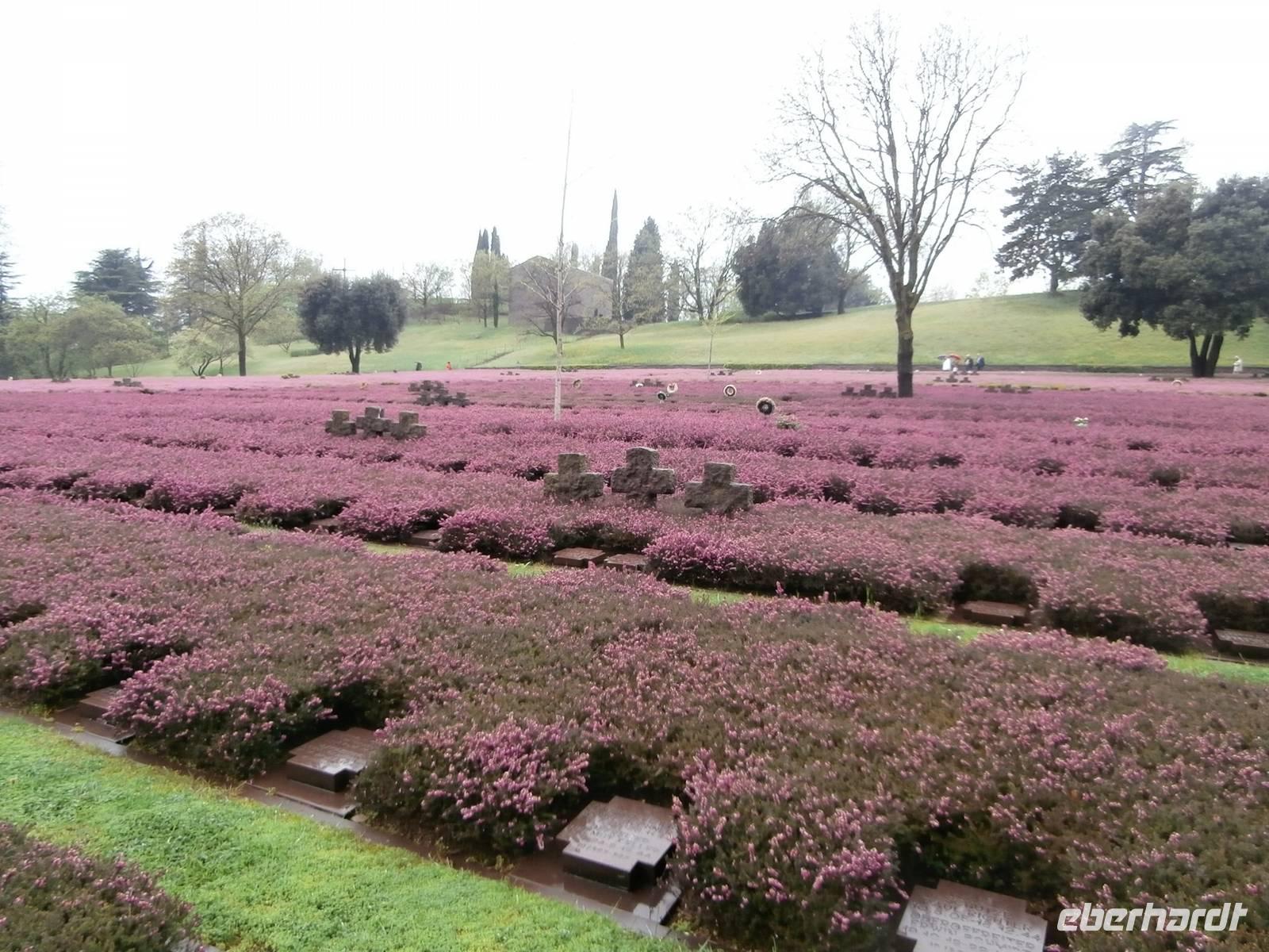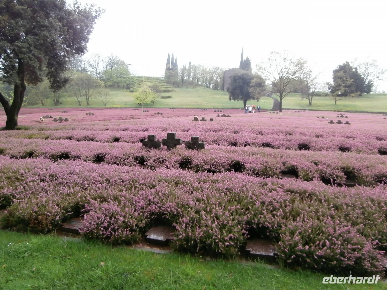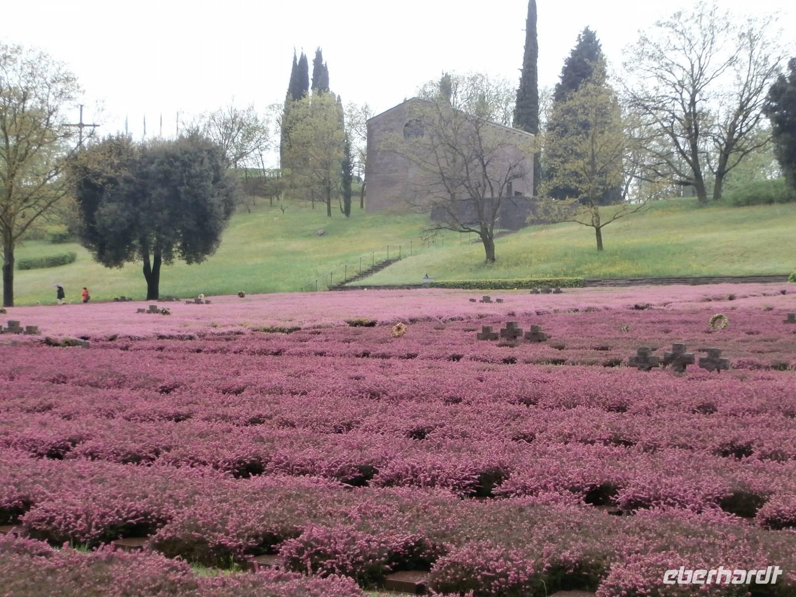 Heute Morgen erwartet uns wieder ein gutes Frühstück und auch der Regen und die Kälte sind dabei. Unsere Fahrt entlang des Gardasees erleben wir immer wieder mit Regenschauern. In Malcesine steigen wir an der Station der Seilbahn zum Monte Baldo Massiv aus. Wir entscheiden uns zuerst für den Bummel durch die Stadt und zur Scaliger Burg gehen wir auch. Immer wieder gibt es Regen und Wind. Für 13 Uhr haben wir uns erneut verabredet und wollen mit der Bahn hinauf zum Monte Baldo fahren, leider ist oben keine Sicht, Schnee und minus ein Grad laden nicht ein. Wir entscheiden uns gegen die Bergfahrt und treffen uns im Bus zur Rückfahrt nach Costermano. Hier besuchen wir noch den deutschen Soldatenfriedhof, der ganz in lila erscheint, mit Erika bepflanzt hinterlässt er einen besonderen Eindruck. Nach dem Abendessen bringt ein Chor aus Verona Gospelsongs zu Gehör, ein besonderes Erlebnis.