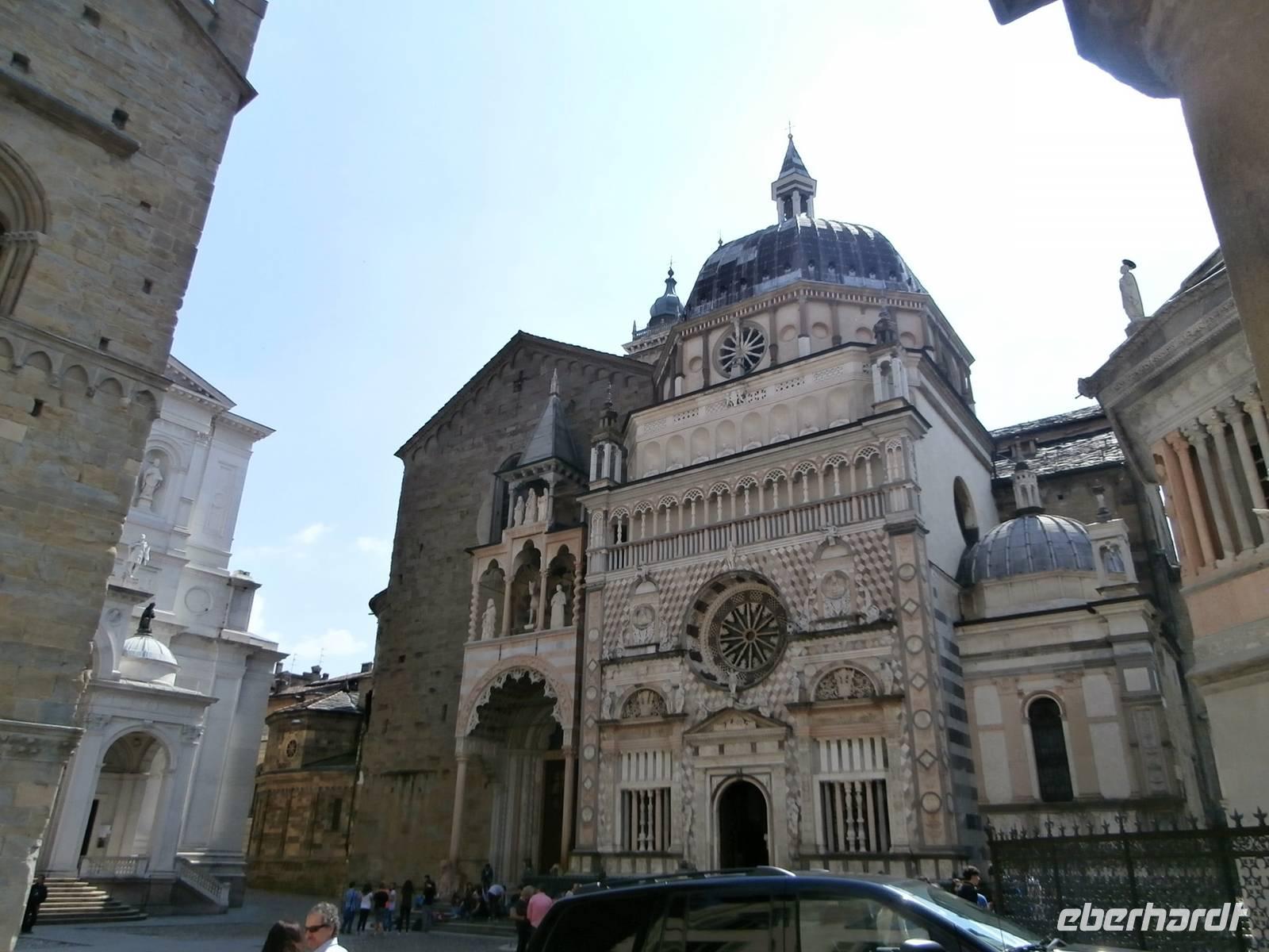 Wir begeben uns heute auf die Weiterreise nach Garlate an den Comer See. Schnell ist unser Gepäck im Bus verstaut und pünktlich starten wir bei Sonnenschein und angenehmen Temperaturen nach Borghetto sul Mincio, hier erwartet uns ein Dorf mit Wassermühlen. Die Brücke Ponte Visconteo ist ein 600m langes imposantes Brückenbauwerk aus dem 14. JH. Sie zieht sich über den Mincio und direkt am Flussufer befinden sich hübsche, kleine Lokale. Der romantische Ort ist wegen seiner Tortellini und der Festa del Nodo d'amore zu Weltruhm gekommen. Zu Ehren der Liebesknoten, wie die delikate Pasta Spezialität heißt, verwandelt sich die 600m lange Visconti-Brücke in eine gigantische Speisetafel, an der bis 4000 Menschen genüsslich Platz nehmen können. In Bergamo legen wir am Nachmittag noch einen Halt ein. Hans bringt uns mit dem Bus bis in die Nähe der Funicolare, die hinauf in die auf einem Hügel gelegene Altstadt fährt. Citta Alta ist von venezianischen Mauern umgeben und thront über der modernen Unterstadt auf einem Hügel. Den Piazza Veccia umgeben fantastische Bauwerke, wie Dom, Torre Civica, Kirche der S. Maria Maggiore und die Capella Colleoni e Battisterio. Bei traumhaften Wetter und der herrlichen Kulisse vom alten Bergamo vergeht die Zeit wie im Flug. Nach einem kurzen Ausblick auf die Unterstadt geht's mit der Bahn wieder hinunter. Hans holt uns wieder ab und so geht die Weiterfahrt im klimatisierten Reisebus weiter bis zum Hotel in Garlate. Ein gutes Abendessen wird uns im Hotel Nuovo serviert.