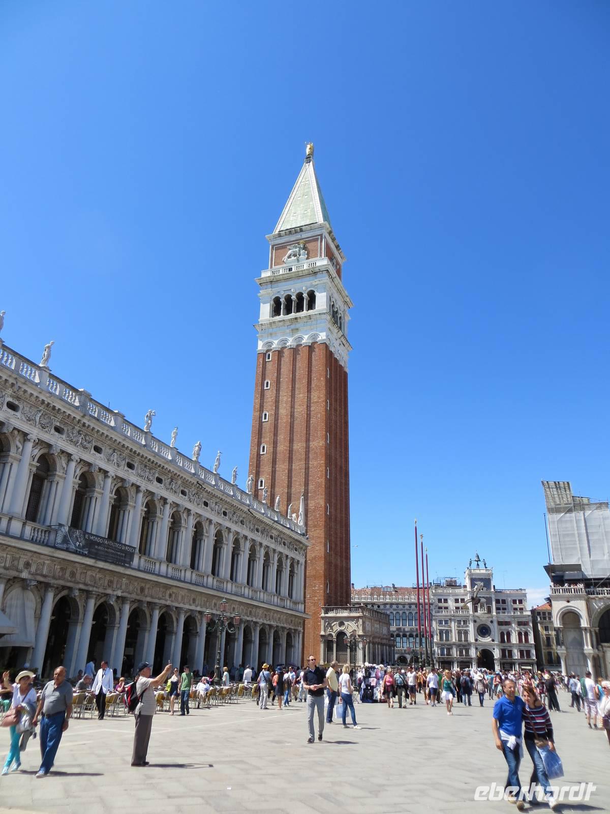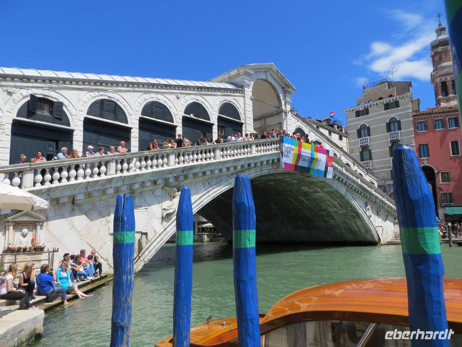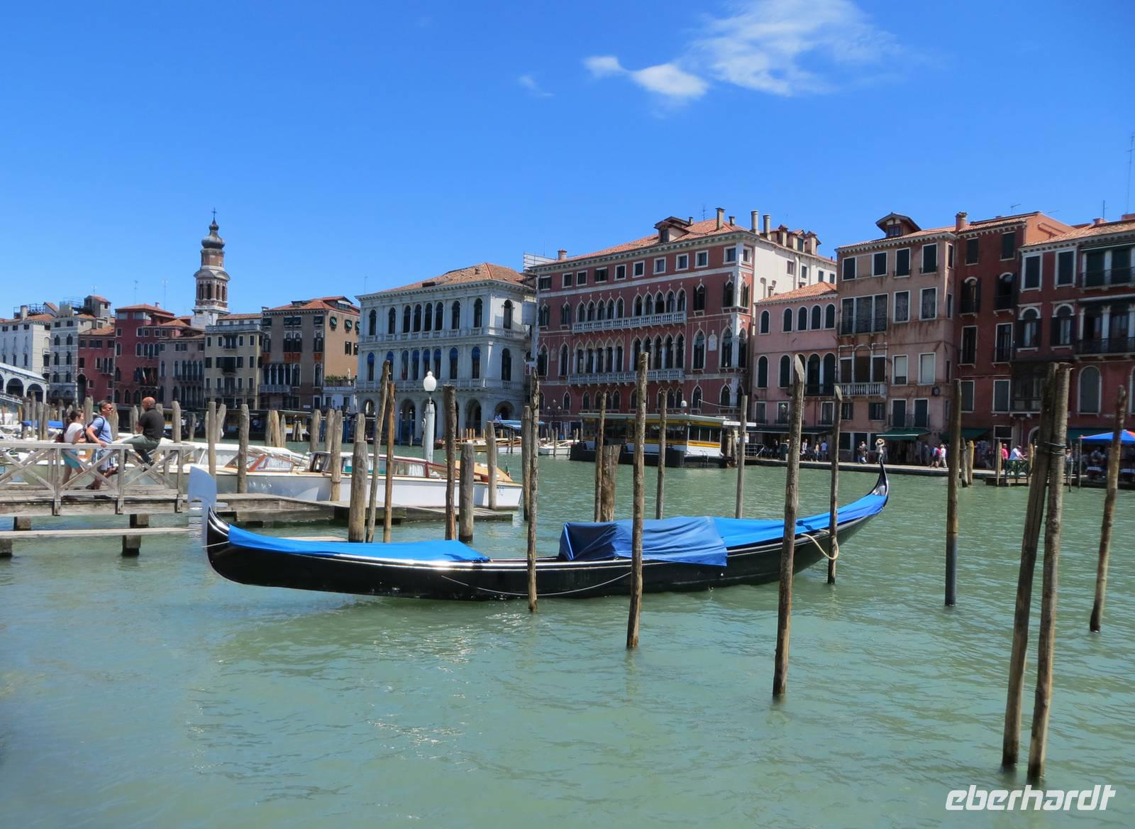 Nachdem wir uns unser Frühstück „erkämpft" hatten, starteten wir pünktlich 09.30 Uhr bei Sonnenschein unsere Weiterfahrt nach Venedig. Unterwegs legten wir eine kurze Kaffeepause ein, bevor wir uns in der Lagunenstadt mit unseren beiden örtlichen Reiseleiterinnen Alissia und Elisabeth trafen. Unsere beiden Chauffeure brachten unsere Koffer zur AIDAaura. So konnten wir ganz entspannt durch die Lagunenstadt spazieren. Zuerst nutzten wir den modernen People Mover, einen Zug, der auf Stelzen vorbei am Hafen der Kreuzfahrtschiffe bis zum Römischen Platz fährt. Nun teilten wir uns in eine Gruppe für Schnellläufer und in eine Genießergruppe. Wir gingen zuerst zum Campo Campazzo, dann zum Campo S. Polo. Unsere Reiseleiterinnen wählten eine Strecke, die etwas Abseits von den großen Touristenströmen lag. Unterwegs erfuhren wir Wissenswertes zum Leben in Venedig und natürlich zur Geschichte der Stadt. Plötzlich lag er vor uns, der Canale Grande mit der imposanten Rialto-Brücke. Hier sprudelte die Stadt fast über, sehr viele Touristen waren an diesem sonnigen Tag, bei fast wolkenlosem Himmel, unterwegs. Wir sahen kurz den Gondolieren bei der Arbeit zu. Aber wirklich nur ganz kurz, denn wir wollten unbedingt zum Markusplatz mit dem Campanile und dem Dogenpalast, den wir durch ein Gewirr engster Gassen mit vielen Touristen erreichten. Für alle Gäste war dies eine Stippvisite zum Auffrischen für Wiederbesucher oder zum Neugierigwerden für alle Gäste, die zum ersten Mal in Venedig weilten. Nach ganz kurzer Freizeit spazierten wir zum Schiffsanleger zu unserer Bootsüberfahrt zur AIDAaura. Leider hatten wir unterschiedliche Informationen zum Liegeplatz erhalten, nach der vierten oder fünften Brücke ...? Schließlich legten wir 15.10 Uhr ab und konnten den Markusplatz, die Kirche San Marco und den Canale Grande nun aus völlig neuer Perspektive bestaunen.Wir fuhren mit dem Boot zwischen den großen Schiffen von MSC und Royal Caribbian. Die AIDAaura versteckte sich noch etwas hinter diesen Ozeanriesen.