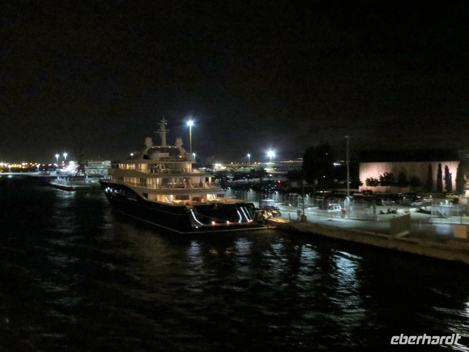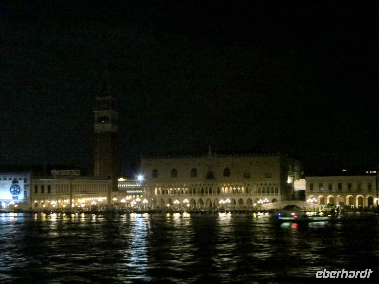 So ein erster Kreuzfahrertag ist nicht so schnell beendet: Seenotrettungsübung, Willkommenssekt und „In the Jungle Poolparty" auf dem Pooldeck ... Endlich lichtete die AIDAaura 22.00 Uhr ihren Anker. Zum besonderen Erlebnis wurde unsere Ausfahrt aus Venedig, vorbei an der beleuchteten Silhouette der Stadt: Canale Grande, Markusplatz, Campanile, Dogenpalast ... Gegen Mitternacht schlummerten wir in unseren schmucken Kabinen dem ersten Hafen entgegen.