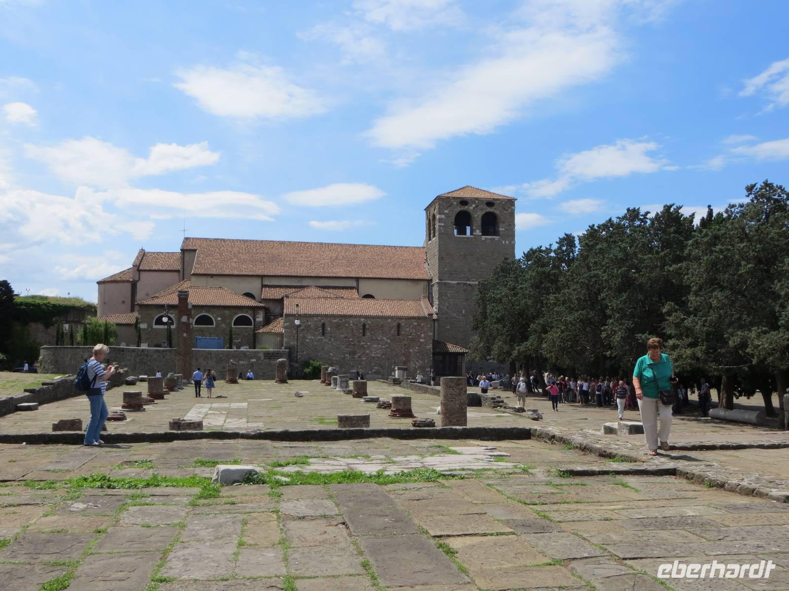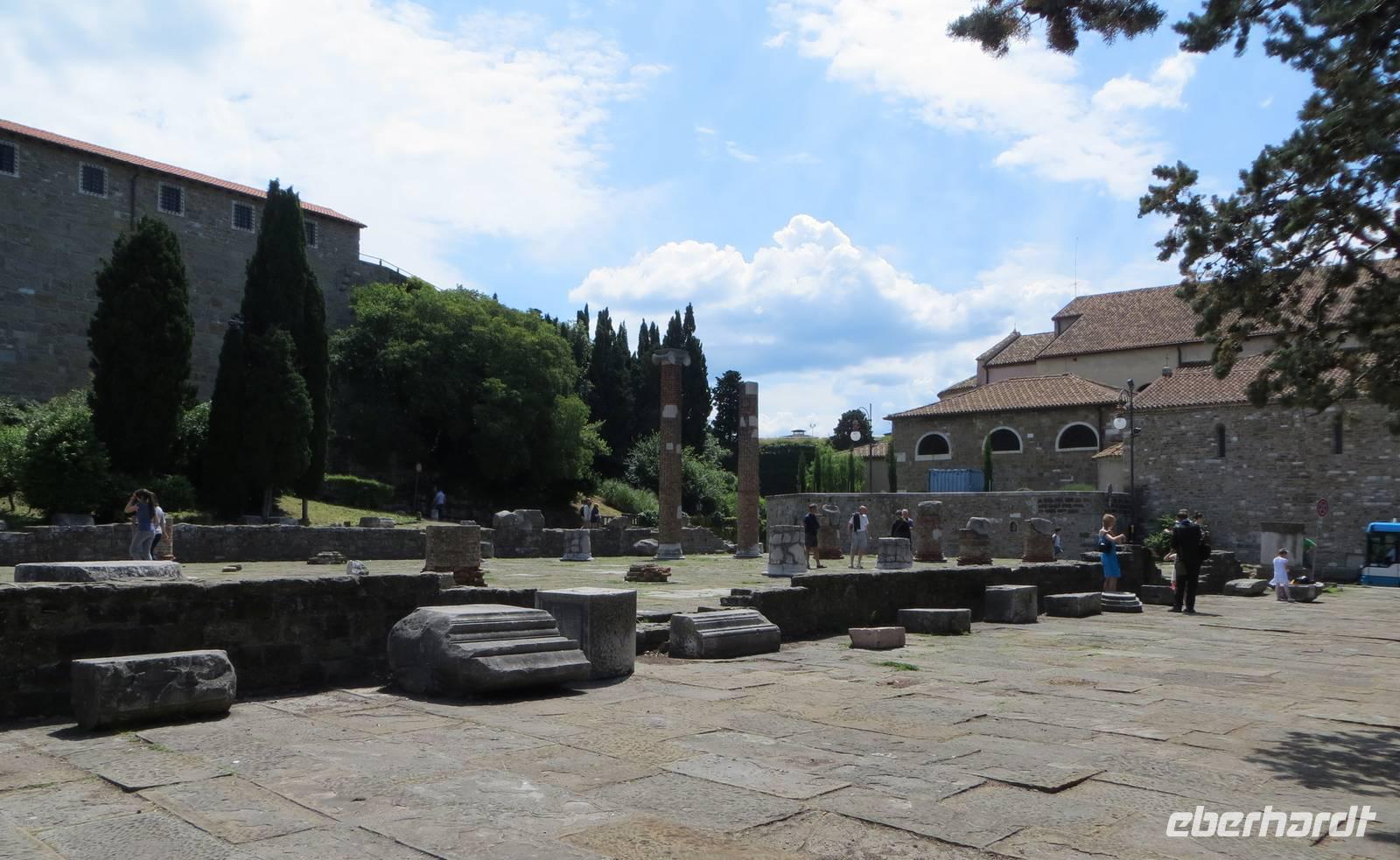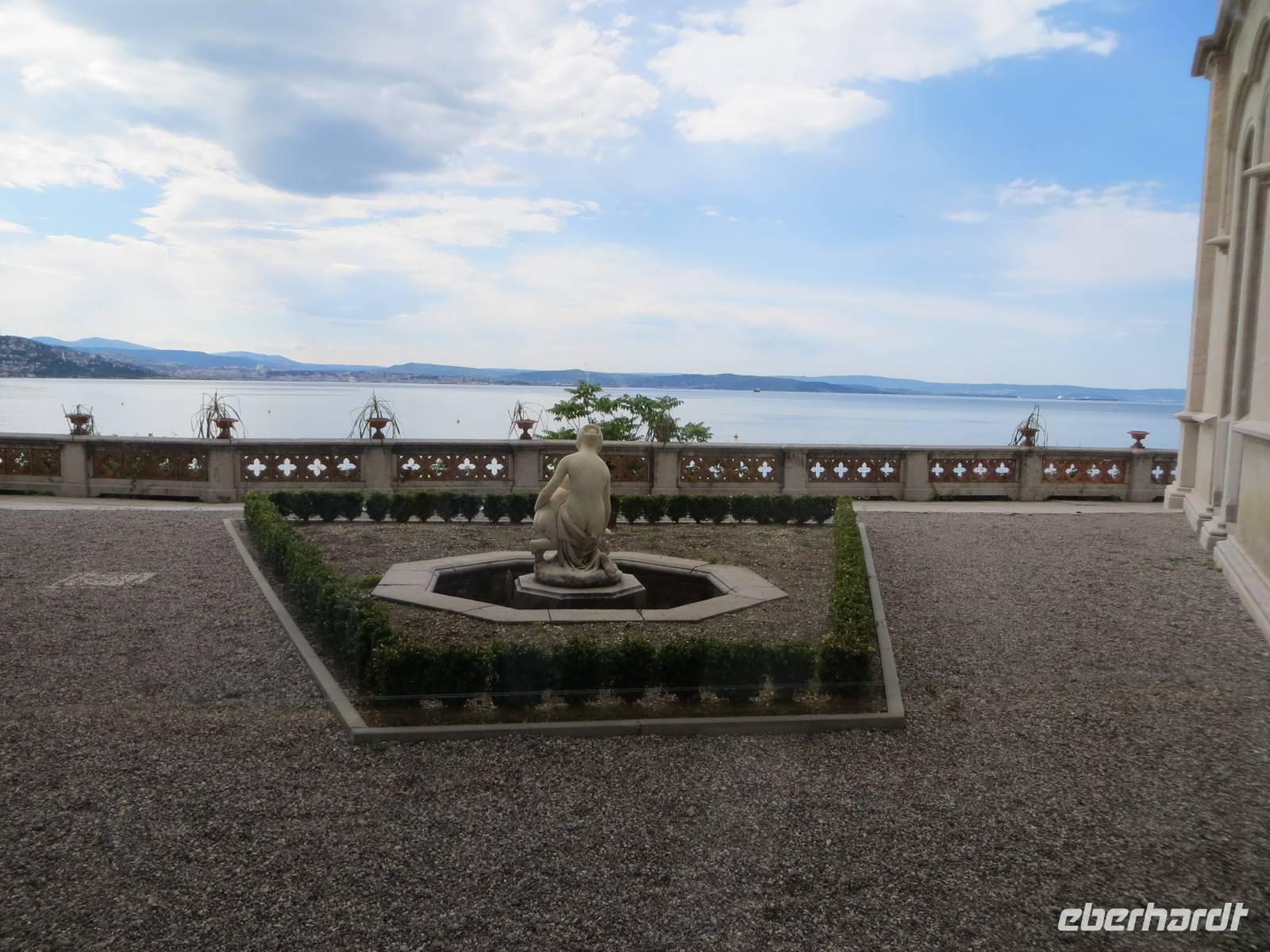 Gemeinsam mit vielen Gästen bestaunte Marion den Garten und das Schloss von Miramare, erbaut für Erzherzog Maximilian, einem Bruder von Kaiser Franz Joseph, und seine Frau Charlotte von Belgien. Hier wurde Geschichte lebendig. Wir flanierten durch die Privatgemächer im Erdgeschoss und die besonders prunkvollen Repräsentationsräume in der ersten Etage. Anschließend fuhren wir zurück nach Triest. Unterwegs berichtete unsere äußerst sachkundige und charmante örtliche Reiseleiterin Anna-Lisa über die Geschichte der Stadt im Drei-Länder-Eck von Italien, Österreich und Slowenien. Wir fuhren hinauf zum alten Capitol und genossen von dieser exponierten Stelle den Blick auf die Bucht und die Stadt von Triest. In der Kathedrale San Giusto fand gerade eine Erstkommunion statt. Wir sahen die schmuckvolle Ausstattung und erfuhren interessante Details zur Geschichte des Gotteshauses. Anna-Lisa zeigte uns die alten Grundrisse, denn die heutige imposante Kirche entstand durch den Überbau von zwei Einzelkirchen. Bei den Ausgrabungenn unterhalb des gewaltigen Castells (14. Jahrhundert) berichtete Anna-Lisa über die römische Geschichte Triest und auch über die Zeit unter Mussolini, wo die Kastanien als Symbol Österreichs durch Zypressen als Symbol für Italien und die Römer ersetzt wurden. Blinder Fanatismus brachte in der Geschichte niemals etwas ein!