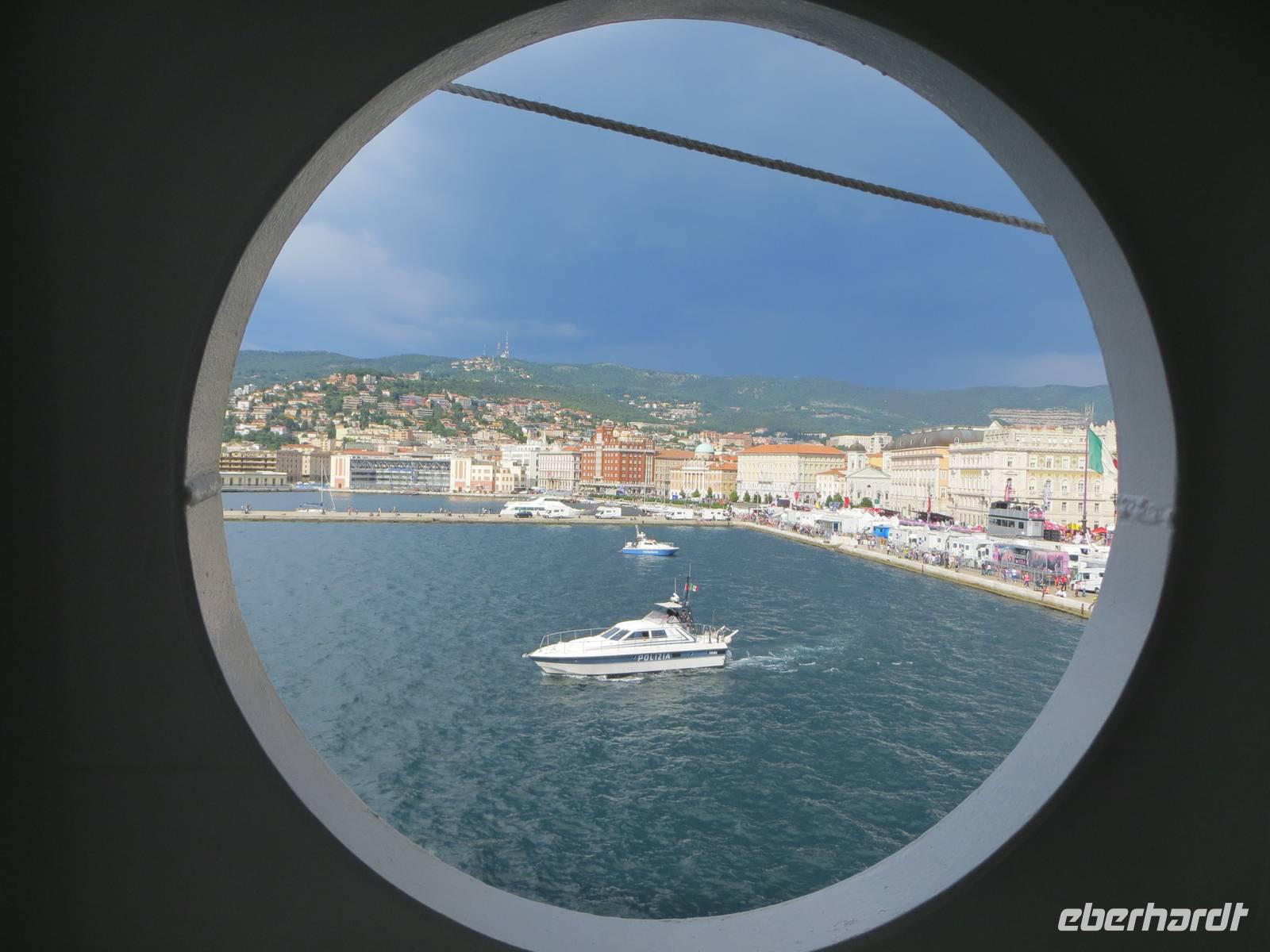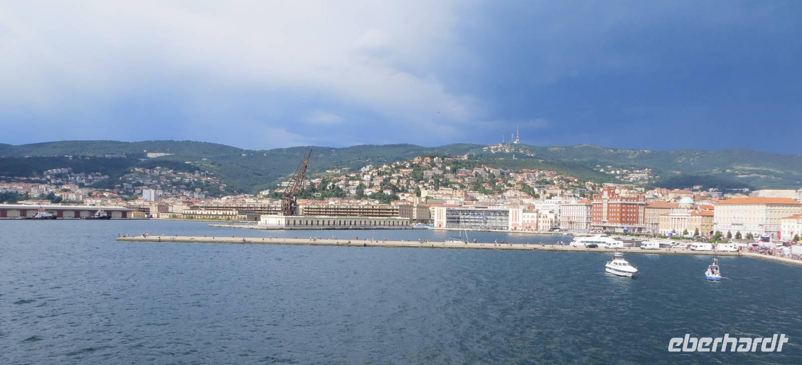 Nach einer ruhigen Nacht an Bord erreichten wir bei schönem Wetter Triest, die österreichichste Stadt Italiens. Sie war lange unter der Herrschaft der Habsburger und gehört erst seit 1918 zu Italien. Überall ist der imperiale Hauch zu spüren.
