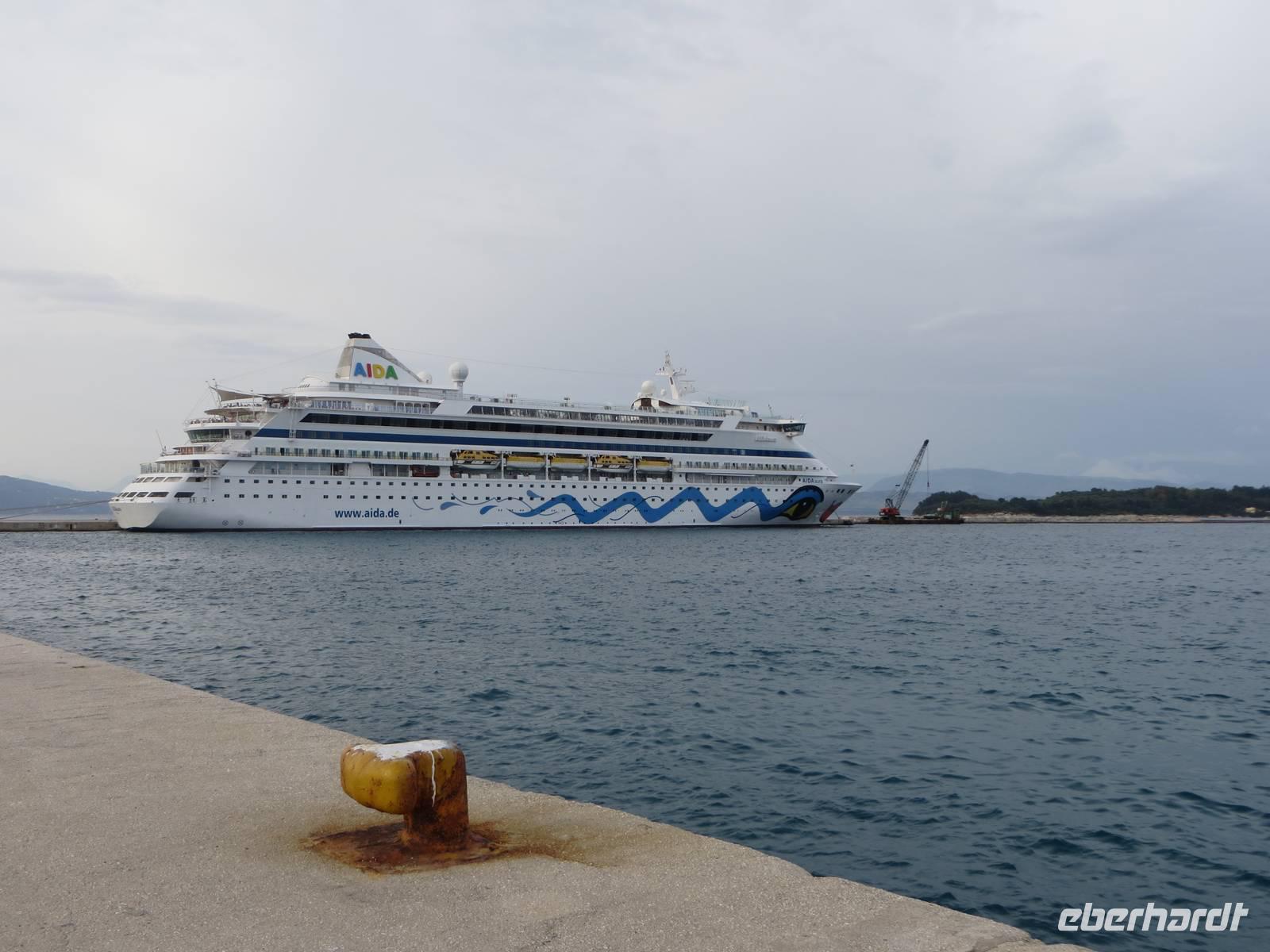 Nach einem kräftigen Frühstück bestaunten wir die Einfahrt durch die Meeresenge zwischen Albanien und der Insel Korfu, die nur 1,94 Kilometer breit ist. Majestätisch grüßten uns die gewaltigen Bergmassive Albaniens. Pünktlich 12.00 Uhr legte die AIDAaura im Hafen der Inselhauptstadt Kerkyra an. Unsere Ausflüge führten uns heute zu den schönsten Aussichtspunkten Korfus oder auf Inselrundfahrt in den Norden.