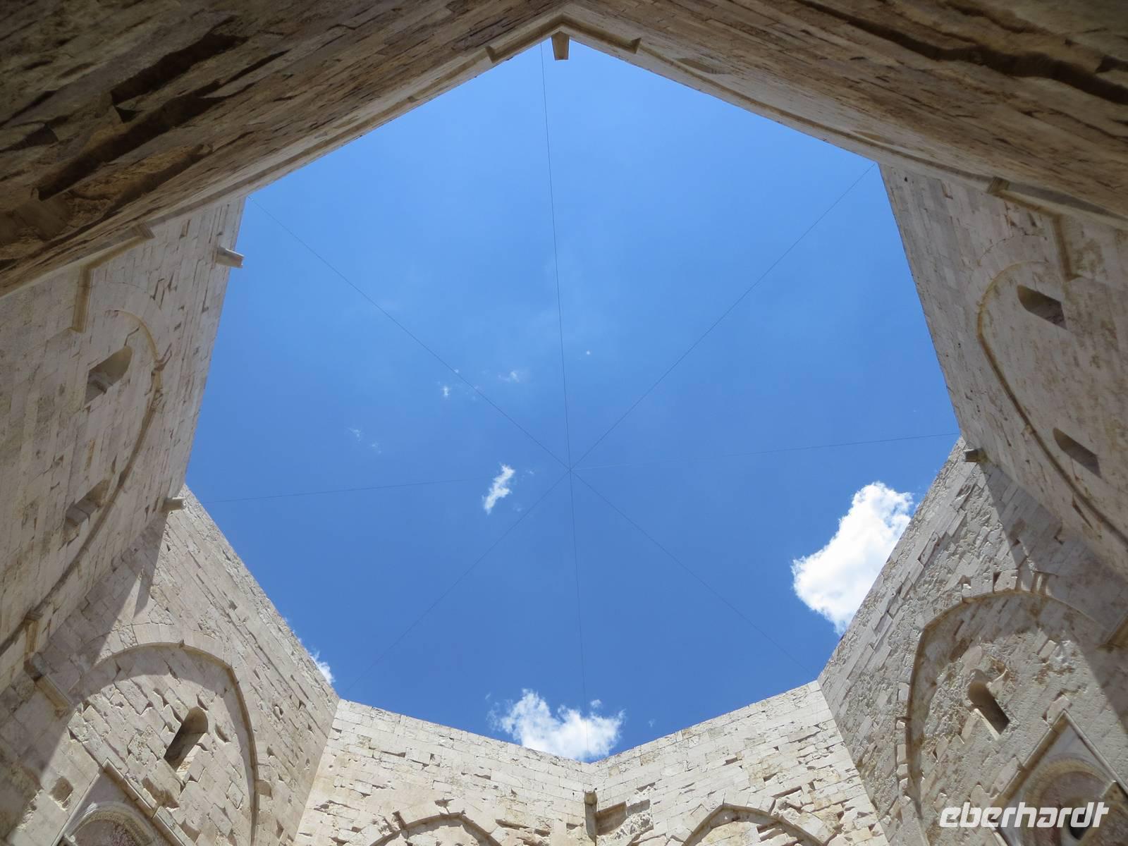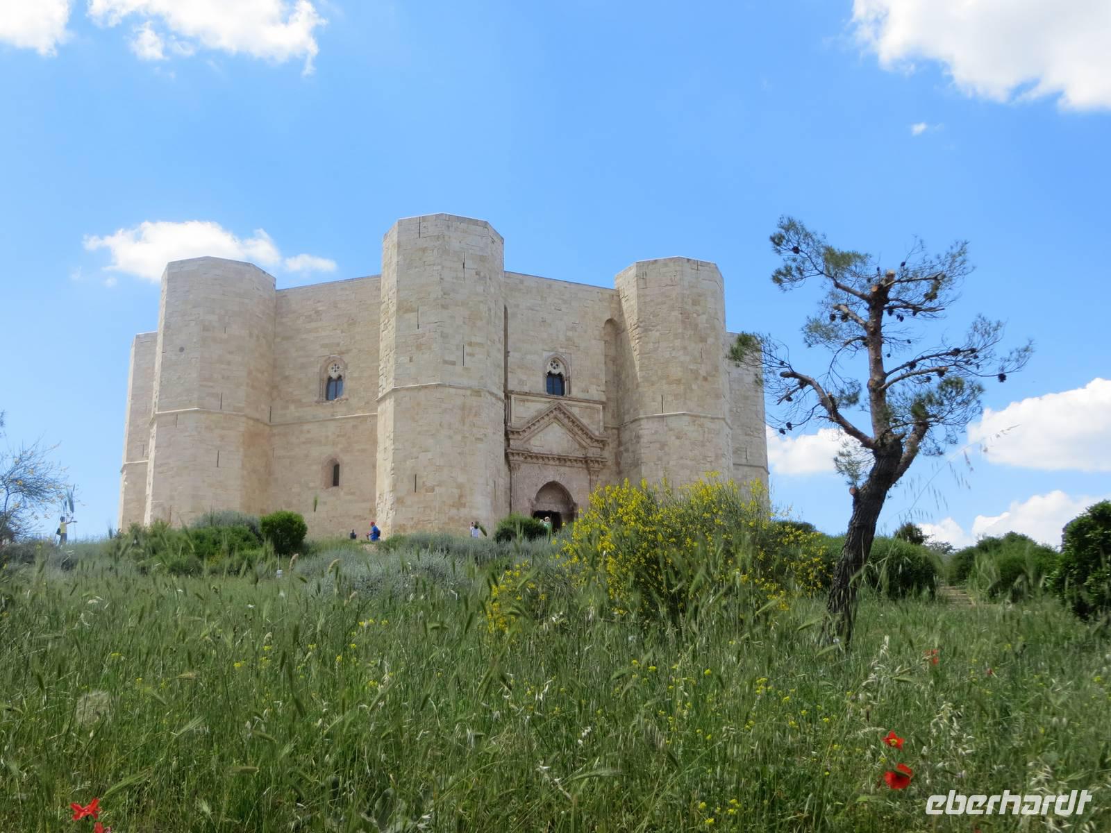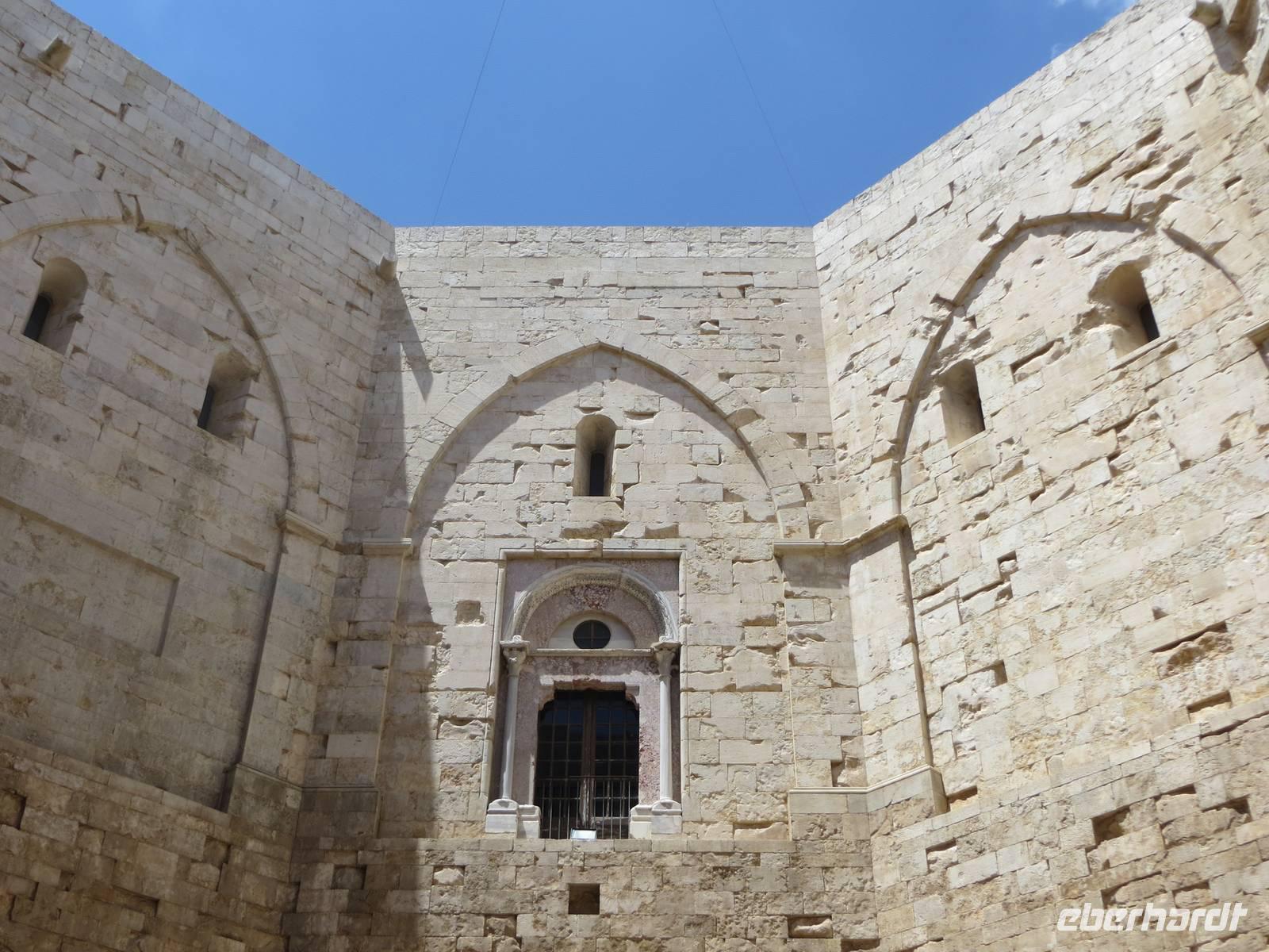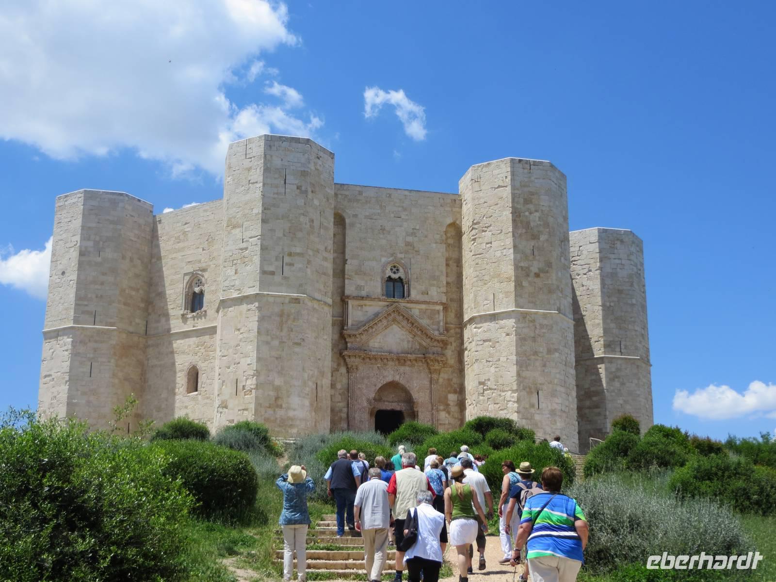 Nun weiter zur „Krone Apuliens" zum gewaltigen und Geheimnis umwitterten Castel del Monte, das sich weithin sichtbar auf einer Anhöhe in der Terra die Bari befindet. Eine einzigartige Burg des Stauferkaisers Friedrich II. präsentierte sich unserem Blick: Achteckig ist der Grundriss des Castello, der acht Türme und des Innenhofes. Anna berichtete über die Mystik des Ortes, den Bau im 13. Jahrhundert und die unterschiedlichen Deutungen der Wissenschaftler zur Nutzung des Schlosses. War es nun Jagdschloss, Repräsentationsschloss, Wehrbau oder diente es zur Aufbewahrung und zum Schutz des Staatschatzes? Über eine steile, enge Wendeltreppe erkletterten wir die erste Etage mit acht trapezförmigen Räumen. Wir genossen den Blick in die Weite und waren erstaunt über die Ausstattung mit Kaminen, Wasserleitungen und Mosaiken. Tief beeindruckt fuhren wir zurück zum Hafen von Bari.