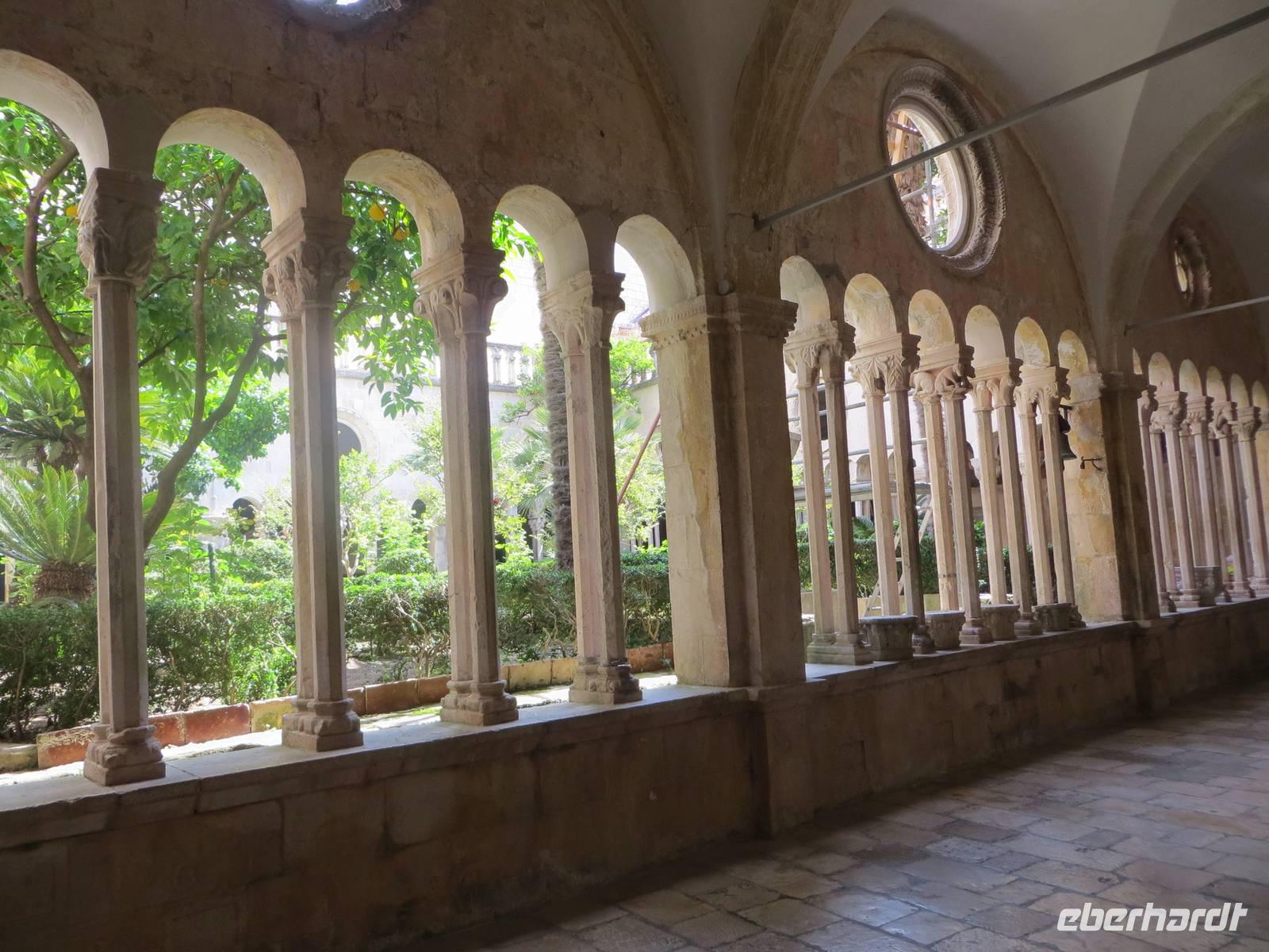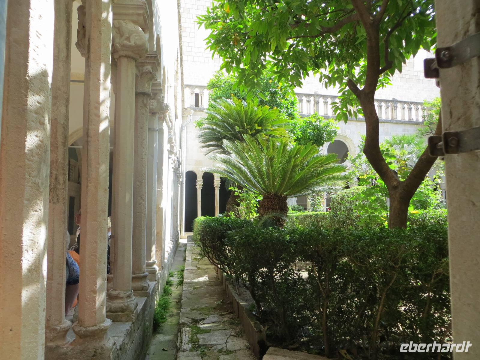 Unsere beiden örtlichen Reiseleiterin Ivana und Reiseleiter Albin berichteten aus der wechselvollen Geschichte des alten Ragusa. Vom Aussichtspunkt eröffnete sich uns das Panorama auf die Altstadt mit der imposanten Stadtmauer. Durch das Pile-Tor betraten wir wenig später die Gassen der Stadt, besuchten das Franziskanerkloster mit der ältesten Apotheke Europas, bummelten über die Hauptpromenade, den Stradún, zum Hafen, bestaunten das Rathaus, den Rektoren- und den Sponza-Palast von außen, verweilten an der Rolandsäule. Die anschließende Freizeit nutzten wir auf unterschiedliche Weise ... Die meisten Gäste begaben sich auf einen Spaziergang auf der 1.940 Meter langen und komplett begehbaren Stadtmauer. Es ging zuerst über viele Treppen nach oben. Diese Mühe wurde mit schönsten Blicken in die Gassen der Stadt und auf die Küstenabschnitte belohnt. Unterwegs legten wir einige Stopps zum Erfrischen ein. Treppauf, treppab, treppauf, treppab, treppauf - immer im Wechsel, immer wieder neue Panoramen, ein Augenschmaus ... Keiner hat diese „sportliche Herausforderung” bereut.