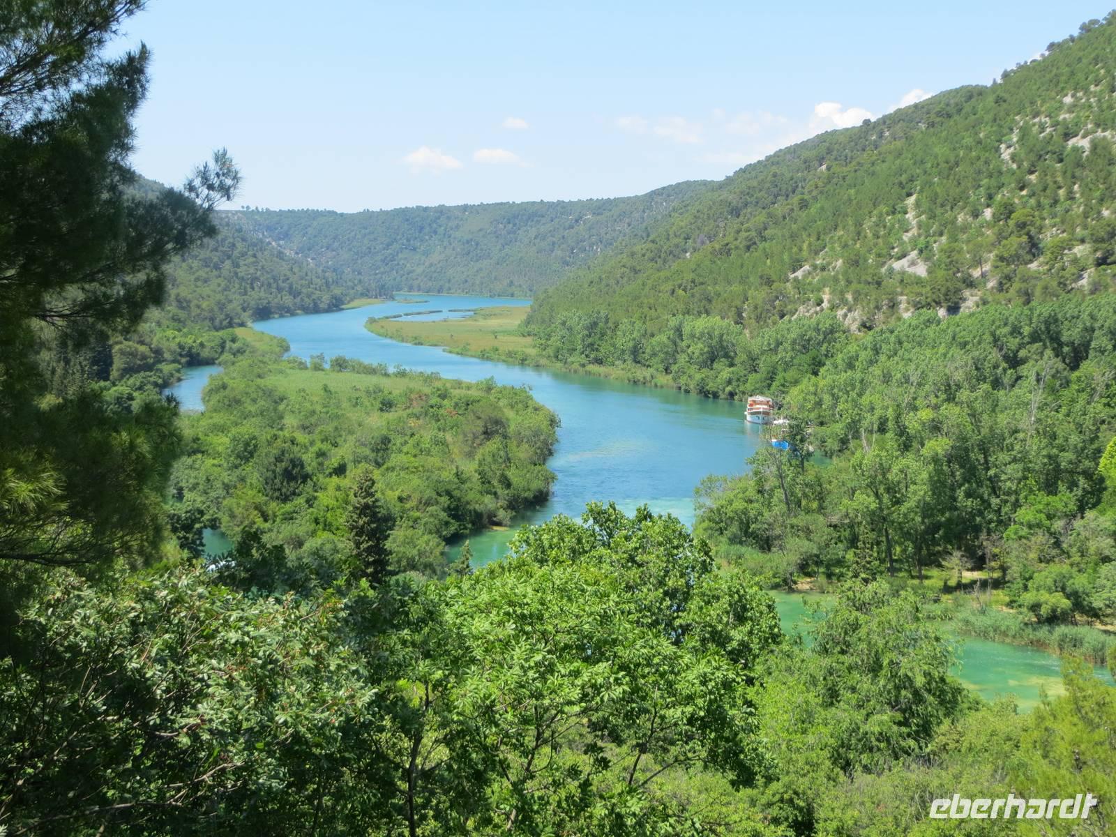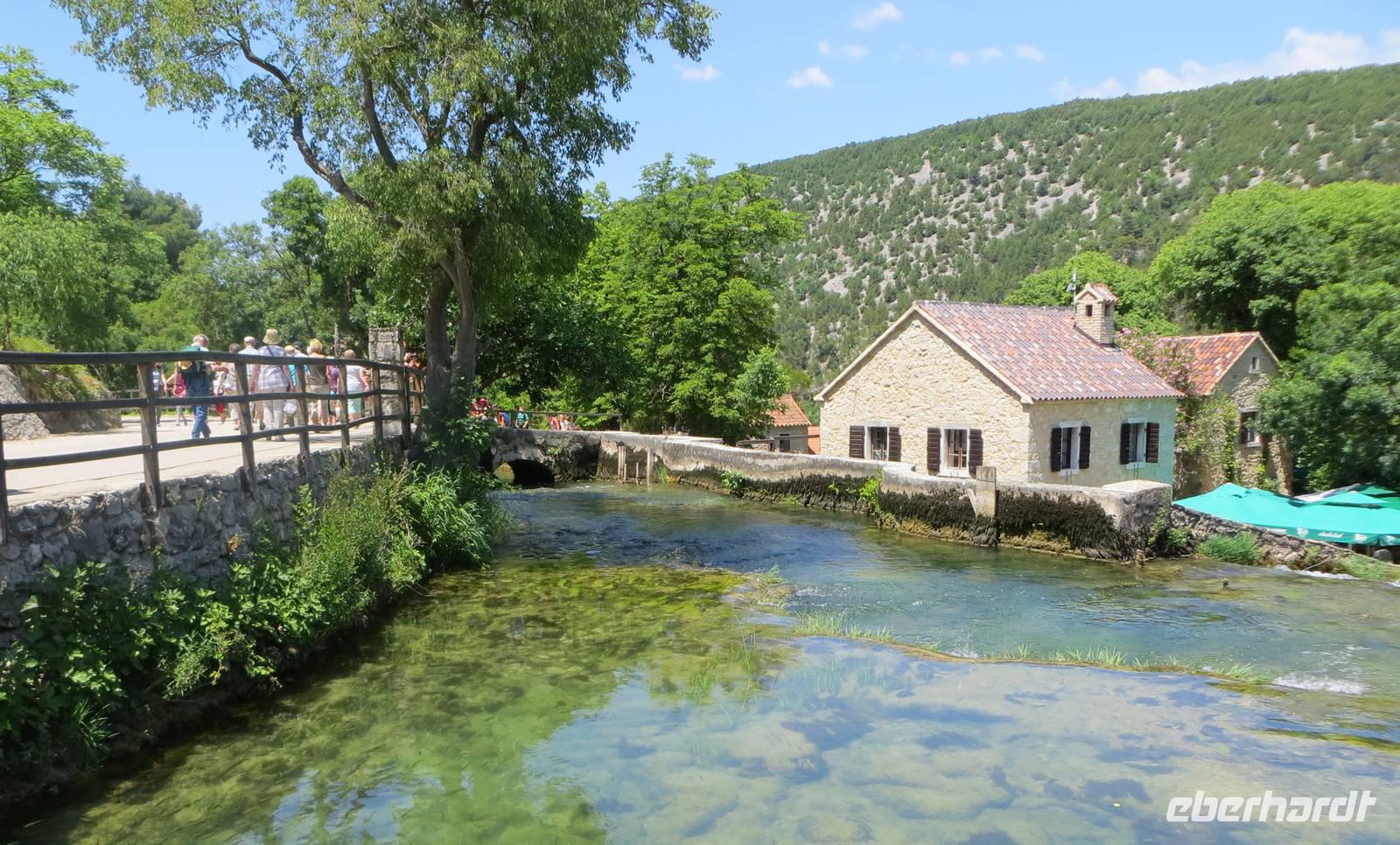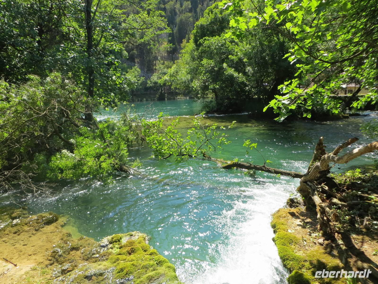 Hier standen die Busse für den zweiten Teil unseres Eberhardt-Inklusiv-Ausfluges bereit. Wir fuhren zum Naturparadies Krka-Wasserfälle. Über hölzerne Stege balancierten wir zuerst zu einer ehemaligen Wassermühle. Dann lag er vor uns und breitete seine natürliche Schönheit aus - der Skradinski Buk, der spektakulärste Wasserfall im Nationalpark. Über 17 Kaskaden und 45 Meter Höhe stürzte, rauschte und polderte das Wasser in die Tiefe. Nach einer Picknick-Pause an diesem eindrucksvollen Naturschauspiel spazierten wir im Nationalpark. Die Natur bot uns eine Fülle interessanter Beobachtungen: munter tummelten sich Fische im klaren Wasser, blaue Libellen tanzten in der heißen Luft, Vögel zwitscherten um die Wette, Frösche gaben ihr Konzert ... Nur einen haben wir nicht gesehen: Winnetou. Hier wurden Szenen der Filme „Der Ölprinz“ oder „Unter Geiern“ gedreht. Es störte nicht. Die Natur war umso schöner und beeindruckender. Gern wären wir noch etwas hier geblieben ... aber 17.30 Uhr war „Alle Mann an Bord“ und diese Zeit ist für alle Kreuzfahrer Gesetz. Da wir die neue Autobahn nehmen konnten, blieb uns noch etwas Zeit zu einem Bummel in der nachmittäglichen Sonne an der Uferpromenade Zadars.