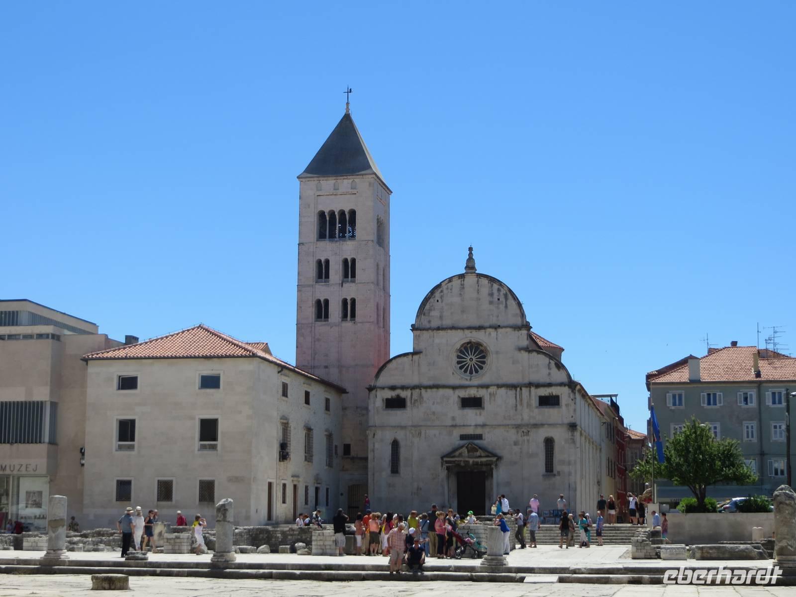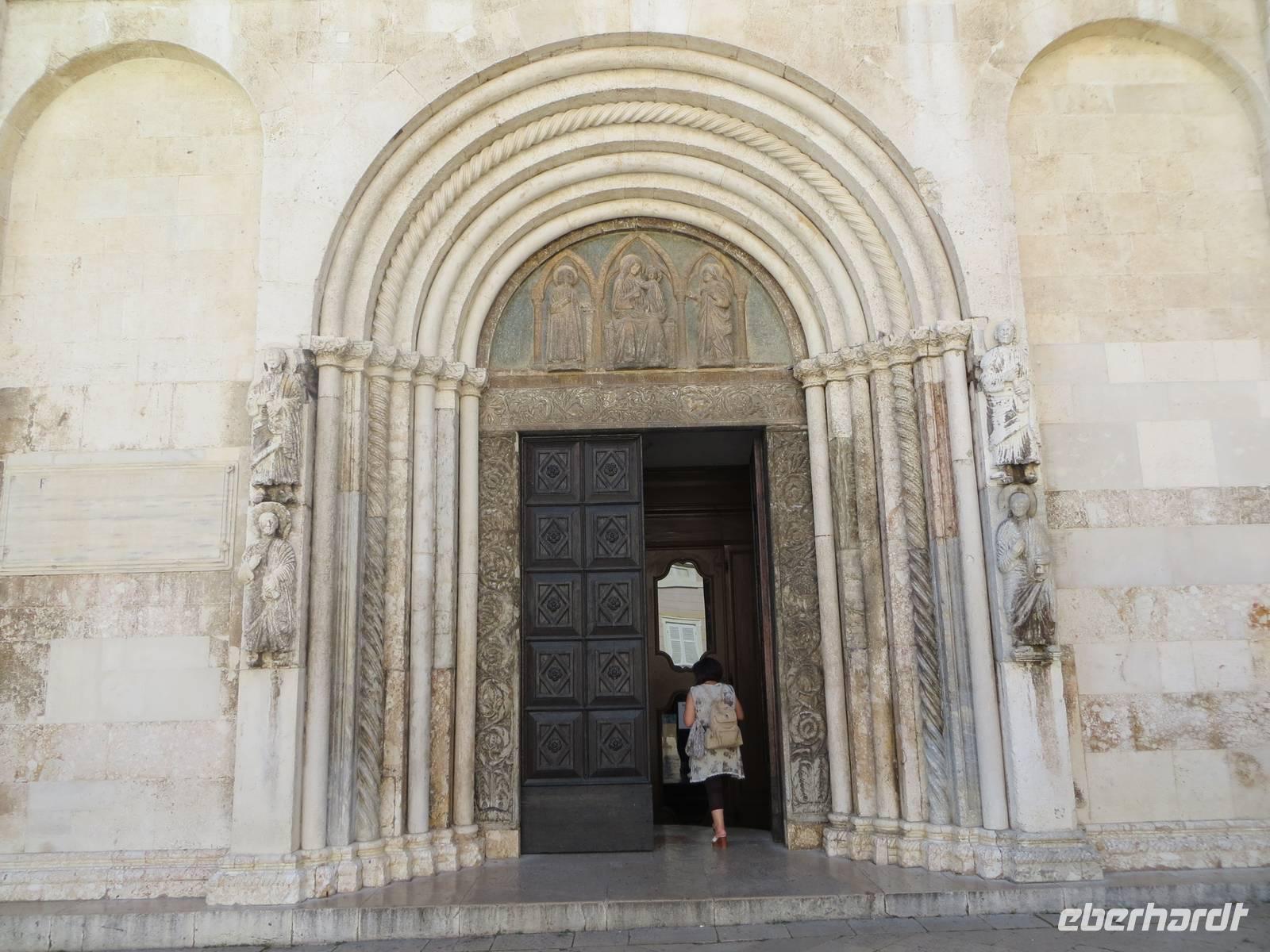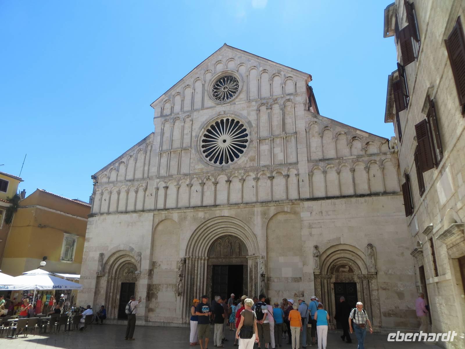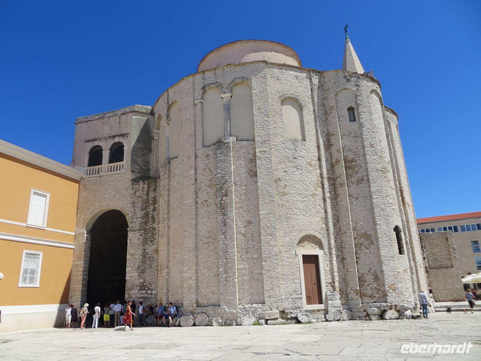 Anschließend bestaunten wir im Benediktinerkloster den Gold- und Silberschatz der Stadt, den die Benediktinerinnen immer wieder versteckten und so bis heute in seinem Umfang bewahren konnten. Unser Stadtspaziergang führte uns nun vorbei an der zweigeschossigen Rundkirche des Heiligen Donat, durch das römische Forum zur Domkirche der Heiligen Anastasia. Nach einer kurzen Stippvisite begaben wir uns durch das Sveti-Rok-Tor, eines der alten Stadttore, hinaus aus der Altstadt.