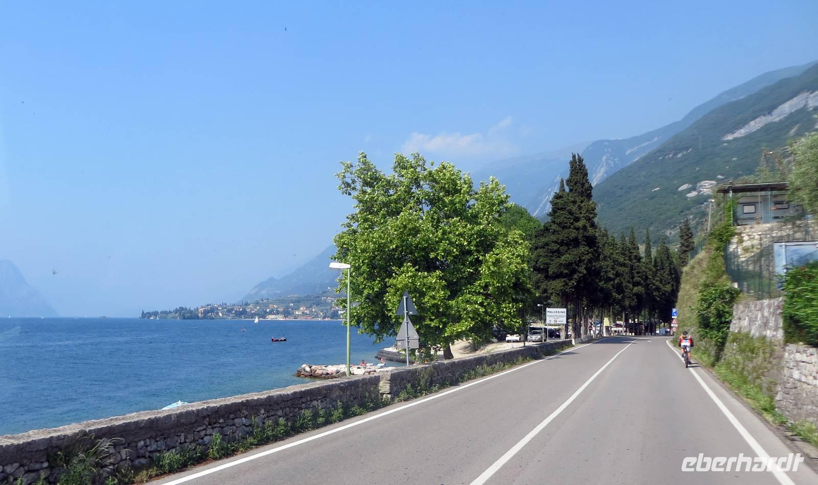 Gut gestärkt konnte es nun weiter in Richtung Hotel gehen. Doch halt, wir hielten für unsere Gäste noch eine Überraschung bereit. Mit unseren Chauffeuren Hans-Jürgen und Gerd hatten wir abgestimmt, die Gardesana Orientale entlang Ost-Ufers des Gardasees zu nehmen. So starteten wir in Peschiera und fuhren durch Malcesine und weitere romantische Orte, entlang des Monte-Baldo-Massives bis nach Torbole. Eine letzte kurze Pause und weiter zu den beiden Familienhotels: Hotel „Vienesse“ in Ala Trento und Hotel „Villagio Hotel“ in Aquila. Wir wurden bestens betreut und erfreuten uns an den Panoramen der Bergwelt im Etschtal.