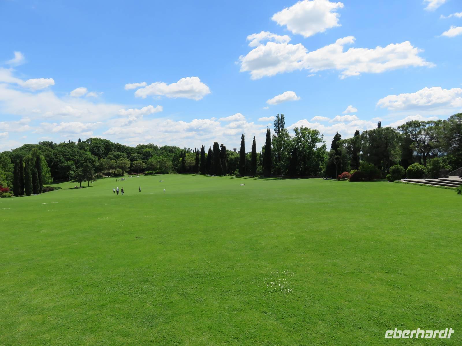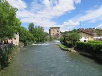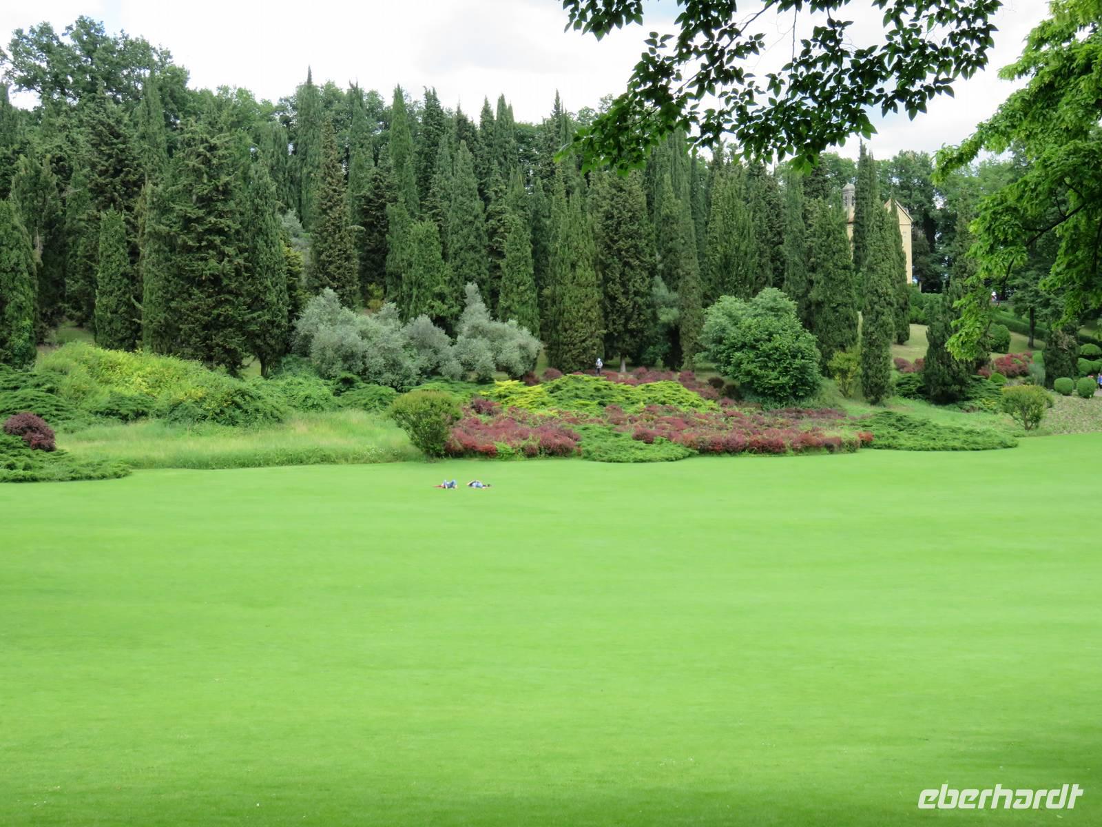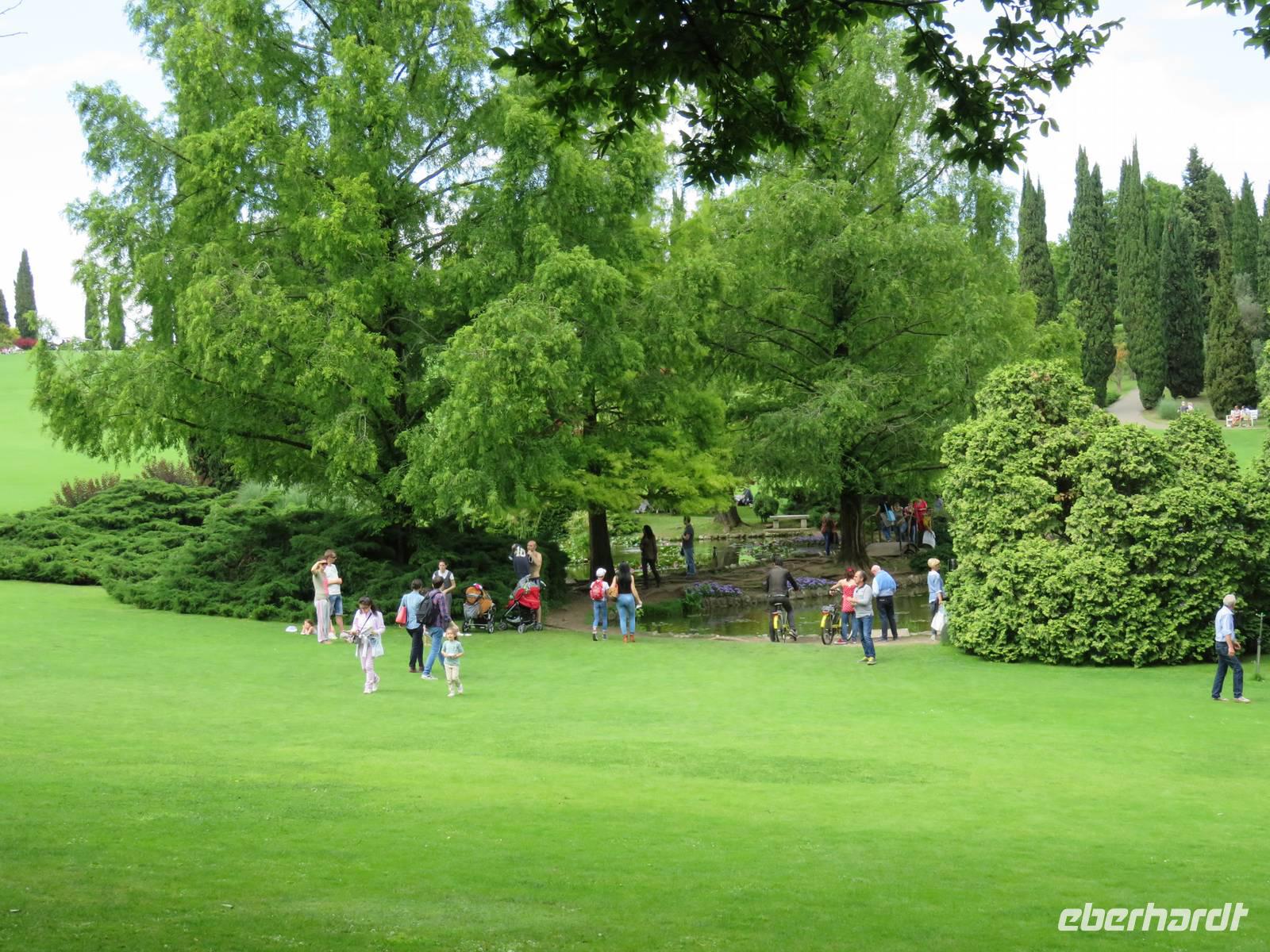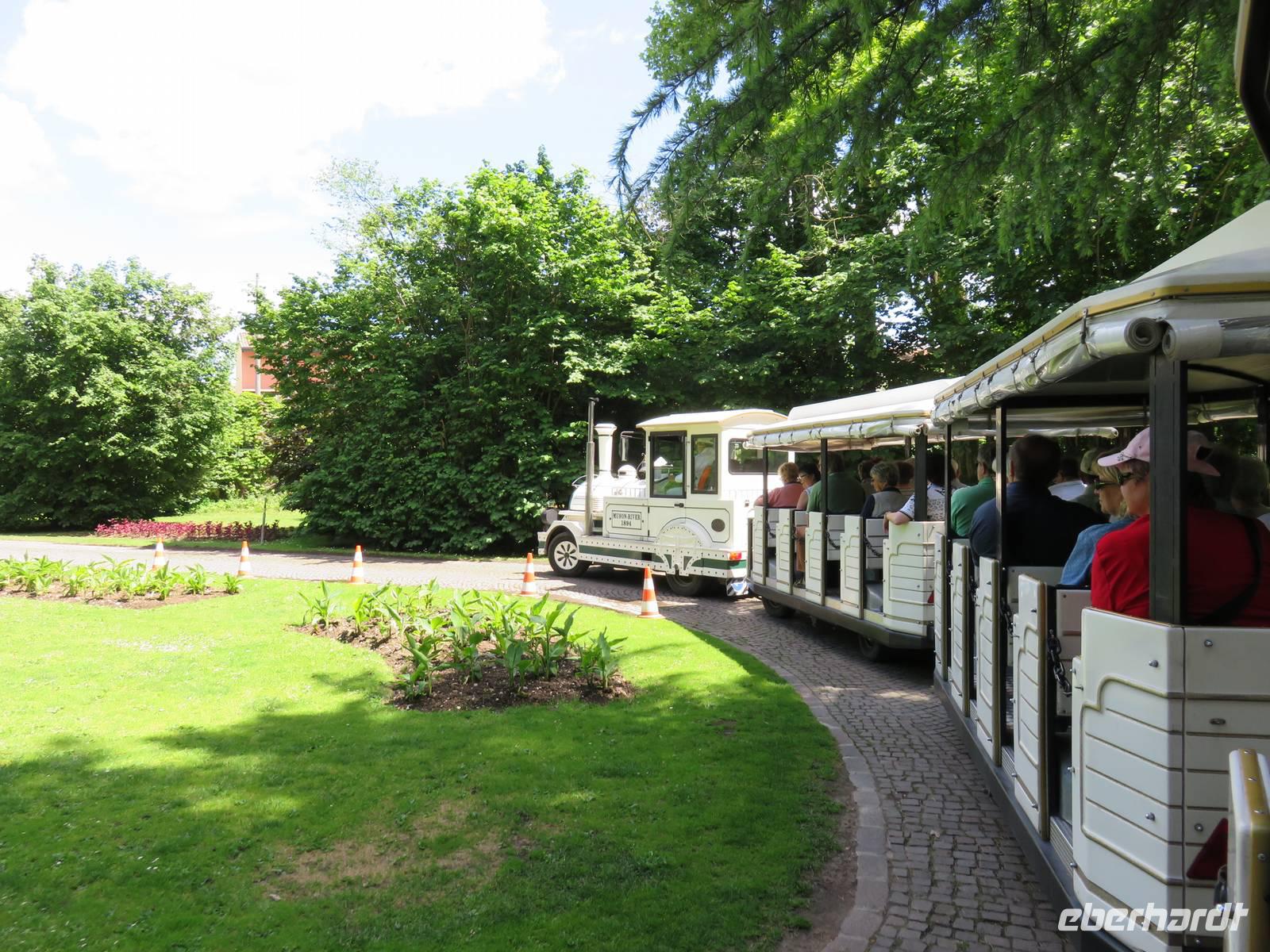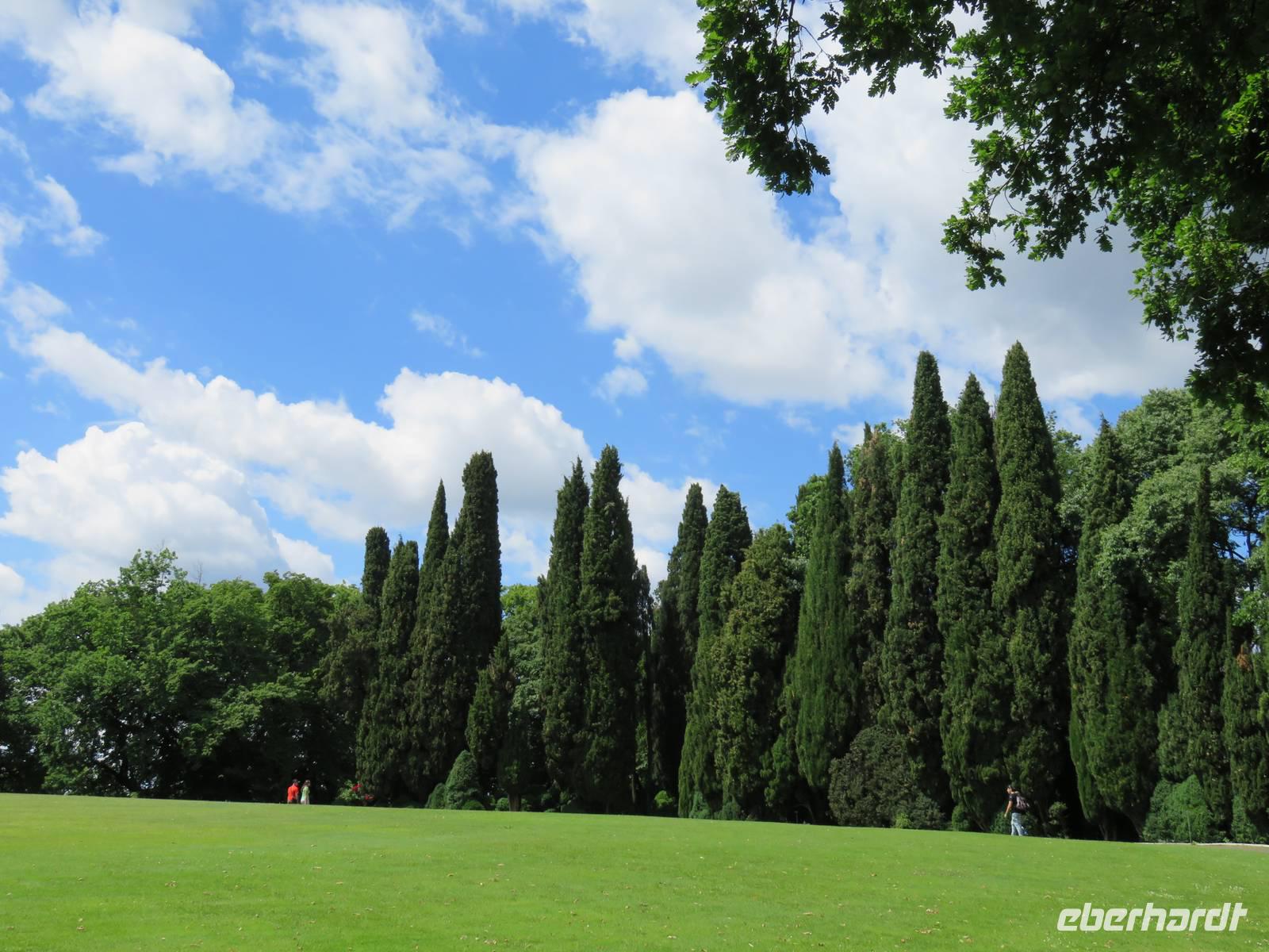 Heute hieß es nun Abschied nehmen von unserem schwimmenden Hotel. Die Busse standen kurz pünktlich zur Abfahrt bereit. Erste Station unseres Programms war der kleine Ort Borghetto südlich des Gardasees. Hier teilt sich der Mincio, der Abflusss des Gardasees, in mehrere Arme, deshalb ist der Ort prädestiniert für Wassermühlen. Die historischen Gebäude und Brücken lockten viele Touristen an. Gaststätten und Cafes luden uns bei herrlichem Wetter unter hohen Bäumen zur kurzen Mittagspause ein. Anschließend besuchten wir den Parco Sigurta in Valeggio. Mit der Parkbahn fuhren wir ca. 1 h durch das Gartenparadies, das private Eigentümer über viele Jahrhunderte gestaltet und seit 1978 für die Öffentlichkeit zugänglich gemacht haben. Heute zählt die weitläufige Anlage zu den schönsten der Welt. Große Rasenflächen, Rosengärten, Sträucher und Bäume in den vielfältigsten Formen, kleine Kirchen und Pavillions, ein Bauernhof und unzählige Blumenrabatten boten uns immer wieder neue Sichtachsen und Ausblicke. Von der sehenswerten Anlage konnten wir nur einen Überblick mitnehmen, es lohnt ein weiterer längerer Besuch. Auf der Weiterfahrt überreichten die Reiseleiterinnen das Gruppenfoto mit dem Kapitän der AIDAvita an die Gäste. Die Fahrt führte uns diesmal direkt am östlichen Ufer des Gardasees entlang durch die bekannten Touristenorte Lazise, Bardolino, Garda, Malcesine bis nach Torbole. Herrliches Wetter bescherte uns eine wunderschöne Panoramafahrt mit tollen Ausblicken auf die Wasserflächen mit ihren Sportmöglichkeiten, die Strände und die umliegenden Berglandschaften. Vom Nordufer des Sees aus fuhren wir in Richtung Calliano in die Region Trentin zu unserer Zwischenübernachtung. Calliano ist ein kleiner Ort unweit der Autobahn. Im „Villaggio Hotel Aguila", einem traditionsreichen, seit mehreren Generationen familiengeführten Haus in landestypischem Charme bezogen wir unsere Zimmer für die Übernachtung. Vom Hotel aus hatten wir abends einen herrlichen Blick auf das über dem Ort thronende und abends hell erleuchtete Castell Beseno.