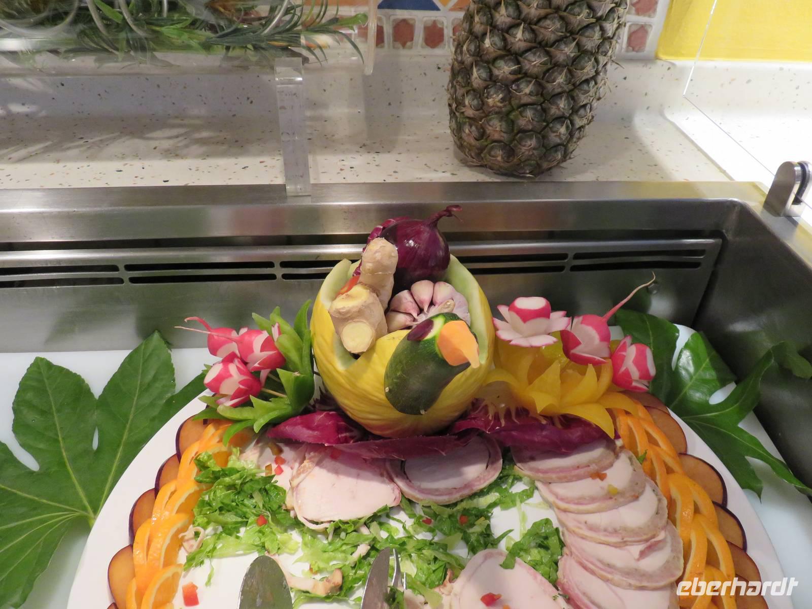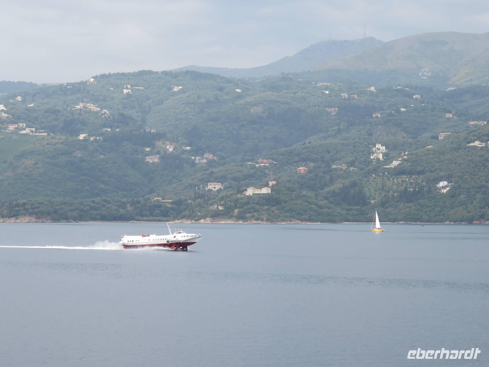 Auf der Fahrt in Richtung nach Korfu hatten wir an diesem Tag ausgiebig Gelegenheit, das reichliche Frühstück in Ruhe zu genießen, das Schiff zu erkunden, die vielfältigen Veranstaltungsangebote zu nutzen oder einfach nur zu entspannen. Die Eberhardt-Reisegruppe traf sich zum Begrüßungstreffen. Mit einem Glas Sekt wurde auf eine schöne Reise angestoßen. Anschließend tauschten wir uns über den weiteren Verlauf unserer Reise und die Möglichkeiten auf dem Schiff aus. Zum anschließenden Schiffrundgang war die Eventmanagerin des Schiffes persönlich erschienen, um uns willkommen zu heißen. Auf dem Rundgang gab eine der Fitnesstrainerinnen wertvolle Hinweise zur Nutzung der Angebote während der Reise und zu Daten und Fakten. Nach dem Mittagessen gestaltete jeder den Tag nach seinen Wünschen. Die meisten nutzten die Sonnenstrahlen für einen entspannten Aufenthalt auf dem Pooldeck. Am Abend war das Theater gut gefüllt. Kapitän Hanjo Müller begrüßte die Gäste und stellte seine wichtigsten Offiziere und den Chefkoch vor. Die Stars der AIDAvita begeisterten uns anschließend mit der Musikshow „Reif für die Insel". Anschließend gab es Gelegenheit, in der AIDA Bar, der Nightfly-Bar oder der Anytime-Bar den Live-Bands zu lauschen oder das Tanzbein zu schwingen. Ein heftiges Gewitter begleitete uns durch die Nacht.