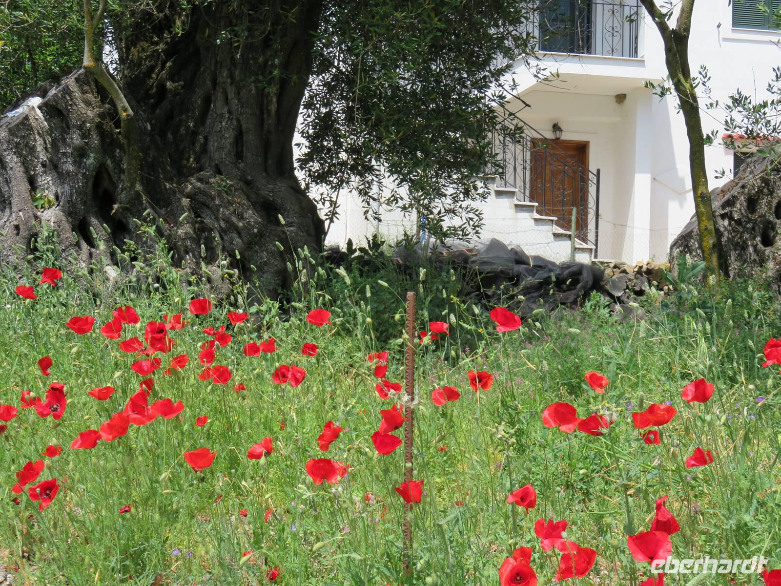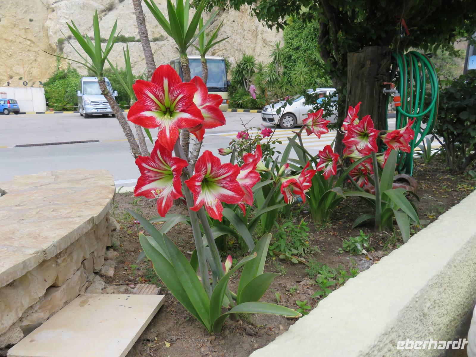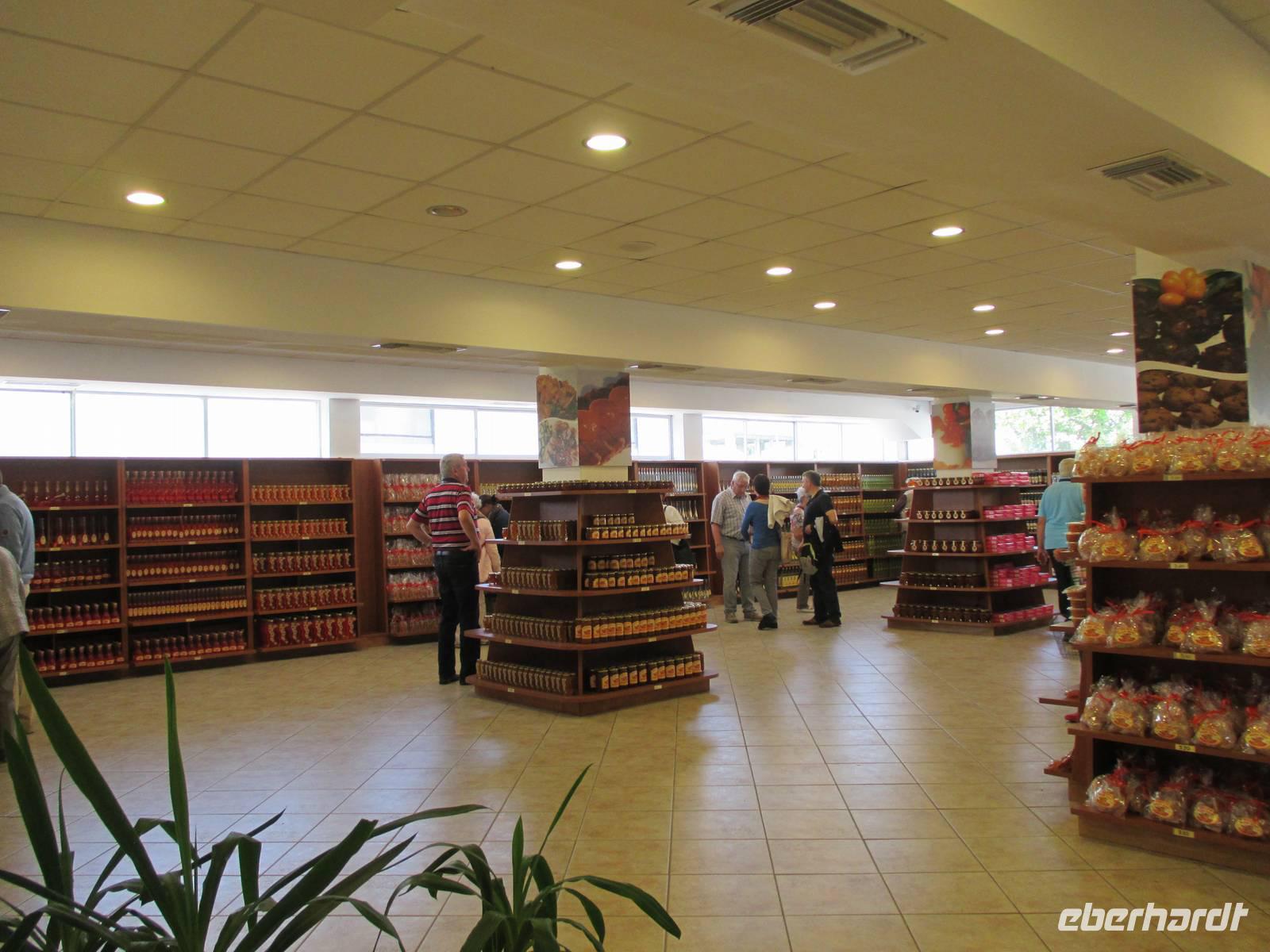 Christine Paulan begleitete eine Gruppe von Eberhardt-Gästen auf einen Ausflug zu den schönsten Aussichten der Insel. Die Fahrt ging ebenfalls zum Aussichtspunkt Bella Vista. Die Straßen in die Berge waren so schmal, dass der Chauffeur sein ganzes fahrerisches Können einsetzen musste. Anschließend besuchten wir eine Likörmanufaktur. Hier werden vor allem Kumquat-Früchte verarbeitet. Es handelt sich um kleine Orangen, die ein Seefahrer aus China nach Korfu gebracht und hier kultiviert hat. Neben den aromatischen Likören, die wir probieren durften, werden daraus auch Bonbons, Marmeladen und kandierte Früchte hergestellt. Die Fahrt ging weiter zum Aussichtspunkt Kanoni, von hier hatten wir einen Blick zur „Mäuseinsel" und zu einem kleinen Insel-Kloster. Am meisten hat uns jedoch beeindruckt, unmittelbar am Beginn der Rollbahn des Flughafens die Landung einer großen Maschine zu beobachten. Aus Platzgründen wurde die Landebahn in das Wasser gebaut, außerdem muss eine Straße gesperrt werden, wenn ein Flugzeug ankommt. Die Fahrt endete ebenfalls in Korfu-Stadt, nach einem kurzen Bummel durch die Altstadt und die Hauptkirche war auch dieser Ausflug zu Ende. Weitere mögliche Ausflüge führten zur Sissi-Villa, man konnte Wandern oder Radfahren.