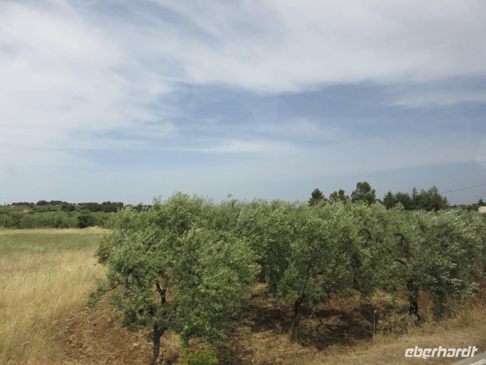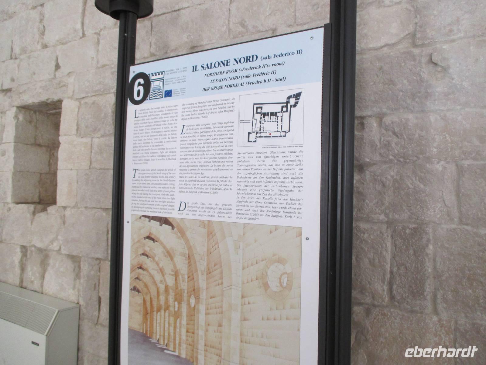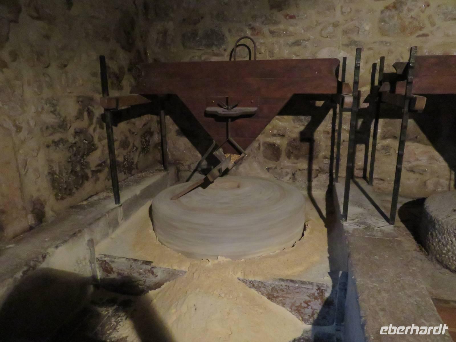 Annette Weise begleitete Eberhardt-Gäste auf einer Fahrt zur Ölmühle Galantino in Biscegli. In Apulien wird eines die besten Olivenöle hergestellt. Es gibt in Apulien 60 Millionen Olivenbäume, die bis zu 1000 Jahre und älter werden können. Ein Drittel der Weltproduktion an Olivenöl wird in Apulien hergestellt. Wir besuchten zunächst die Produktionsräume. Die Oliven werden in dieser Mühle noch ganz traditionell mit Granitmahlsteinen gemahlen. So entsteht das kalt gepresste Öl. Durch Zugabe von Basilikum, Zitrone oder Kräuter und das gleichzeitige Pressen der Oliven und der zugegebenen Früchte oder Kräuter entstehen ganz natürlich aromatisierte Öle. Wir durften sieben verschiedene Sorten verkosten und ebenfalls Oliven und Olivenpaste testen. Anschließend fand jeder noch ein Öl als Mitbringsel im Verkaufsraum. Weiter führte uns die Tour zu Krone Apuliens dem Castel del Monte. Wie eine achteckige Krone ragt das imposante Bauwerk aus der Landschaft. Kaiser Friedrichs II lies diese Residenz erbauen und bis ins 17. Jahrhundert war es bewohnt oder wurde als Gefängnis genutzt. Heute zählt es zum UNESCO-Weltkulturerbe. Wir besichtigten die ehemaligen Wohnräume und Zeugnisse der frühen Wohnkultur. Auf der Rückfahrt erzählte uns die örtliche Reiseleiterin noch die Geschichte der runden Steinhäuser, die überall in Apulien zu sehen sind. Sie wurden aus Natursteinen in Trockenbauweise erbaut und wurden als Speicher aber auch als Wohnhäuser der Bauern benutzt.