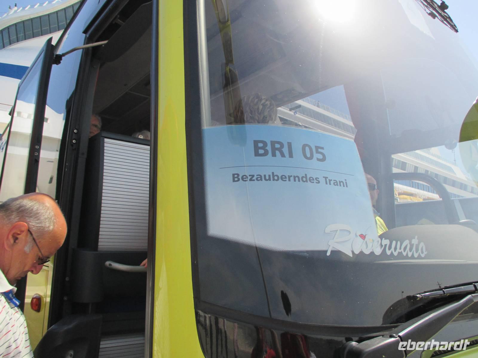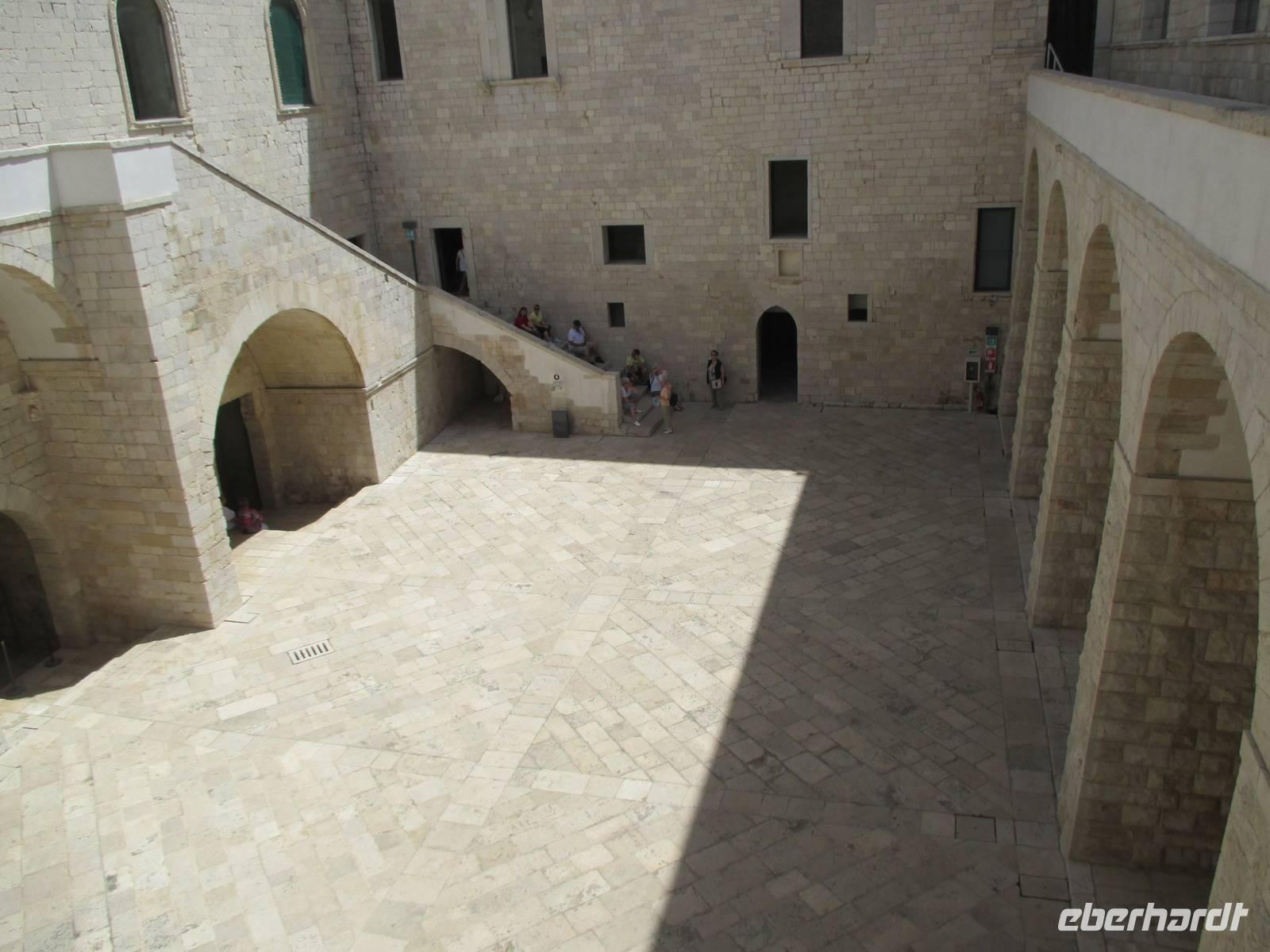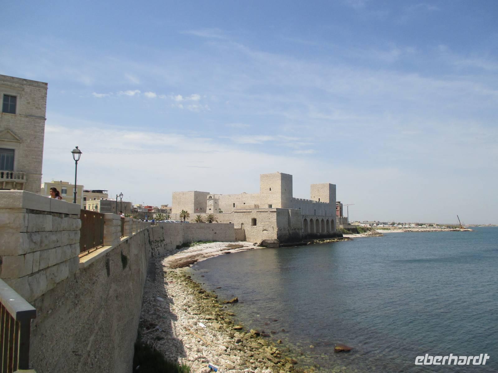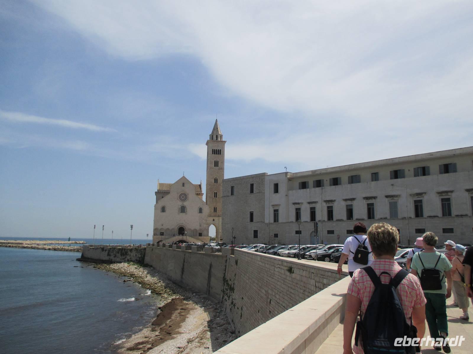 Mit Christine Paulan fuhren Gäste in das Hafenstädtchen Trani. In der imposanten romanischen Kathedrale San Nicola, des Schutzheiligen der Pilger, fand gerade eine Hochzeit statt. Das Schloss, ein ehemaliges Staufferkastell, war wenig sehenswert. Die ehemals vorhandenen Schmuckelemente wurden entweder zur Verschönerung von Schlössern in Neapel abtransportiert oder fielen der Umnutzung des Gebäudes in ein Gefängnis zum Opfer. Anschließend bleibe ein wenig Zeit für den Besuch des Fischerhafens oder für ein leckeres italienisches Eis.