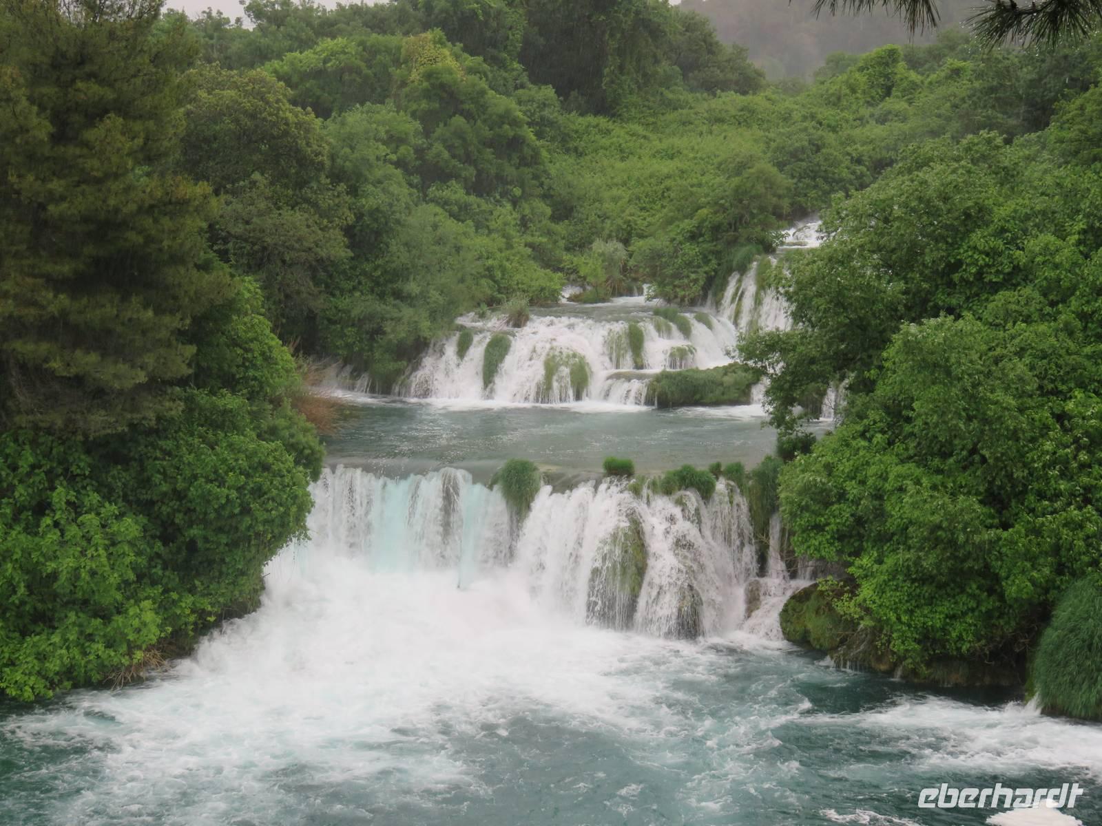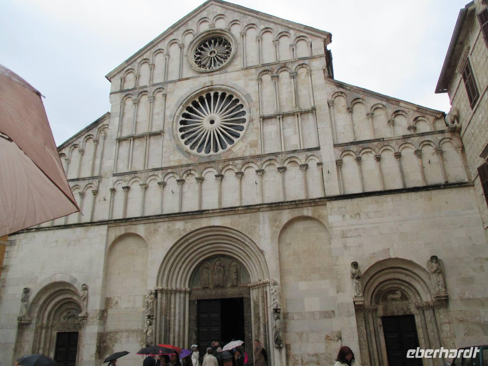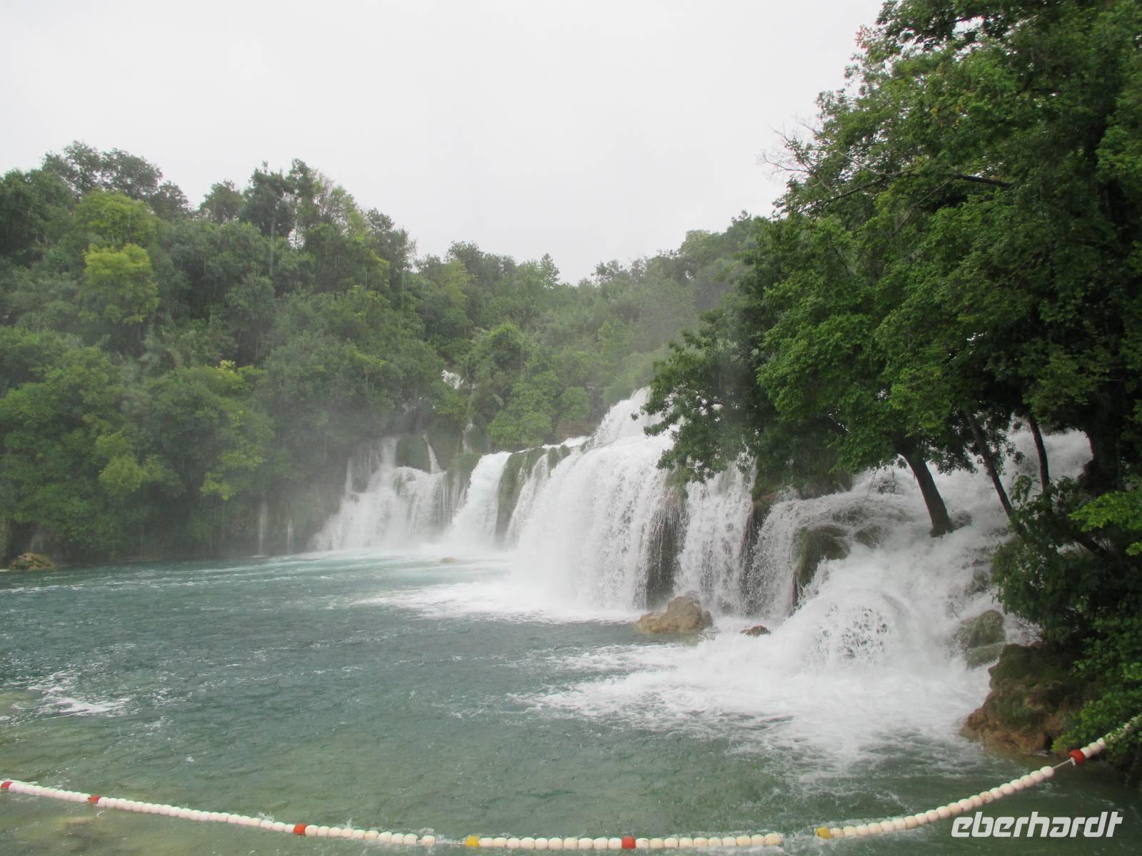 Nach einer windigen Überfahrt von Dubrovnik aus erreichten wir mit unserer AIDAvita am Vormittag die kroatische Stadt Zadar. Das Wetter hatte uns nun leider komplett im Stich gelassen, für den ganzen Tag war Regen angesagt. Unser Eberhardt-Inklusivausflug begann heute mit einem Spaziergang in die Stadt. Schon unmittelbar am Liegeplatz erwarteten uns zwei Highlights. Der „Gruß an die Sonne" ist eine moderne Installation aus Solarelementen, die abends die Uferpromenade beleuchten. Die Meeresorgel ist einmalig in der Welt. Durch die Bewegung des Wassers wird hier Luft in unterirdische Röhren gedrückt, dadurch werden über Orgelpfeifen unterschiedliche Töne erzeugt, eine einzigartige Musik entsteht. Weiter führte uns unsere Spaziergang in das städtische Museum. Vielfältige Exponate aus den vergangenen Jahrhunderten, insbesondere viele sakrale Ausstellungsstücke aus Gold und Silber, künden vom ehemaligen Reichtum der Handelsstadt Zadar und ihrer wechselvollen Geschichte. Die Nonnen des Klosters behüten und beschützemn diesen einmaligen Schatz bereits seit dem 16. Jahrhundert und er ist nie in die Hände von Feinden gefallen. Ein kurzer Besuch in der Donatuskirche und ein anschließender Gang durch die Stadt führten uns vor die Stadtmauer, von wo wir per Bus unseren Ausflug in Richtung Krka - Nationapark fortstzten. Wir stärkten uns mit einem Lunch-Paket während der Busfahrt, weil leider auf Grund des Wetters ein Picknick im Park nicht möglich war. Im Bereich des Nationalparks Wasserfälle Krka erwartete uns heftiger Regen, trotzdem nahmen wir den Spaziergang über die gut ausgebauten Wege, Treppen und Holzstege in das Herz des Nationalparks in Angriff. Die wunderschöne Natur, die besondere Tier- und Pflanzenwelt und insbesondere die Vielzahl und Vielfalt der unterschiedlichen Wasserfälle, Strudel, Flussläufe und Bäche war beeindruckend. Manchmal dachten wir, dass doch Winnetou gleich um die Ecke kommen müsste, denn die berühmten Filme wurden uneter anderem im Nationalpark gedreht. Leider konnten wir das alles nicht so ausgiebig genießen, da inzwischen wohl jeder irgendwie und irgendwo nass war. Auf der AIDAvita angekommen, klarte wie zum Spott der Himmel etwas auf und es schien sogar zum Auslaufen noch kurzzeitig die Sonne. Auch das Programm auf dem Schiff musste sich dem Wetter anpassen. Eigentlich auf dem Pooldeck geplant, erlebten wir die Ansprache des Kapitäns und die Verabschideung der Crew im Theater. Harald, der Generalmanger und Annett, die Enertaint-Managerin päsentierten uns einige interessante Zahlen, was wir gemeinsam mit den anderen Gästen der AIDAvita in der einen Woche in Restaurants verspeist hatten: unter anderem 6 Tonnen Fleisch, 7 Tonnen Obst und Gemüse und 7.000 Liter Wein. Die Show „In the Jingle" begeisterte uns anschließend im Theater. Gleichwohl tat das der Stimmung auf dem Schiff keinen Abbruch.