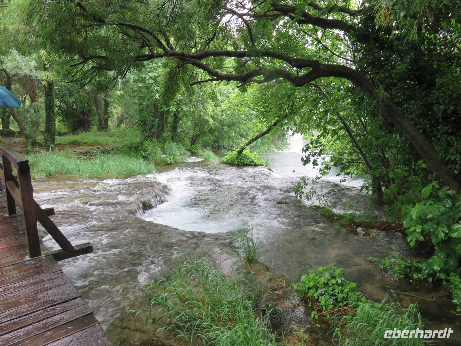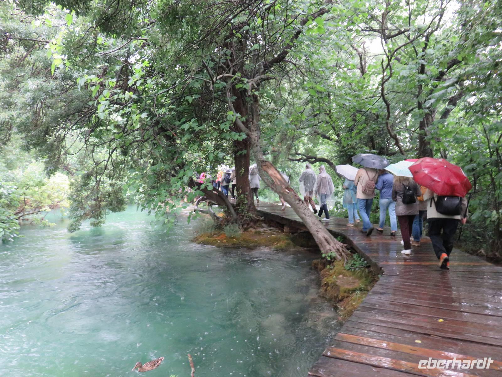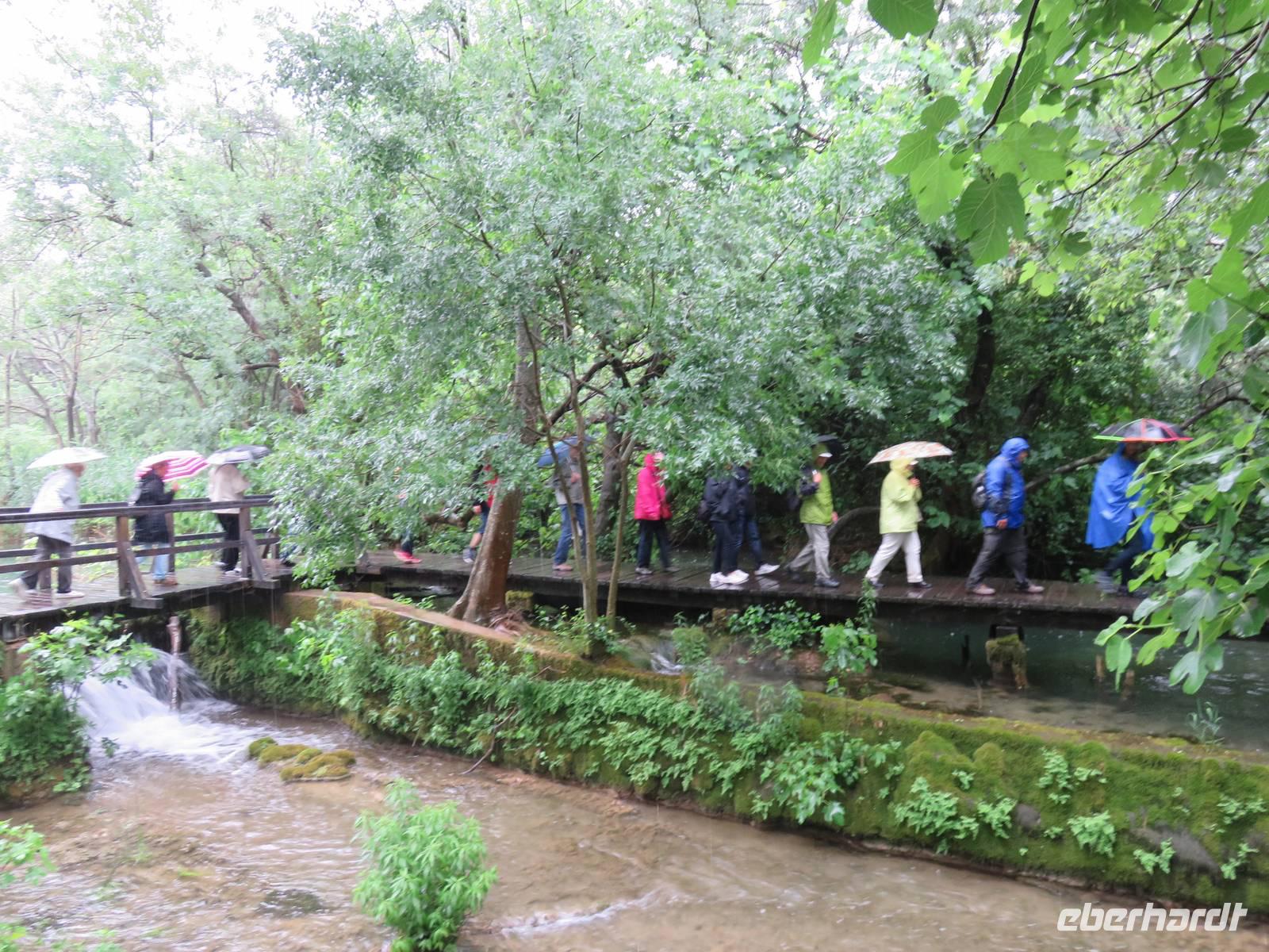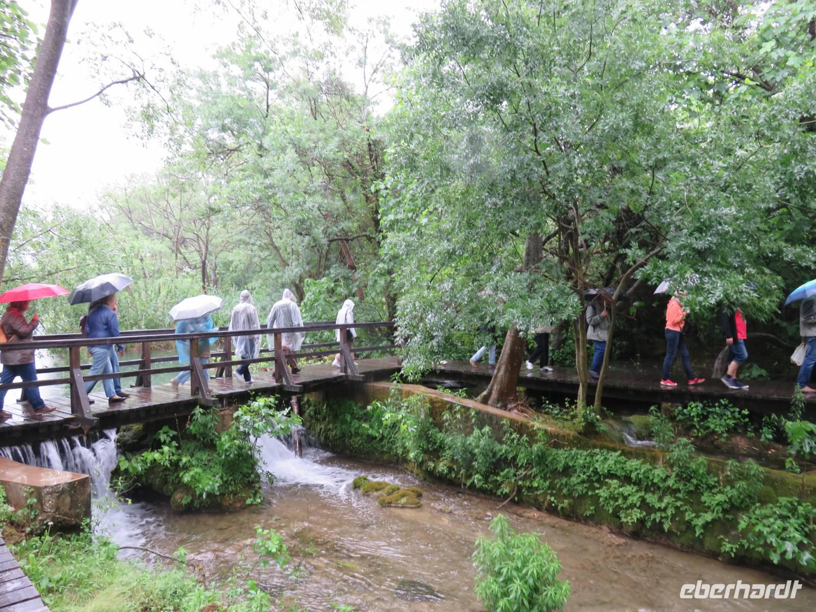 Nach einer windigen Überfahrt von Dubrovnik aus erreichten wir mit unserer AIDAvita am Vormittag die kroatische Stadt Zadar. Das Wetter hatte uns nun leider komplett im Stich gelassen, für den ganzen Tag war Regen angesagt. Unser Eberhardt-Inklusivausflug begann heute mit einem Spaziergang in die Stadt. Schon unmittelbar am Liegeplatz erwarteten uns zwei Highlights. Der „Gruß an die Sonne" ist eine moderne Installation aus Solarelementen, die abends die Uferpromenade beleuchten. Die Meeresorgel ist einmalig in der Welt. Durch die Bewegung des Wassers wird hier Luft in unterirdische Röhren gedrückt, dadurch werden über Orgelpfeifen unterschiedliche Töne erzeugt, eine einzigartige Musik entsteht. Weiter führte uns unsere Spaziergang in das städtische Museum. Vielfältige Exponate aus den vergangenen Jahrhunderten, insbesondere viele sakrale Ausstellungsstücke aus Gold und Silber, künden vom ehemaligen Reichtum der Handelsstadt Zadar und ihrer wechselvollen Geschichte. Die Nonnen des Klosters behüten und beschützemn diesen einmaligen Schatz bereits seit dem 16. Jahrhundert und er ist nie in die Hände von Feinden gefallen. Ein kurzer Besuch in der Donatuskirche und ein anschließender Gang durch die Stadt führten uns vor die Stadtmauer, von wo wir per Bus unseren Ausflug in Richtung Krka - Nationapark fortstzten. Wir stärkten uns mit einem Lunch-Paket während der Busfahrt, weil leider auf Grund des Wetters ein Picknick im Park nicht möglich war. Im Bereich des Nationalparks Wasserfälle Krka erwartete uns heftiger Regen, trotzdem nahmen wir den Spaziergang über die gut ausgebauten Wege, Treppen und Holzstege in das Herz des Nationalparks in Angriff. Die wunderschöne Natur, die besondere Tier- und Pflanzenwelt und insbesondere die Vielzahl und Vielfalt der unterschiedlichen Wasserfälle, Strudel, Flussläufe und Bäche war beeindruckend. Manchmal dachten wir, dass doch Winnetou gleich um die Ecke kommen müsste, denn die berühmten Filme wurden uneter anderem im Nationalpark gedreht. Leider konnten wir das alles nicht so ausgiebig genießen, da inzwischen wohl jeder irgendwie und irgendwo nass war. Auf der AIDAvita angekommen, klarte wie zum Spott der Himmel etwas auf und es schien sogar zum Auslaufen noch kurzzeitig die Sonne. Auch das Programm auf dem Schiff musste sich dem Wetter anpassen. Eigentlich auf dem Pooldeck geplant, erlebten wir die Ansprache des Kapitäns und die Verabschideung der Crew im Theater. Harald, der Generalmanger und Annett, die Enertaint-Managerin päsentierten uns einige interessante Zahlen, was wir gemeinsam mit den anderen Gästen der AIDAvita in der einen Woche in Restaurants verspeist hatten: unter anderem 6 Tonnen Fleisch, 7 Tonnen Obst und Gemüse und 7.000 Liter Wein. Die Show „In the Jingle" begeisterte uns anschließend im Theater. Gleichwohl tat das der Stimmung auf dem Schiff keinen Abbruch.