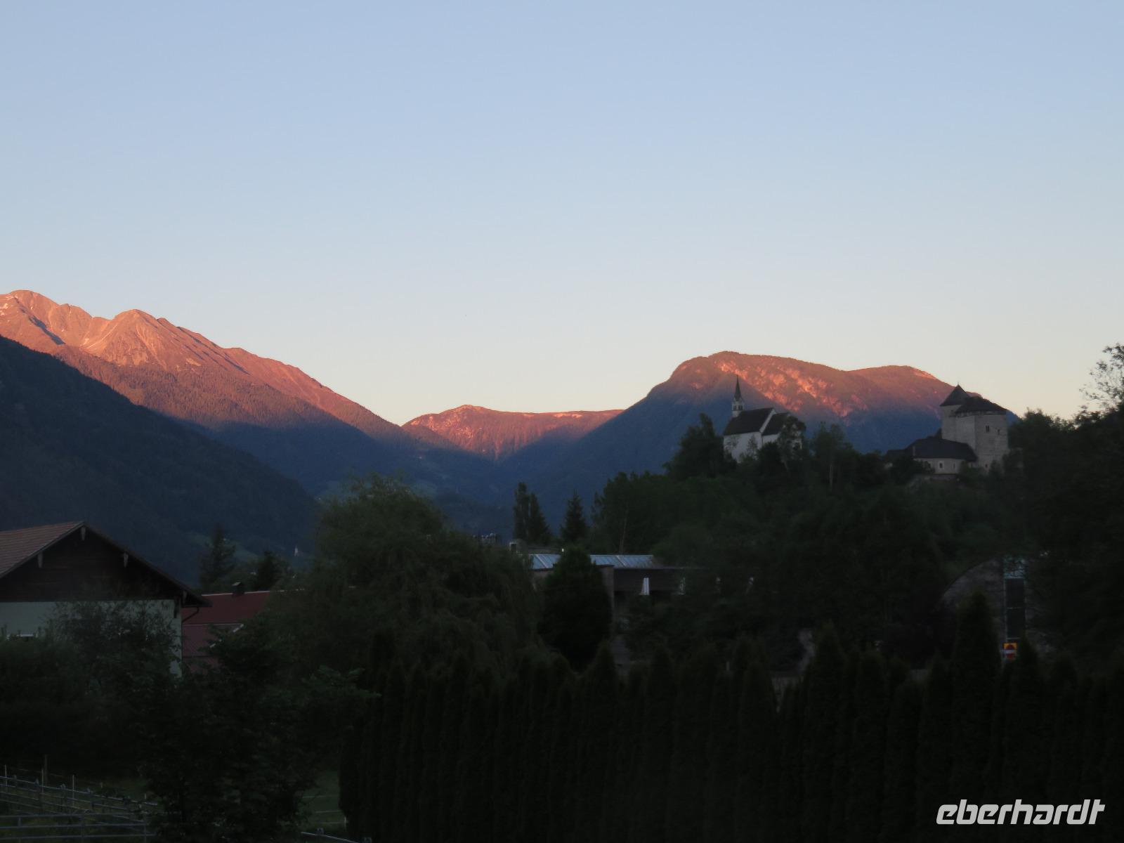 Bei schönstem Wetter, strahlend blauem Himmel, starteten wir voller Vorfreude auf eine Kreuzfahrt im Östlichen Mittelmeer unsere Busanreise nach Venedig. Alle Gäste erreichten pünktlich mit dem Transfer-Service die Zustiegsorte. Ab dem Autohof Münchberg-Nord war unsere Gruppe mit 30 Seefahrern auf Zeit komplett. Unsere Route führte uns durch Franken, durch die Hopfenanbauregion der Holledau, vorbei an München zur Grenze nach Österreich. Hier fuhren wir durch das Inntal vorbei an der Feste Kufstein, an Wattens und Schwaz, mit einem Blick auf die Altstadt von Insbruck, durch den Bergisel, über die Europabrücke schließlich zu einem der ältesten Passüberquerungen der Alpen, dem Brenner. In Sterzing, in einem Autohof, beendeten wir unsere Drei-Länder-Reise: Deutschland - Österreich - Italien. Nur die Anfahrt zum Hotel gestaltete sich etwas schwierig. Im 3-Sterne-Hotel Brenner war alles bestens für unsere Zwischenübernachtung vorbereitet: klein und fein kann man nur sagen. Ein langer Tag lag hinter uns und so freuten wir uns auf das Abendessen. Nach Selbstbedienung am Salatbuffet, alles frisch und knackig, wurde uns ein 3-Gang-Menü serviert: Fädlesuppe, die historische Brücke zu Österreich lässt grüßen, Rahmschnitzel mit Kartoffelbrei und Brokkoli, zum Abschluss ein Schokotörtchen auf Fruchtspiegel, lecker ... Wer wollte, konnte Nachschlag erhalten. Anschließend blieb in der Abendsonne etwas Zeit zu einem kleinen Spaziergang ... die Berge präsentierten sich prächtig mit einem Alpenglühen: ein Schauspiel der Natur.