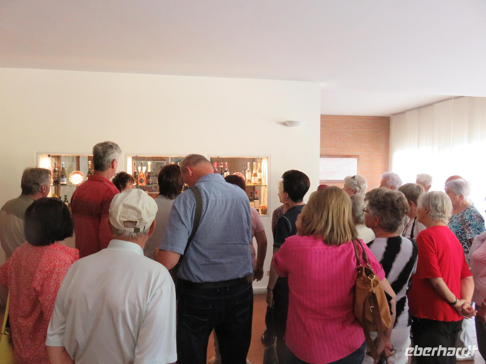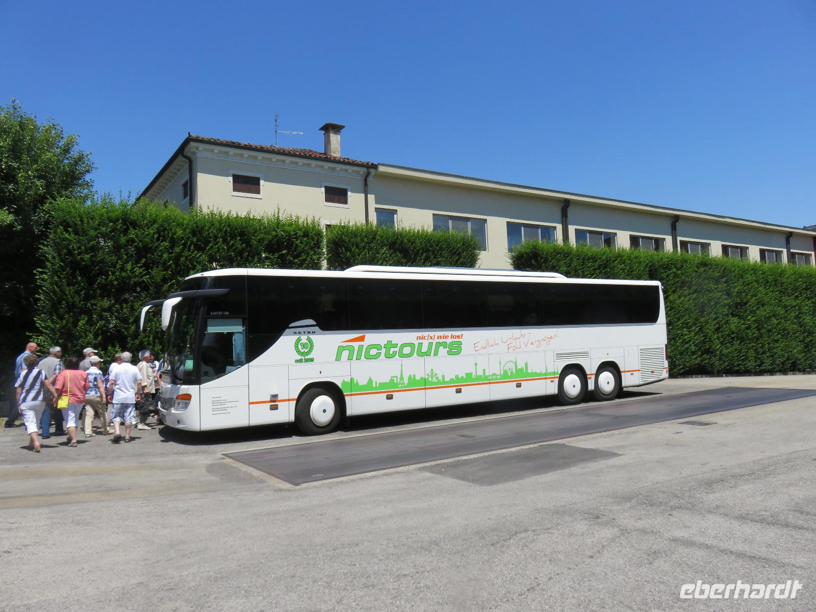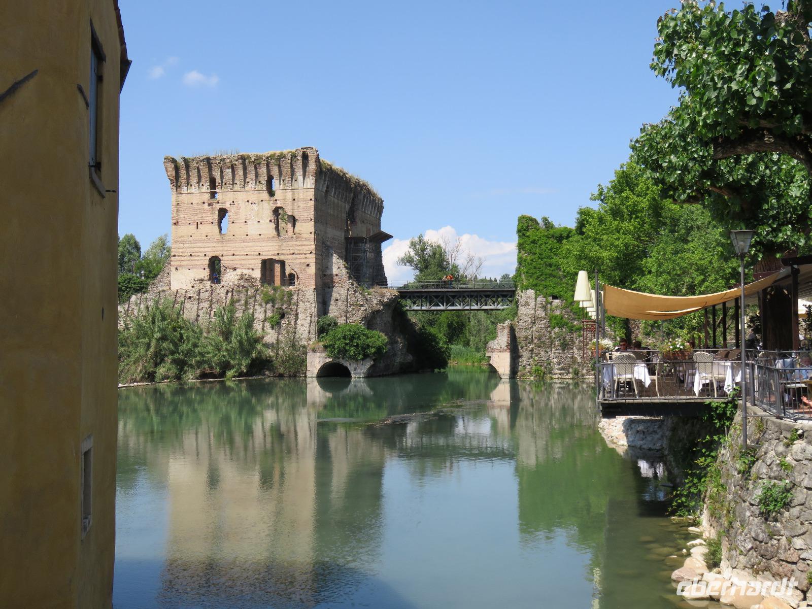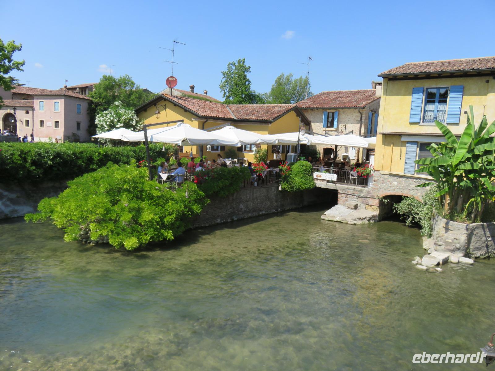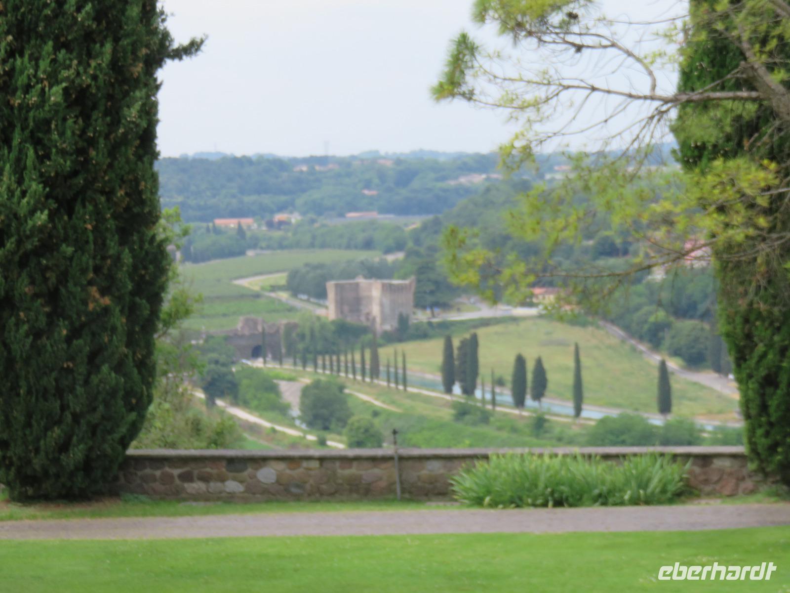 Der Parco Sigurtà, ein wunderschöner Landschaftgarten, begeisterte uns während unserer Fahrt mit einem Elektrozug durch seine unterschiedlichen Bereiche: Große Wiese, Kräutergarten, Wildgehege, Rosenallee und Seerosenbecken. Es war ein Fest der Sinne. Nach etwas Zeit für individuelle Besichtigungen fuhren wir nach Borghetto am Mincio. Zuerst bestaunten wir die 600 Meter lange Visconti-Brücke, die auch heute intakt ist. Kaum zu glauben, dass diese zu Beginn des 15. Jahrhunderts in nur acht Monaten erbaut wurde. In dem kleinen Mühlenort nutzten wir die Freizeit zum Bummeln. Die kleine Restaurants, Cafés und Pizzarien luden uns zum Mittagessen ein.