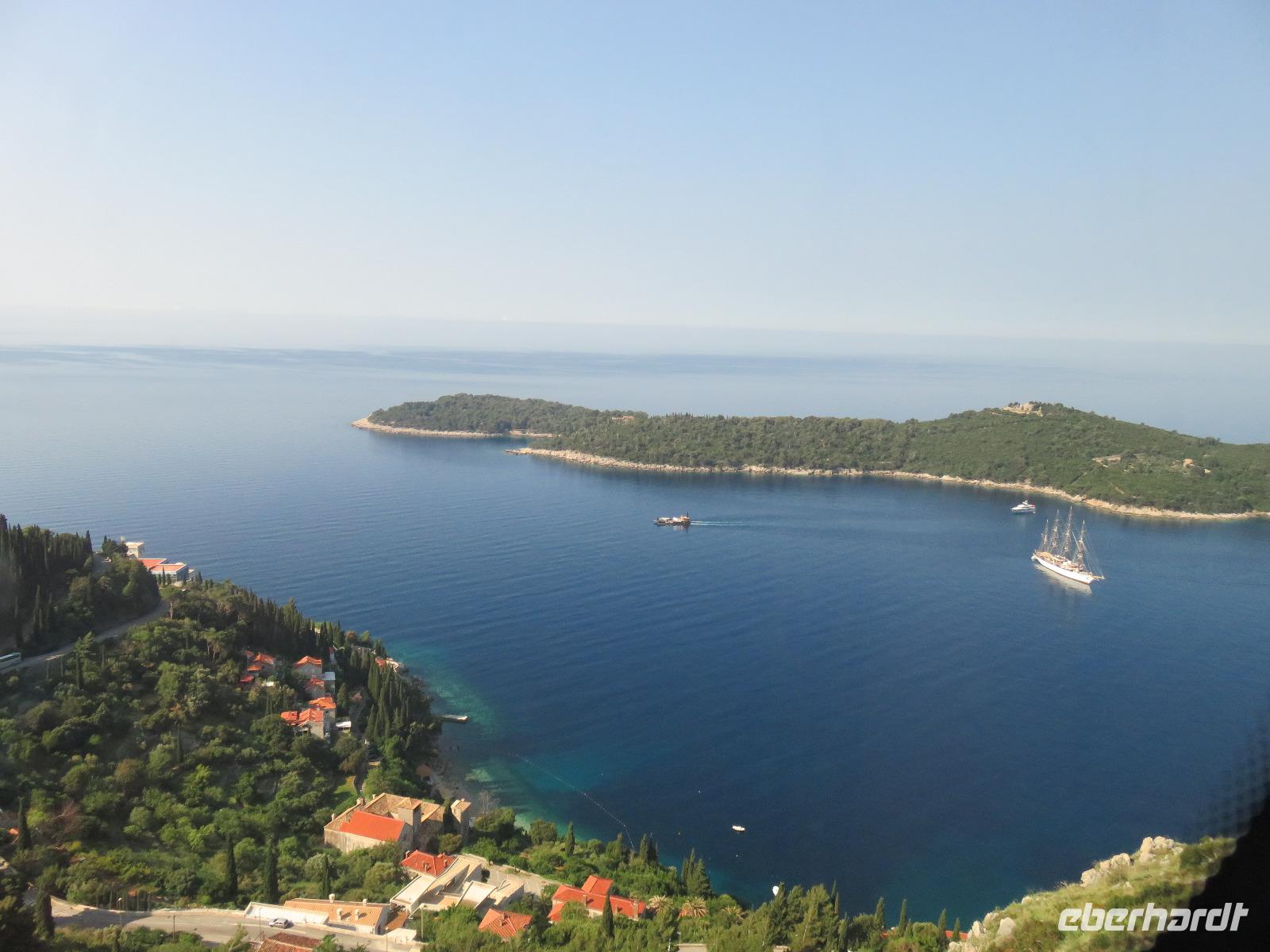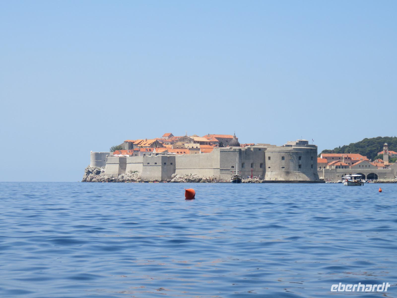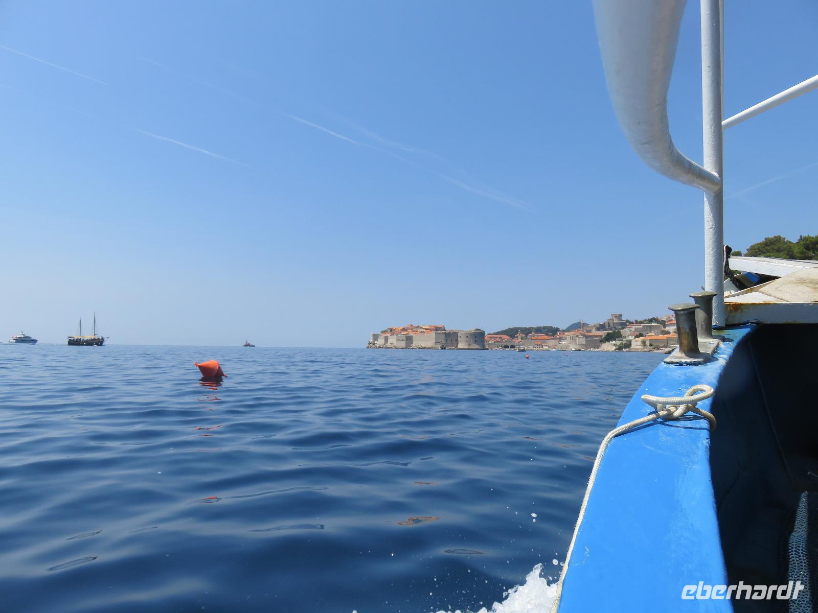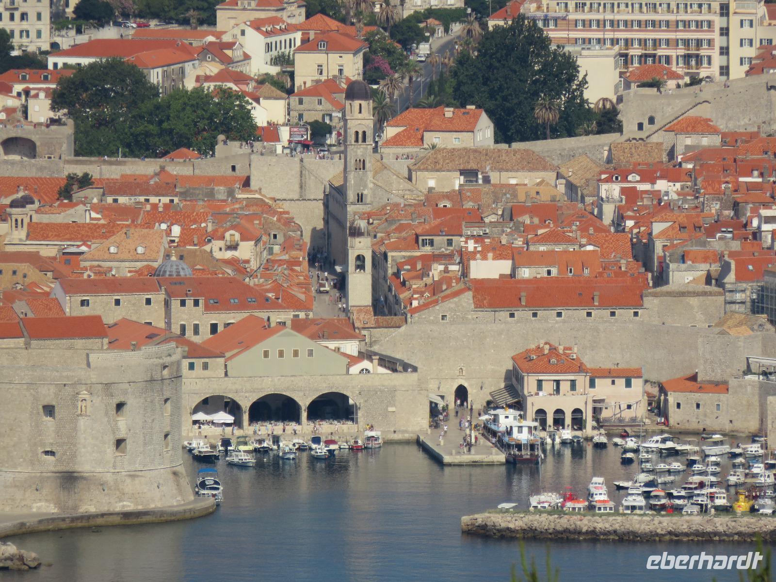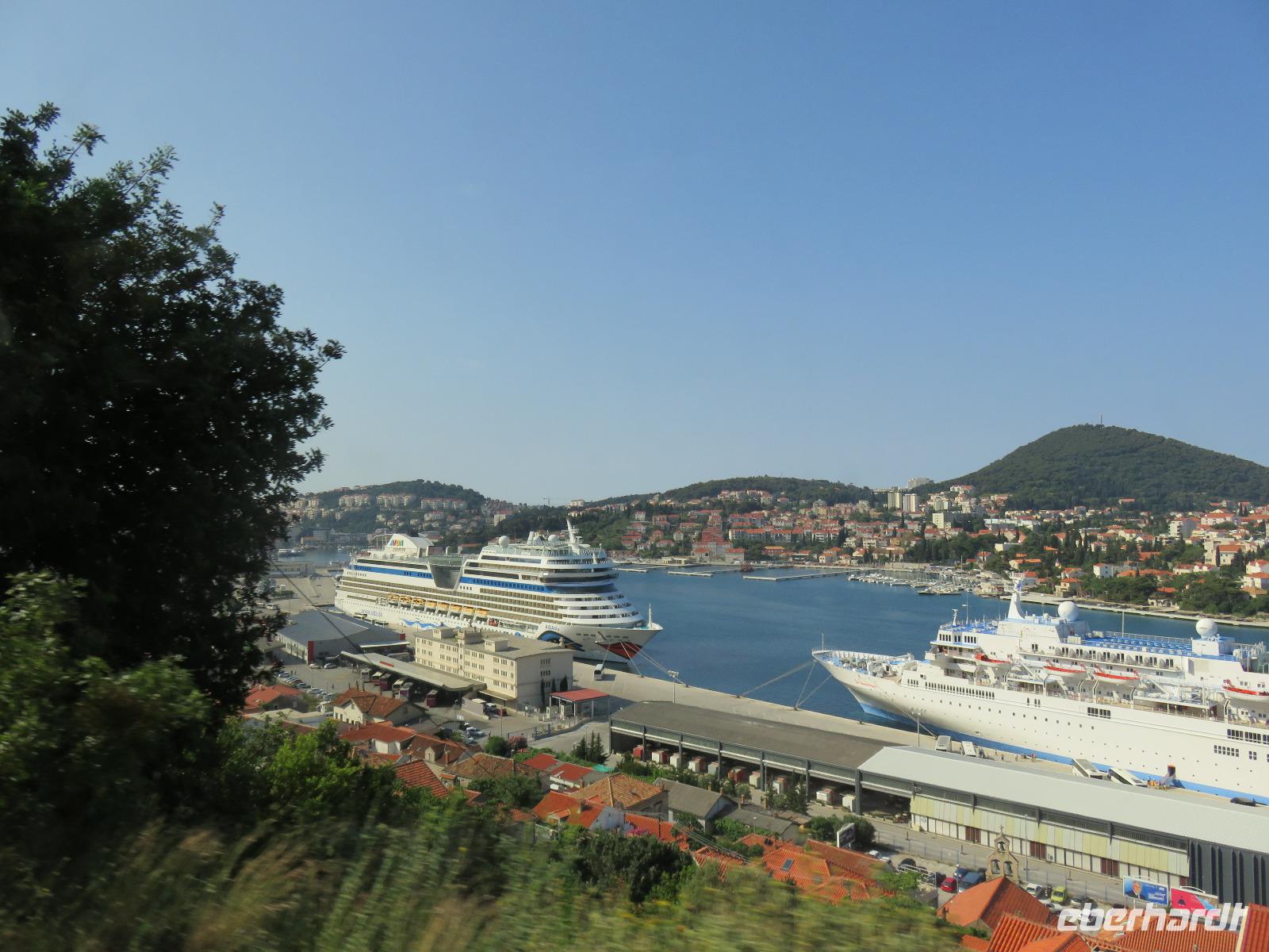 Erneut hatten wir über Nacht von Italien quer über die Adria gekreuzt und erreichten den Hafen von Dubrovnik. Die Sonne strahlte vom wolkenlosen Himmel und so starteten wir sofort nach dem Frühstück zu unserem Eberhardt-Inklusiv-Ausflug. Unsere örtliche Reiseleiterin Helena begrüßte uns direkt am Kai. Wir fuhren zuerst mit dem Bus zu einem Aussichtspunkt am 412 Meter hohen Hausberg, dem Sergiusberg. In der Sonne glitzerten die frisch gedeckten, roten Ziegeldächer der Häuser der Altstadt: ein friedlicher und durch die mächtige Stadtmauer, teilweise bis zu sechs Meter dick und bis zu 25 Meter hoch, zugleich ein wehrhafter Anblick. Wenn diese Steine reden könnten, würden wir Geschichten aus dem Mittelalter, aus der Zeit der Seerepublik Ragusa, hören. So berichtete uns Helena über diese Zeit und über die Zeit der venezianischen Herrschaft. Nach einer kurzen Busfahrt begaben wir uns vom Piletor aus auf einen Spaziergang durch die Altstadt. Zuerst besuchten wir das Franziskanerkloster mit der ältesten Apotheke Europas. Hier schien die Zeit stehen geblieben zu sein. Danach lenkten wir unsere Schritte über die Hauptstraße Stradún in kleine Nebengassen und zu kleinen beschaulichen Plätzen. Wir verweilten an der Kirche des Hl. Blasius und an der Kathedrale Mariä Himmelfahrt sowie am Rektorenpalast. Natürlich besichtigten wir den kleinen, geschützten Hafen Dubrovniks, wo viele Boote im Spiel der Wellen vor Anker lagen. Helena gab uns Hinweise für unsere individuellen Besichtigungen in der anschließenden Freizeit: Spaziergang auf der fast zwei Kilometer langen Stadtmauer oder auch eine Bootstour rund um Dubrovnik. Da es die Sonne mit uns sehr gut meinte, gönnten wir uns eine Erfrischungspause in einem Lokal direkt an der Stadtmauer. Die Kellner waren schnell, sprachen uns in Deutsch an und nahmen auch den EURO an. So mussten wir nicht in KUNA umrechnen. Schnell war ein Plan gefasst: Wir lassen es geruhsam angehen und so charterten wir ein kleines Ausflugsboot für einen Teil unserer Gruppe für 10 EUR pro Person und starteten entlang der Altstadt zur Festung Lovrijenac, umrundeten die Insel Lokrum, fuhren in eine Grotte hinein ... es war einfach schön, so richtig zum Genießen. Danach blieb etwas Zeit zu einem kleinen Bummel. Pünktlich zum Ablegen waren wir wieder an Bord und erfreuten uns an der Ausfahrt aus dem Hafen entlang der kroatischen Küste. Wir hatten für diesen Tag einen weiteren wichtigen Termin. 17.30 Uhr trafen wir uns zu unserem Gruppen-Erinnerungs-Foto auf dem Pooldeck. Nicht verraten hatte ich, dass unser Kapitän Volker Baumgart und der Hotelmanager Robert Schmiel uns begrüßen werden. Es gab ein riesiges Hallo und die Überraschung war gelungen. Zudem nahm sich der Kapitän Zeit, um einige Fragen zu beantworten. Herzlichen Dank!