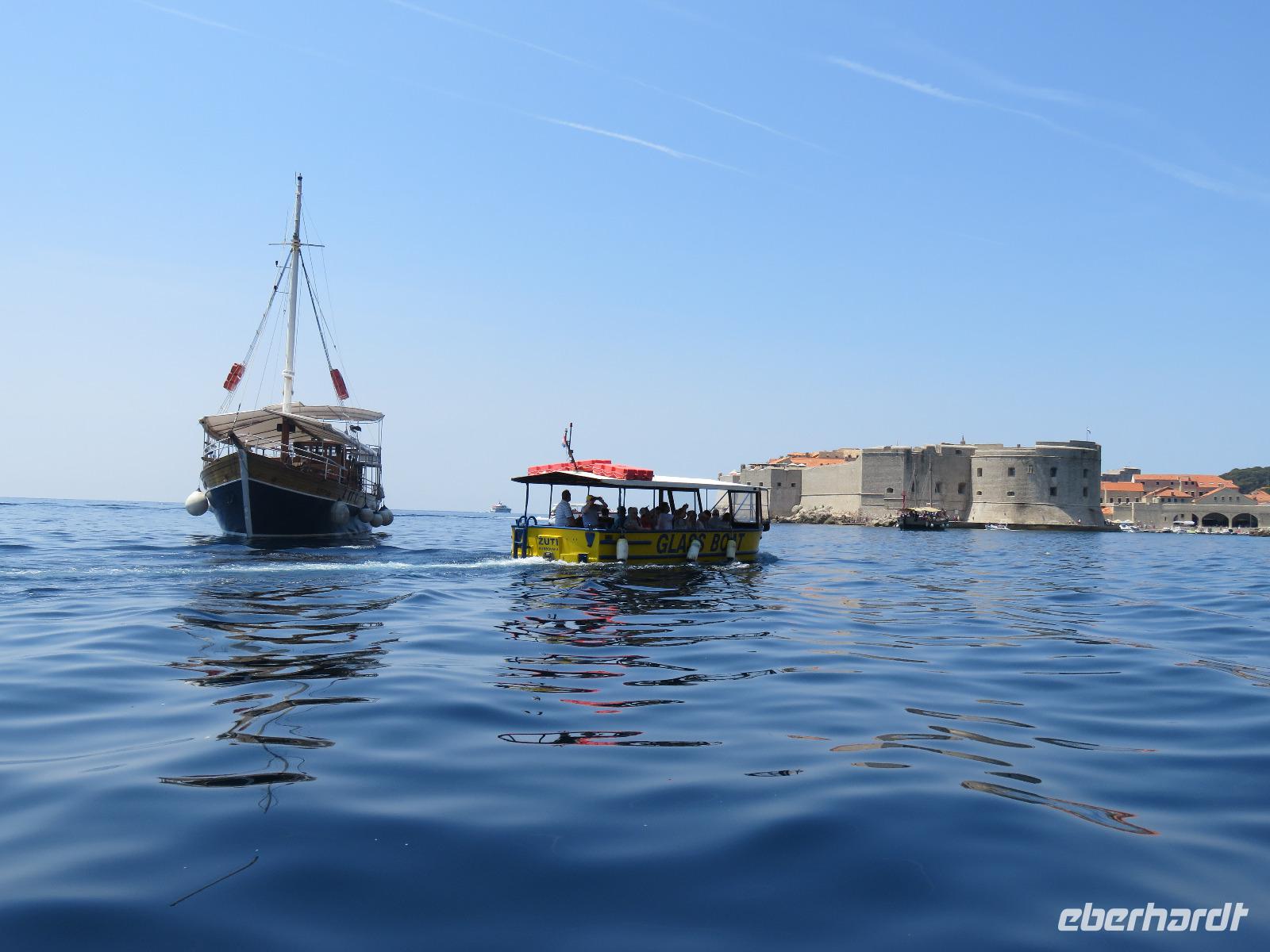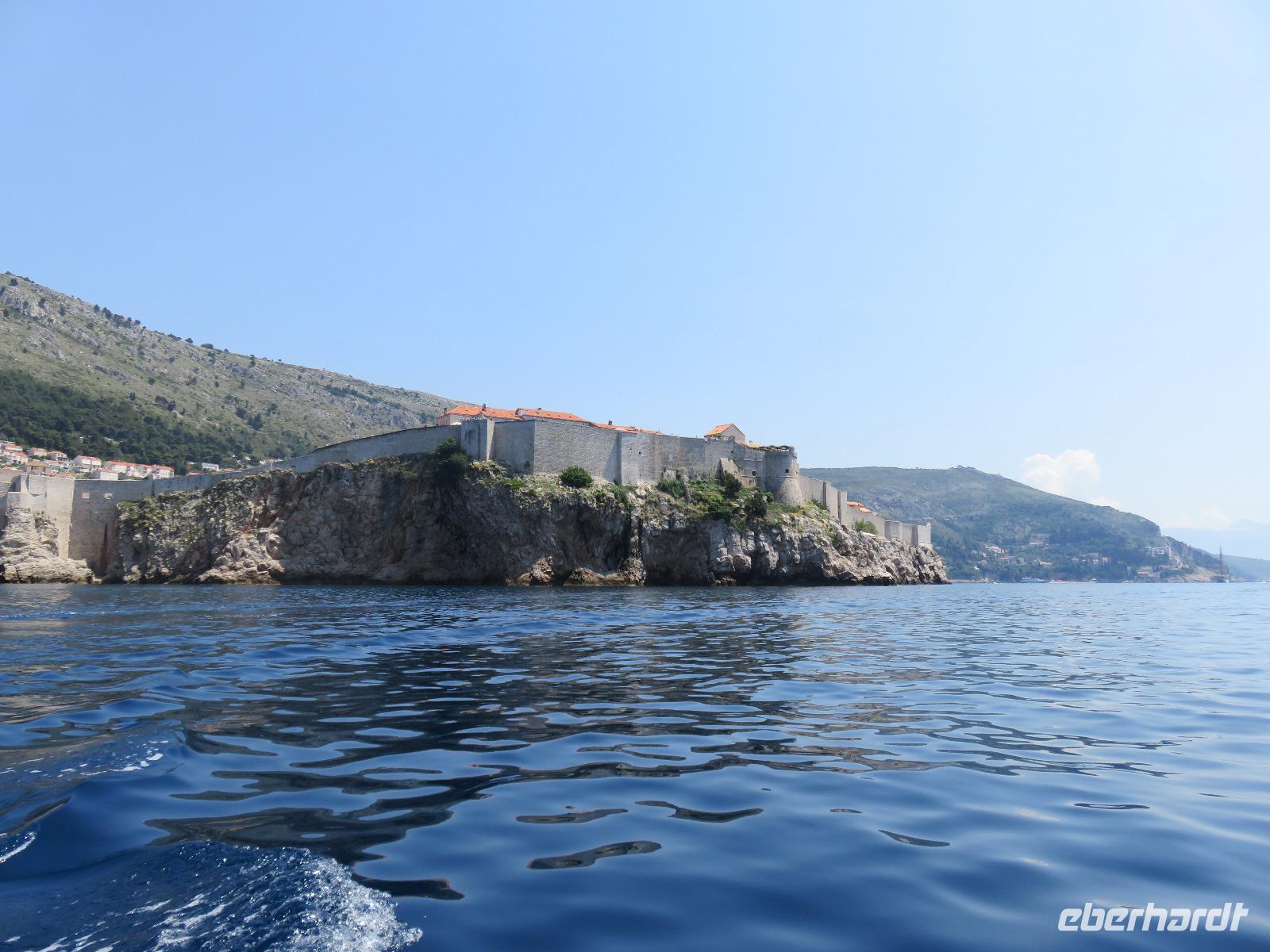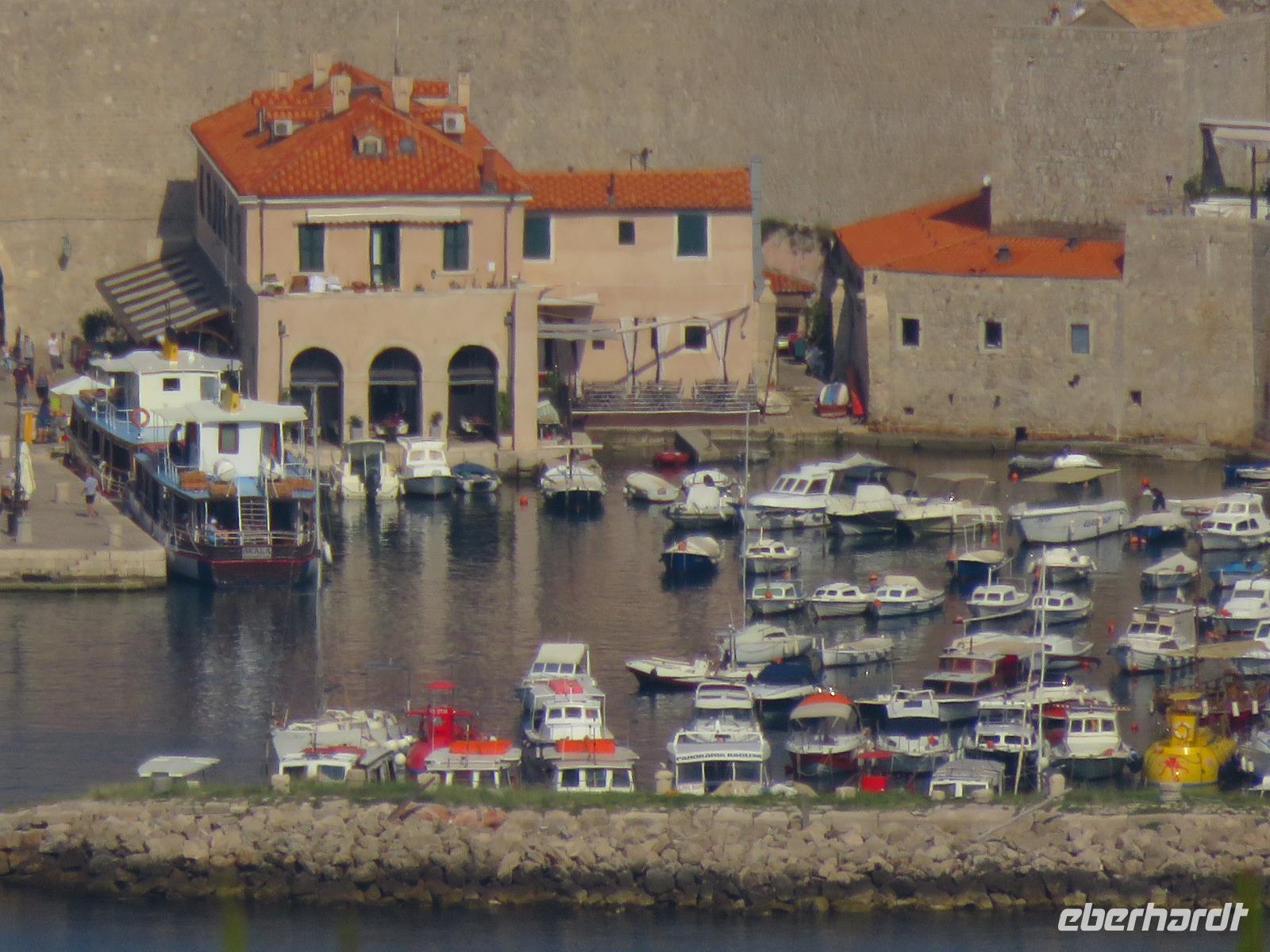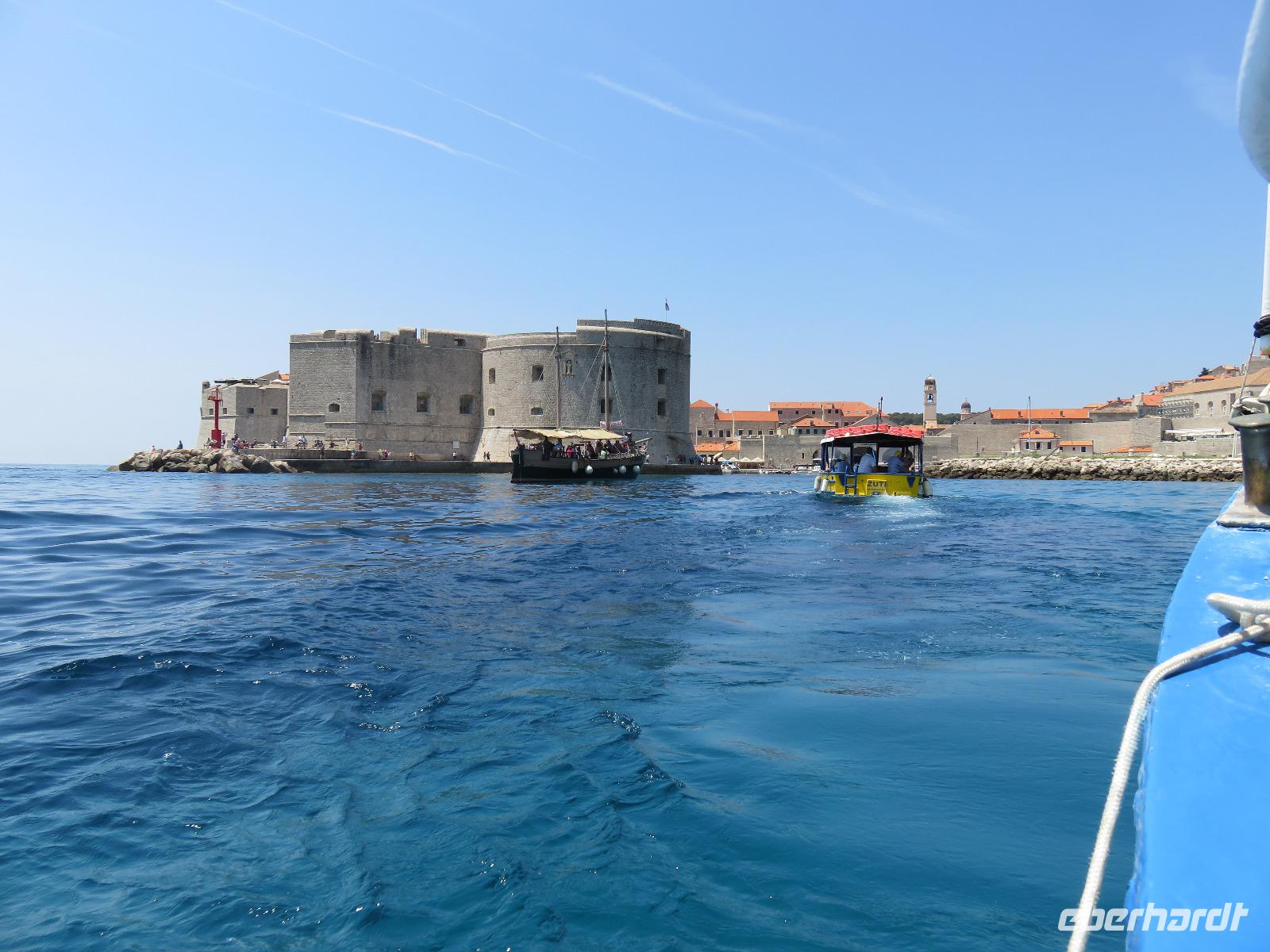 Erneut hatten wir über Nacht von Italien quer über die Adria gekreuzt und erreichten den Hafen von Dubrovnik. Die Sonne strahlte vom wolkenlosen Himmel und so starteten wir sofort nach dem Frühstück zu unserem Eberhardt-Inklusiv-Ausflug. Unsere örtliche Reiseleiterin Helena begrüßte uns direkt am Kai. Wir fuhren zuerst mit dem Bus zu einem Aussichtspunkt am 412 Meter hohen Hausberg, dem Sergiusberg. In der Sonne glitzerten die frisch gedeckten, roten Ziegeldächer der Häuser der Altstadt: ein friedlicher und durch die mächtige Stadtmauer, teilweise bis zu sechs Meter dick und bis zu 25 Meter hoch, zugleich ein wehrhafter Anblick. Wenn diese Steine reden könnten, würden wir Geschichten aus dem Mittelalter, aus der Zeit der Seerepublik Ragusa, hören. So berichtete uns Helena über diese Zeit und über die Zeit der venezianischen Herrschaft. Nach einer kurzen Busfahrt begaben wir uns vom Piletor aus auf einen Spaziergang durch die Altstadt. Zuerst besuchten wir das Franziskanerkloster mit der ältesten Apotheke Europas. Hier schien die Zeit stehen geblieben zu sein. Danach lenkten wir unsere Schritte über die Hauptstraße Stradún in kleine Nebengassen und zu kleinen beschaulichen Plätzen. Wir verweilten an der Kirche des Hl. Blasius und an der Kathedrale Mariä Himmelfahrt sowie am Rektorenpalast. Natürlich besichtigten wir den kleinen, geschützten Hafen Dubrovniks, wo viele Boote im Spiel der Wellen vor Anker lagen. Helena gab uns Hinweise für unsere individuellen Besichtigungen in der anschließenden Freizeit: Spaziergang auf der fast zwei Kilometer langen Stadtmauer oder auch eine Bootstour rund um Dubrovnik. Da es die Sonne mit uns sehr gut meinte, gönnten wir uns eine Erfrischungspause in einem Lokal direkt an der Stadtmauer. Die Kellner waren schnell, sprachen uns in Deutsch an und nahmen auch den EURO an. So mussten wir nicht in KUNA umrechnen. Schnell war ein Plan gefasst: Wir lassen es geruhsam angehen und so charterten wir ein kleines Ausflugsboot für einen Teil unserer Gruppe für 10 EUR pro Person und starteten entlang der Altstadt zur Festung Lovrijenac, umrundeten die Insel Lokrum, fuhren in eine Grotte hinein ... es war einfach schön, so richtig zum Genießen. Danach blieb etwas Zeit zu einem kleinen Bummel. Pünktlich zum Ablegen waren wir wieder an Bord und erfreuten uns an der Ausfahrt aus dem Hafen entlang der kroatischen Küste. Wir hatten für diesen Tag einen weiteren wichtigen Termin. 17.30 Uhr trafen wir uns zu unserem Gruppen-Erinnerungs-Foto auf dem Pooldeck. Nicht verraten hatte ich, dass unser Kapitän Volker Baumgart und der Hotelmanager Robert Schmiel uns begrüßen werden. Es gab ein riesiges Hallo und die Überraschung war gelungen. Zudem nahm sich der Kapitän Zeit, um einige Fragen zu beantworten. Herzlichen Dank!