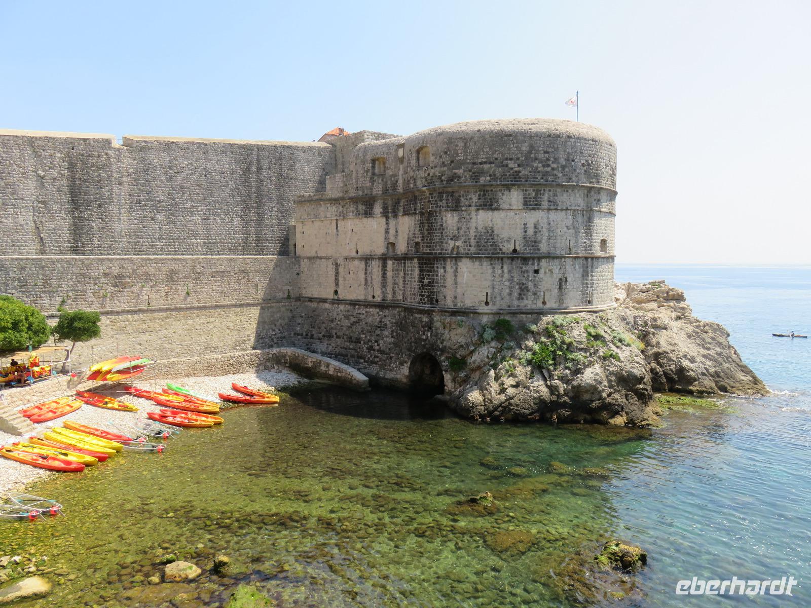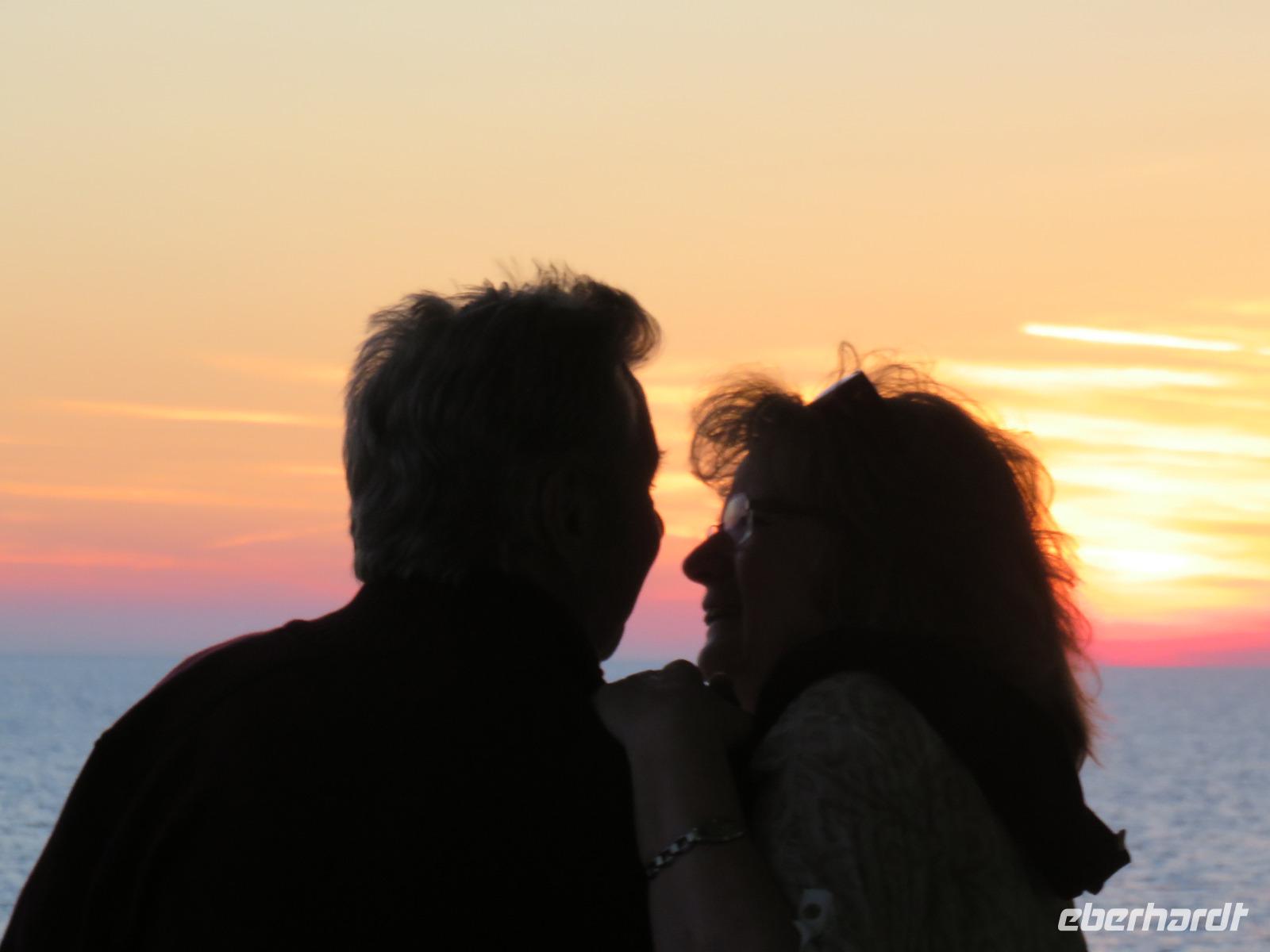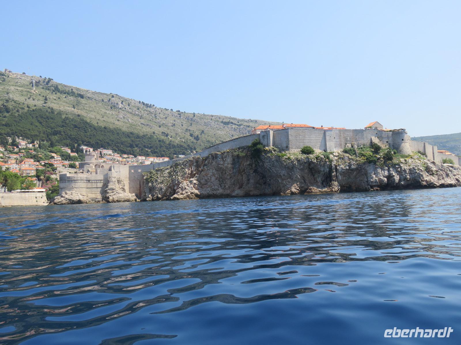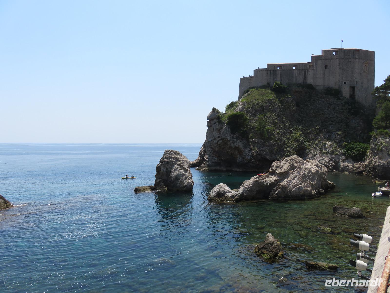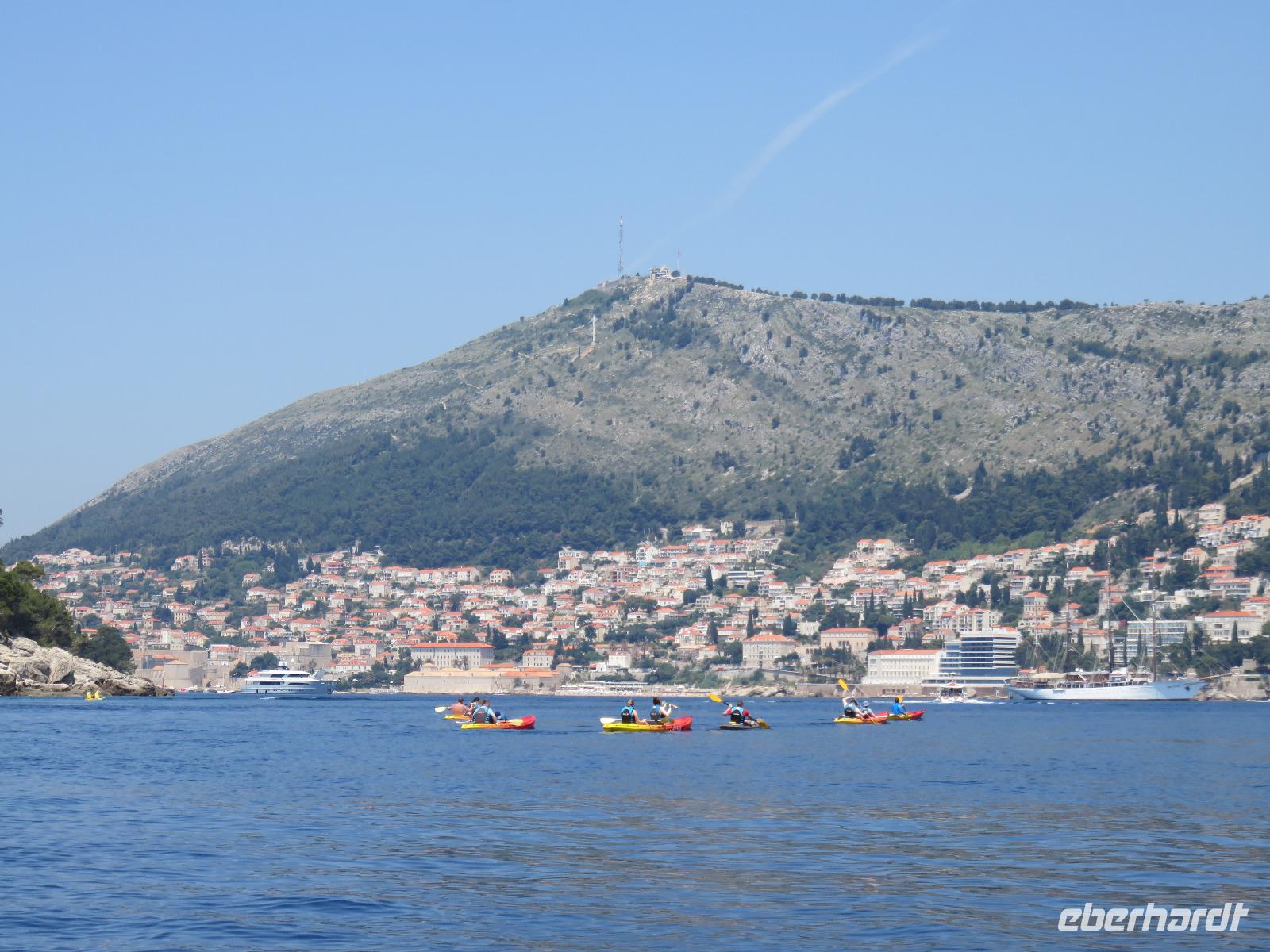 Erneut hatten wir über Nacht von Italien quer über die Adria gekreuzt und erreichten den Hafen von Dubrovnik. Die Sonne strahlte vom wolkenlosen Himmel und so starteten wir sofort nach dem Frühstück zu unserem Eberhardt-Inklusiv-Ausflug. Unsere örtliche Reiseleiterin Helena begrüßte uns direkt am Kai. Wir fuhren zuerst mit dem Bus zu einem Aussichtspunkt am 412 Meter hohen Hausberg, dem Sergiusberg. In der Sonne glitzerten die frisch gedeckten, roten Ziegeldächer der Häuser der Altstadt: ein friedlicher und durch die mächtige Stadtmauer, teilweise bis zu sechs Meter dick und bis zu 25 Meter hoch, zugleich ein wehrhafter Anblick. Wenn diese Steine reden könnten, würden wir Geschichten aus dem Mittelalter, aus der Zeit der Seerepublik Ragusa, hören. So berichtete uns Helena über diese Zeit und über die Zeit der venezianischen Herrschaft. Nach einer kurzen Busfahrt begaben wir uns vom Piletor aus auf einen Spaziergang durch die Altstadt. Zuerst besuchten wir das Franziskanerkloster mit der ältesten Apotheke Europas. Hier schien die Zeit stehen geblieben zu sein. Danach lenkten wir unsere Schritte über die Hauptstraße Stradún in kleine Nebengassen und zu kleinen beschaulichen Plätzen. Wir verweilten an der Kirche des Hl. Blasius und an der Kathedrale Mariä Himmelfahrt sowie am Rektorenpalast. Natürlich besichtigten wir den kleinen, geschützten Hafen Dubrovniks, wo viele Boote im Spiel der Wellen vor Anker lagen. Helena gab uns Hinweise für unsere individuellen Besichtigungen in der anschließenden Freizeit: Spaziergang auf der fast zwei Kilometer langen Stadtmauer oder auch eine Bootstour rund um Dubrovnik. Da es die Sonne mit uns sehr gut meinte, gönnten wir uns eine Erfrischungspause in einem Lokal direkt an der Stadtmauer. Die Kellner waren schnell, sprachen uns in Deutsch an und nahmen auch den EURO an. So mussten wir nicht in KUNA umrechnen. Schnell war ein Plan gefasst: Wir lassen es geruhsam angehen und so charterten wir ein kleines Ausflugsboot für einen Teil unserer Gruppe für 10 EUR pro Person und starteten entlang der Altstadt zur Festung Lovrijenac, umrundeten die Insel Lokrum, fuhren in eine Grotte hinein ... es war einfach schön, so richtig zum Genießen. Danach blieb etwas Zeit zu einem kleinen Bummel. Pünktlich zum Ablegen waren wir wieder an Bord und erfreuten uns an der Ausfahrt aus dem Hafen entlang der kroatischen Küste. Wir hatten für diesen Tag einen weiteren wichtigen Termin. 17.30 Uhr trafen wir uns zu unserem Gruppen-Erinnerungs-Foto auf dem Pooldeck. Nicht verraten hatte ich, dass unser Kapitän Volker Baumgart und der Hotelmanager Robert Schmiel uns begrüßen werden. Es gab ein riesiges Hallo und die Überraschung war gelungen. Zudem nahm sich der Kapitän Zeit, um einige Fragen zu beantworten. Herzlichen Dank!