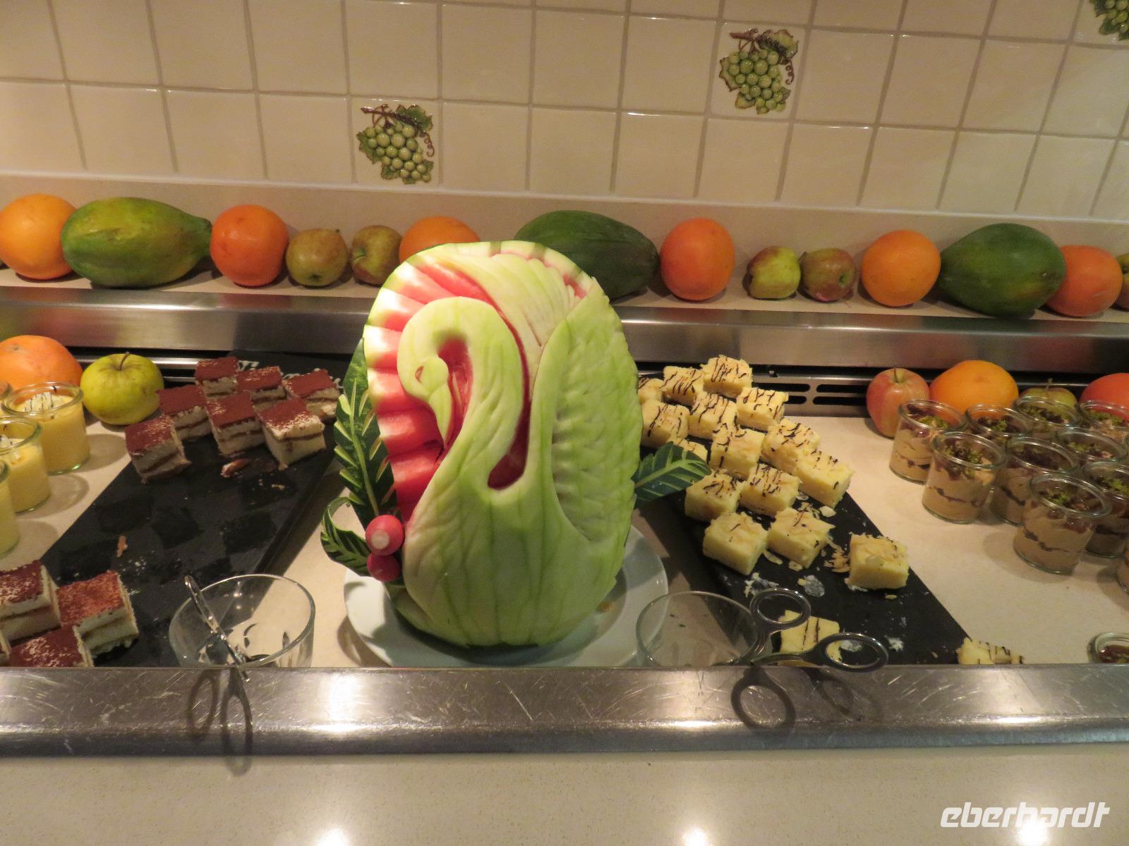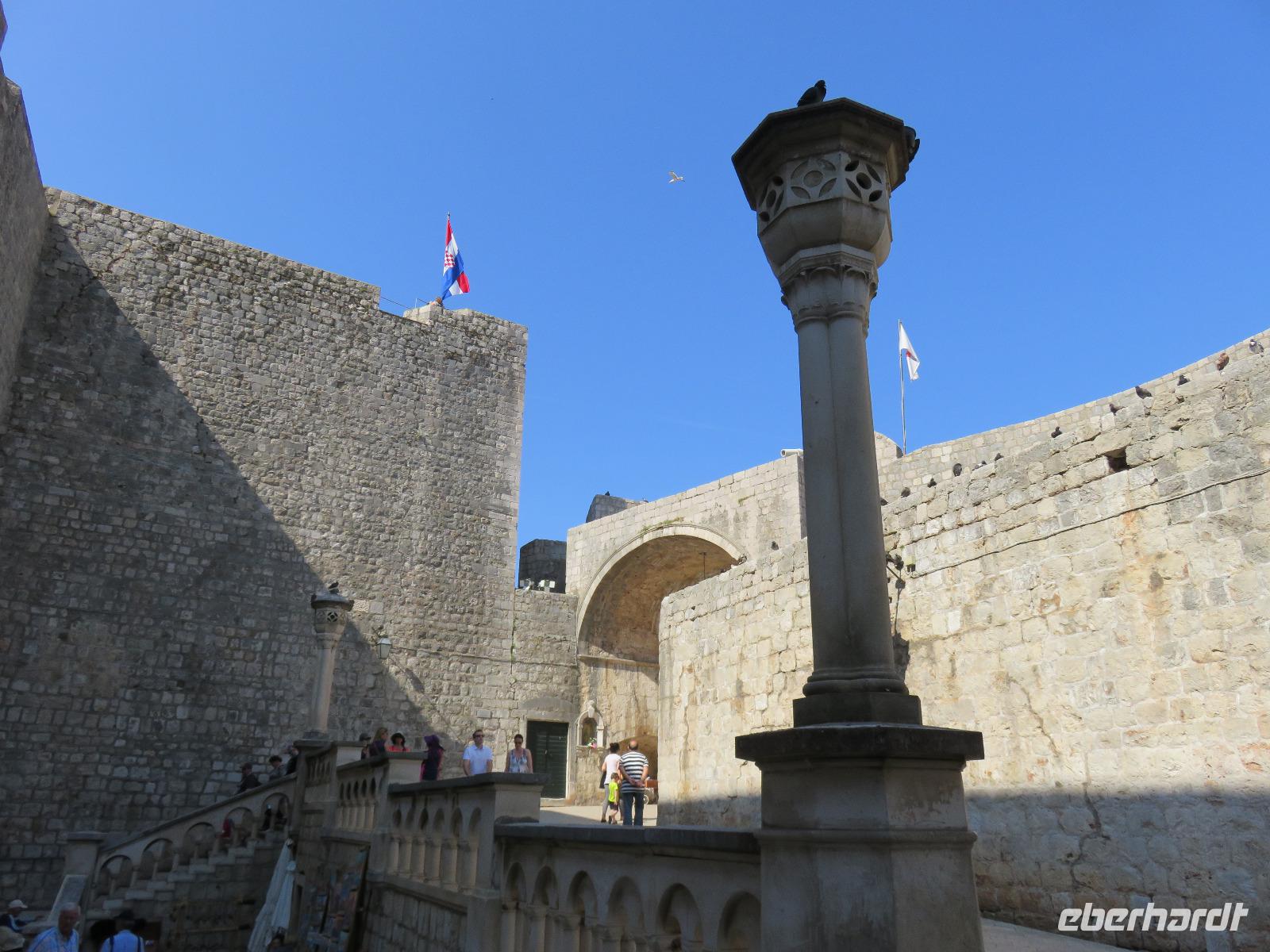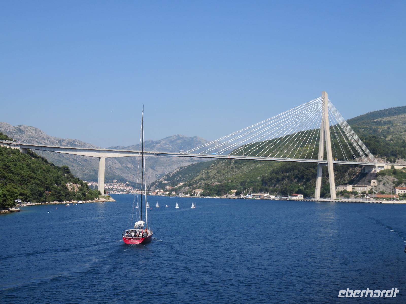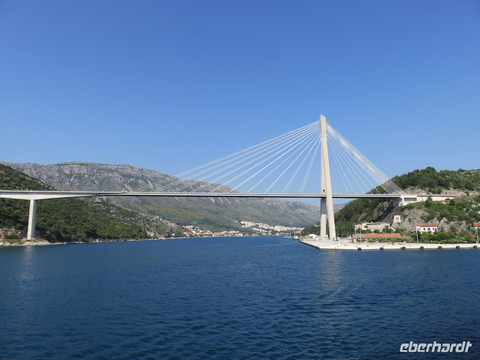Erneut hatten wir über Nacht von Italien quer über die Adria gekreuzt und erreichten den Hafen von Dubrovnik. Die Sonne strahlte vom wolkenlosen Himmel und so starteten wir sofort nach dem Frühstück zu unserem Eberhardt-Inklusiv-Ausflug. Unsere örtliche Reiseleiterin Helena begrüßte uns direkt am Kai. Wir fuhren zuerst mit dem Bus zu einem Aussichtspunkt am 412 Meter hohen Hausberg, dem Sergiusberg. In der Sonne glitzerten die frisch gedeckten, roten Ziegeldächer der Häuser der Altstadt: ein friedlicher und durch die mächtige Stadtmauer, teilweise bis zu sechs Meter dick und bis zu 25 Meter hoch, zugleich ein wehrhafter Anblick. Wenn diese Steine reden könnten, würden wir Geschichten aus dem Mittelalter, aus der Zeit der Seerepublik Ragusa, hören. So berichtete uns Helena über diese Zeit und über die Zeit der venezianischen Herrschaft. Nach einer kurzen Busfahrt begaben wir uns vom Piletor aus auf einen Spaziergang durch die Altstadt. Zuerst besuchten wir das Franziskanerkloster mit der ältesten Apotheke Europas. Hier schien die Zeit stehen geblieben zu sein. Danach lenkten wir unsere Schritte über die Hauptstraße Stradún in kleine Nebengassen und zu kleinen beschaulichen Plätzen. Wir verweilten an der Kirche des Hl. Blasius und an der Kathedrale Mariä Himmelfahrt sowie am Rektorenpalast. Natürlich besichtigten wir den kleinen, geschützten Hafen Dubrovniks, wo viele Boote im Spiel der Wellen vor Anker lagen. Helena gab uns Hinweise für unsere individuellen Besichtigungen in der anschließenden Freizeit: Spaziergang auf der fast zwei Kilometer langen Stadtmauer oder auch eine Bootstour rund um Dubrovnik. Da es die Sonne mit uns sehr gut meinte, gönnten wir uns eine Erfrischungspause in einem Lokal direkt an der Stadtmauer. Die Kellner waren schnell, sprachen uns in Deutsch an und nahmen auch den EURO an. So mussten wir nicht in KUNA umrechnen. Schnell war ein Plan gefasst: Wir lassen es geruhsam angehen und so charterten wir ein kleines Ausflugsboot für einen Teil unserer Gruppe für 10 EUR pro Person und starteten entlang der Altstadt zur Festung Lovrijenac, umrundeten die Insel Lokrum, fuhren in eine Grotte hinein ... es war einfach schön, so richtig zum Genießen. Danach blieb etwas Zeit zu einem kleinen Bummel. Pünktlich zum Ablegen waren wir wieder an Bord und erfreuten uns an der Ausfahrt aus dem Hafen entlang der kroatischen Küste. Wir hatten für diesen Tag einen weiteren wichtigen Termin. 17.30 Uhr trafen wir uns zu unserem Gruppen-Erinnerungs-Foto auf dem Pooldeck. Nicht verraten hatte ich, dass unser Kapitän Volker Baumgart und der Hotelmanager Robert Schmiel uns begrüßen werden. Es gab ein riesiges Hallo und die Überraschung war gelungen. Zudem nahm sich der Kapitän Zeit, um einige Fragen zu beantworten. Herzlichen Dank!