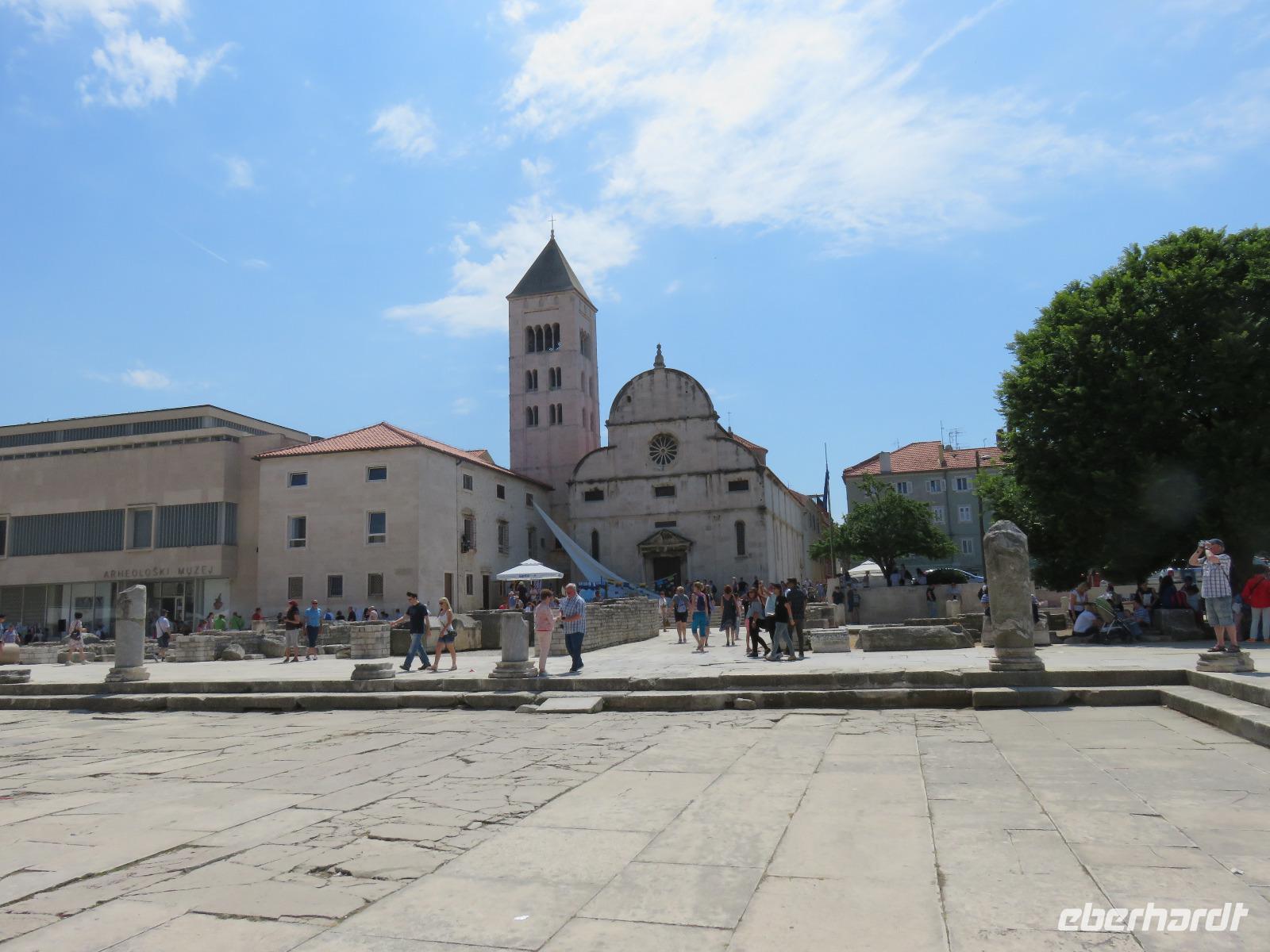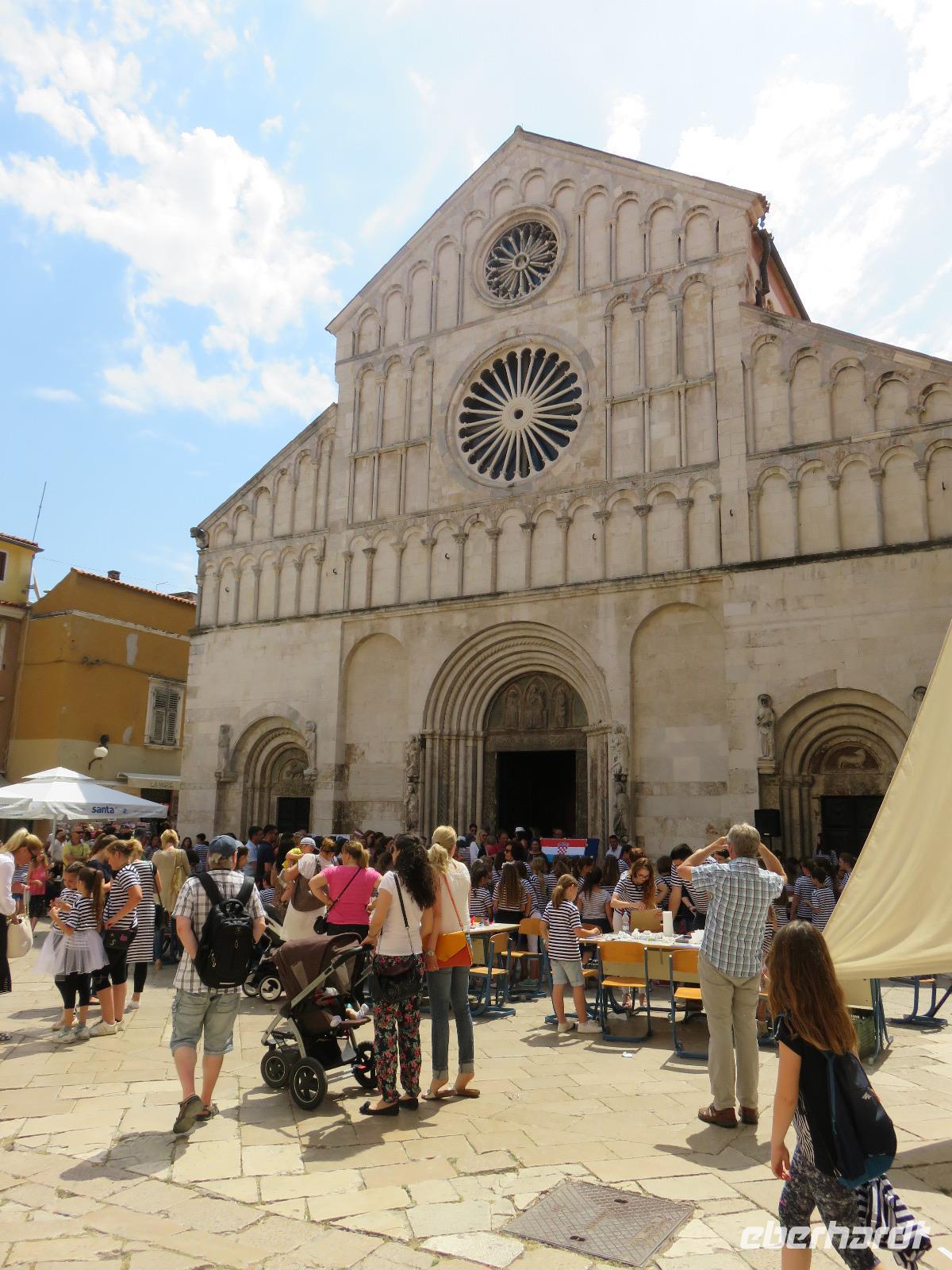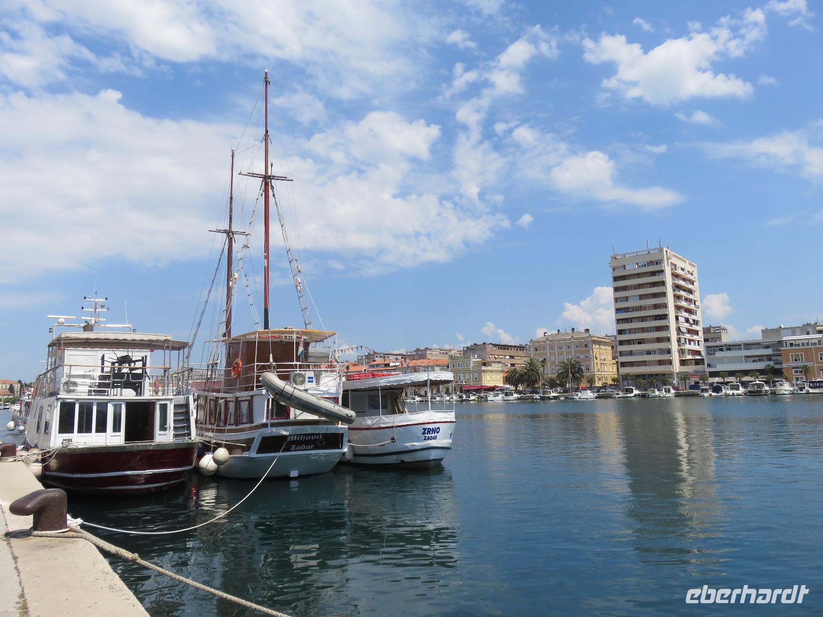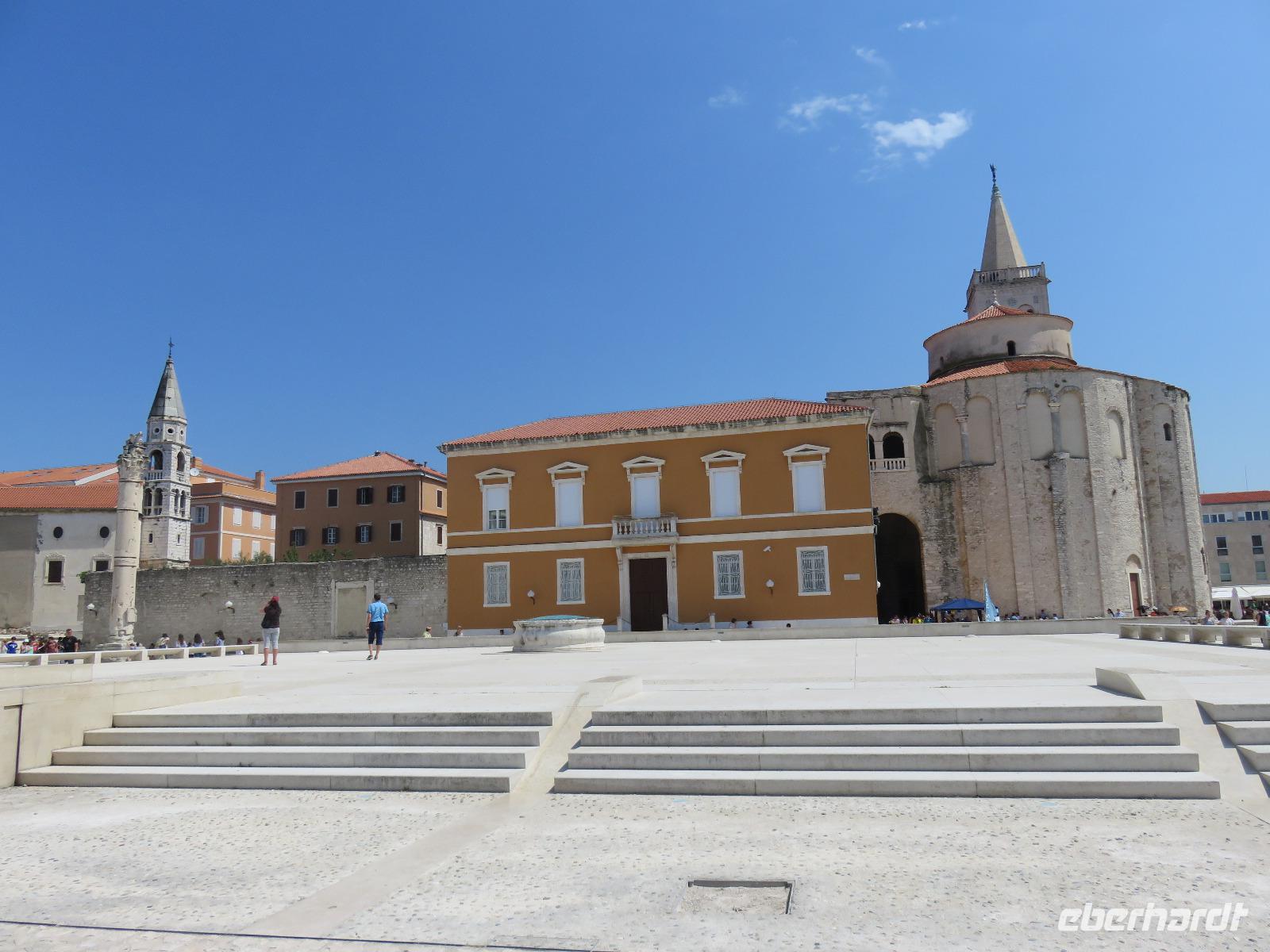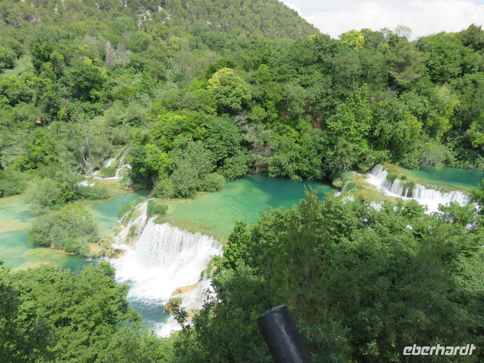 Auch diese Nacht war ruhig. Eigentlich merkten wir gar nicht, dass wir mit dem Schiff unterwegs sind. Am Morgen erreichten wir eine der ältesten Städte Kroatiens, Zadar. Unsere örtliche Reiseleiterin Jasna holte uns direkt im Hafen ab. Nach kurzer Busfahrt besichtigten wir zuerst die Licht- und die Meeresorgel. Wir lauschten den Melodien des Meeres! Eine tolle Idee des kroatischen Architekten Nikola Bašic. Unser Stadtspaziergang führte uns nun vorbei an der zweigeschossigen Rundkirche des Heiligen Donat, durch das römische Forum zur Domkirche der Heiligen Anastasia. Hier sangen und tanzten die Kinder der Stadt auf lustige Art und Weise. Nach einer kurzen Stippvisite und etwas Freizeit begaben wir uns durch das Sveti-Rok-Tor, eines der alten Stadttore, hinaus aus der Altstadt. Hier stand unser Bus für den zweiten Teil unseres Eberhardt-Inklusiv-Ausfluges bereit. Wir fuhren zu den Krka-Wasserfällen. Wir spazierten zuerst zu einem Aussichtspunkt. Nun teilten wir uns in eine Gruppe der Schnelläufer und eine der Genießer. Doch halt, genossen haben wir alle unsere Zeit in diesem Naturparadies. Dann lag er vor uns und breitete seine natürliche Schönheit aus - der Skradinski Buk, der spektakulärste Wasserfall im Nationalpark. Über 17 Kaskaden und 45 Meter Höhe stürzte, rauschte und polderte das Wasser in die Tiefe. Nach einer Pause an diesem eindrucksvollen Naturschauspiel spazierten wir im Nationalpark. Die Natur bot uns eine Fülle interessanter Beobachtungen: munter tummelten sich Fische im klaren Wasser, blaue Libellen tanzten in der heißen Luft, Vögel zwitscherten um die Wette, Frösche gaben ihr Konzert ... Nur einen haben wir nicht gesehen: Winnetou. Hier wurden Szenen der Filme Der Ölprinz oder Unter Geiern gedreht. Es störte nicht. Die Natur war umso schöner und beeindruckender. Gern wären wir noch etwas hier geblieben ... aber 17.30 Uhr war Alle Mann an Bord und diese Zeit ist für alle Kreuzfahrer Gesetz.