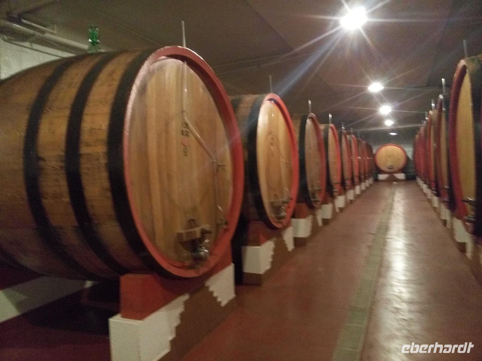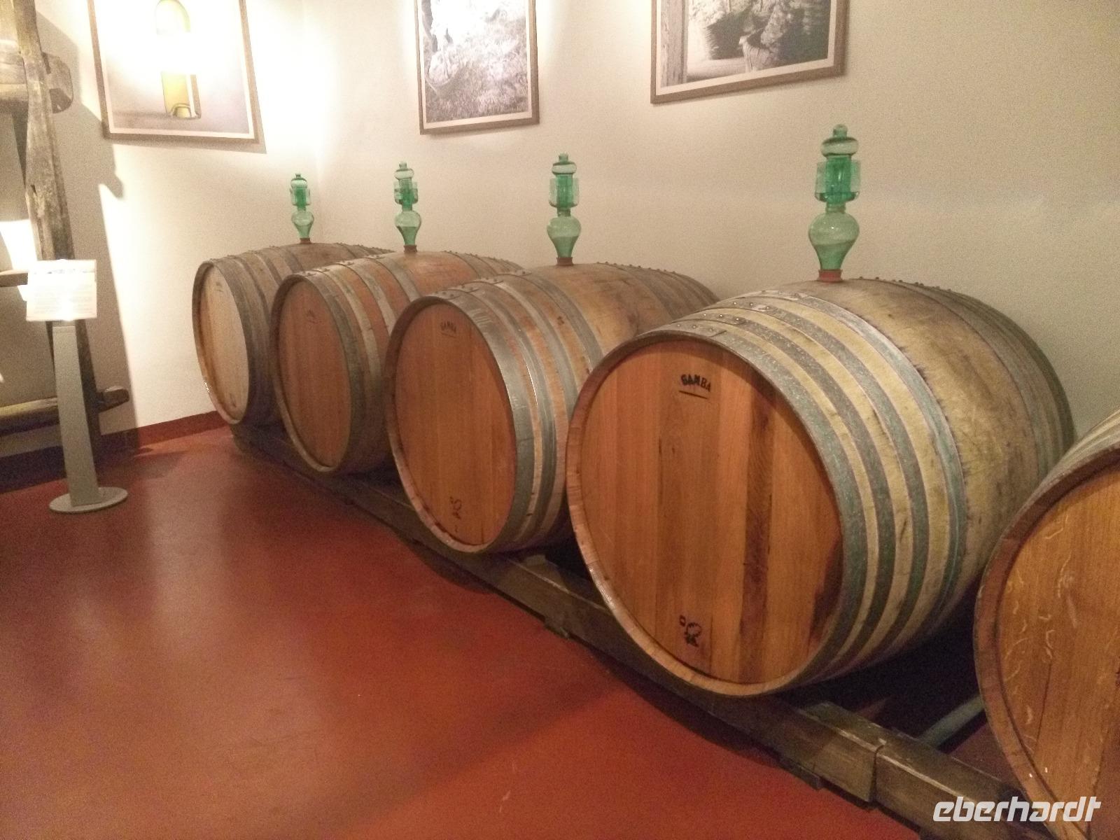 Der nächste Tag hat uns mit dem starken Regen begrüsst. In der Hoffnung auf besseres Wetter sind wir Richtung Süden gefahren und eine kurze Pause bei dem Weingut Zonin in dem Örtchen Gambellara gemacht. Mit der Hilfe von Astrid haben wir die Geschichte von diesem alten Weingut entdeckt, seine Fässer aus kostbarem französischem und slawonischem Eichenholz voll von Rotwein gesehen. Nach der Tour wurde uns eine Kostprobe angeboten. Da heute Herr Taubert seinen 60. Geburtstag gefeiert hat, hat er einen Kuchen vom Chefkoch als Geschenk bekommen. Leider dürften wir nichts einkaufen, weil unsere Reise uns weiter nach AIDA führte, wo man keine Lebensmittel mitnehmen darf.