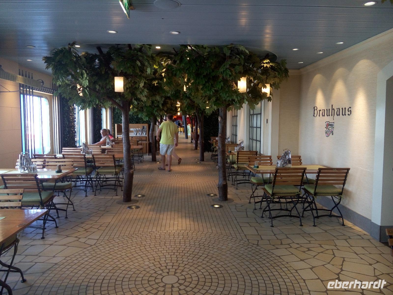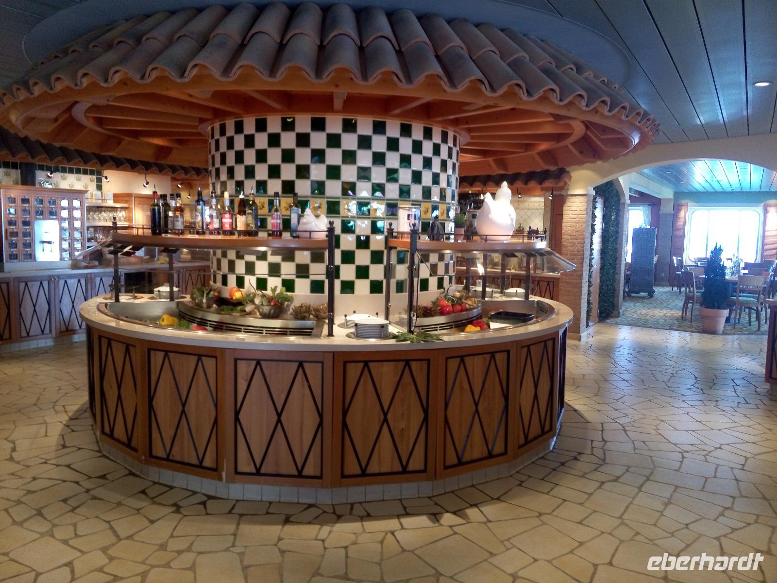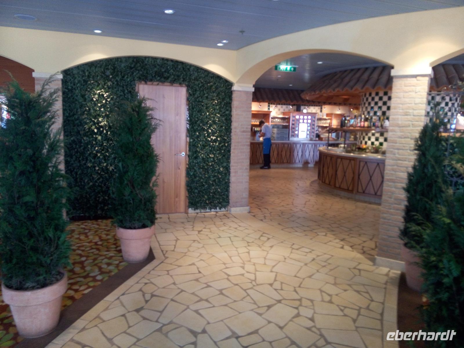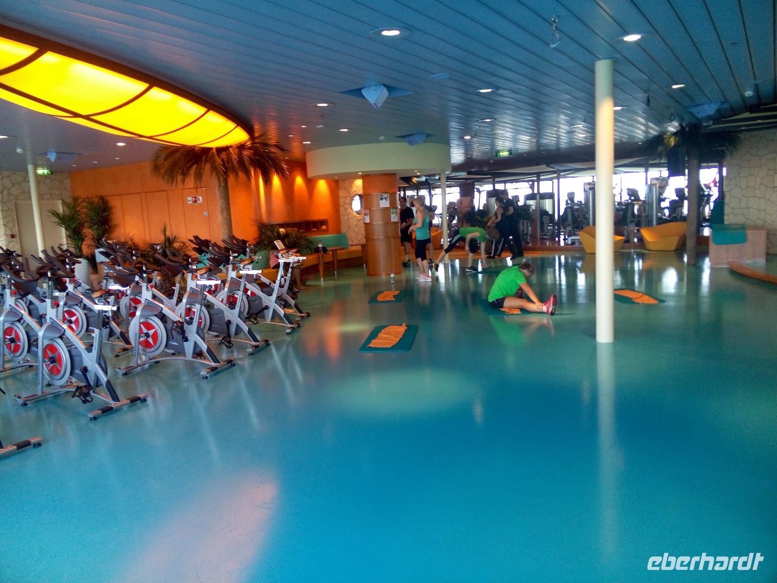 Um 11.30 hatten wir einen Schiffsrundgang mit der Tanzlehrerin Katharina. Sie hat uns alle Restaurants, Fitnessstudio, Kino usw. usw. usw. gezeigt. Sofort haben wir die Orientierung verloren, aber mit ein paar Eselsbrücken von ihr wurde schnell alles klar. Wo ist das Schiff am dicksten? Wisst ihr da? Naja, klar, wo sich die Restaurants befinden :-)