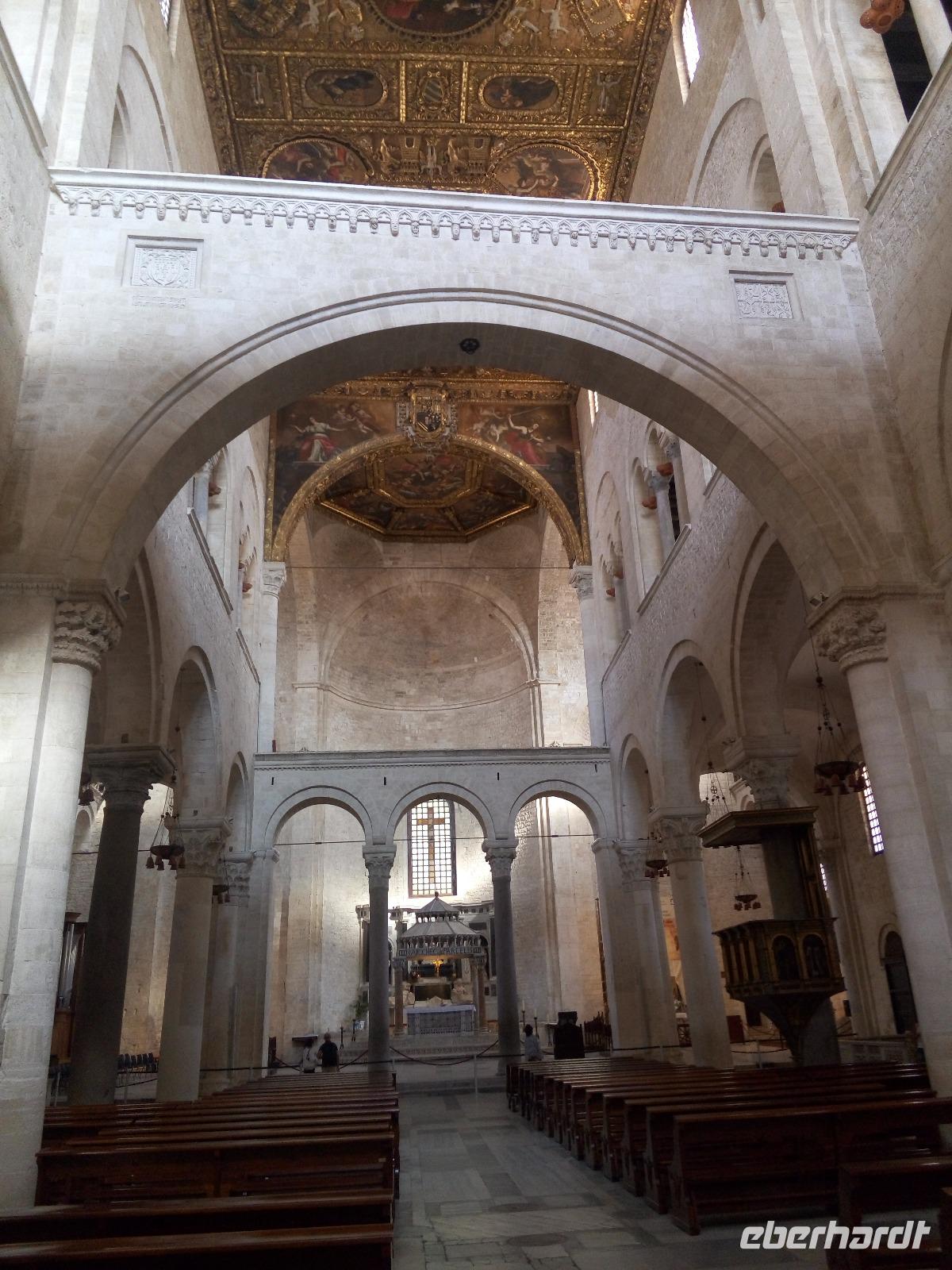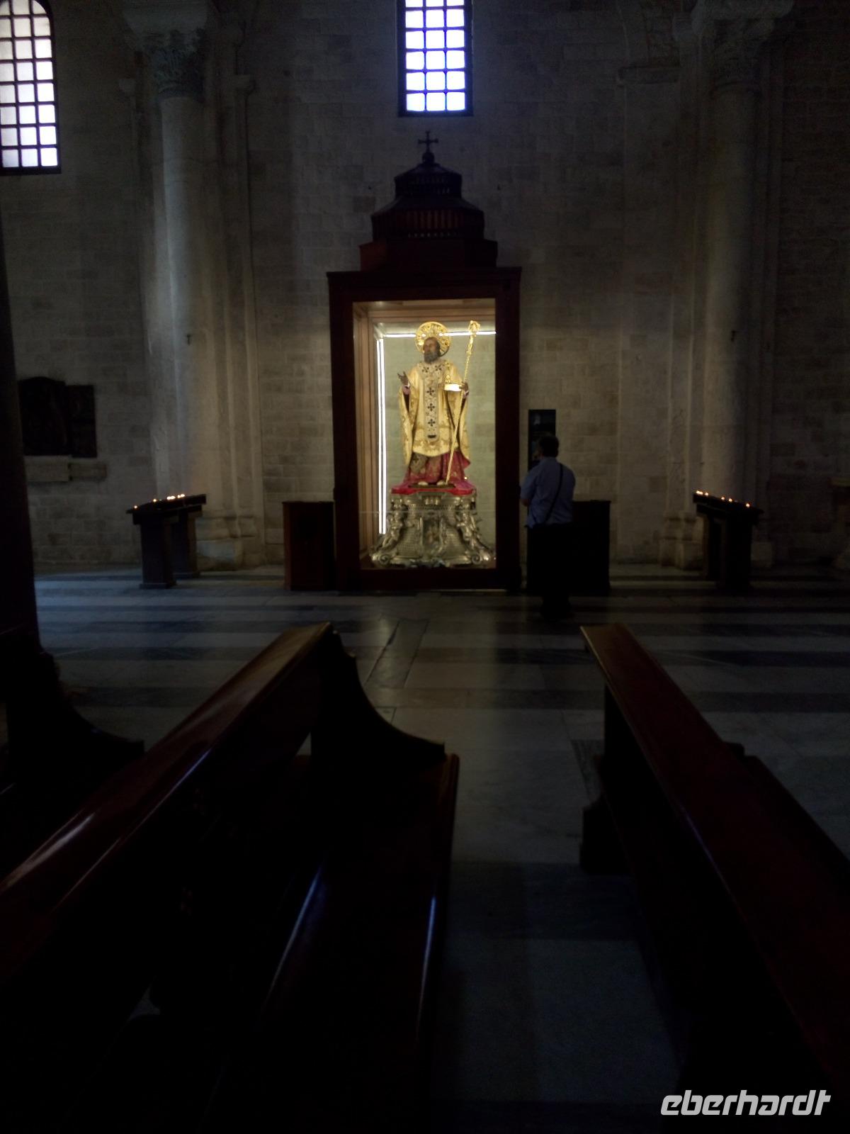 Ansonsten ist Bari für ihre Kirchen bekannt. Gleich im Zentrum kann man die Basilika San Nicola sehen. Sie ist heute eins von den bedeutendsten Pilgerzielen für Orthodoxe und Katholiken. Die Kirche wurde gegründet als die Seefahrer aus Bari die Reliquien von heiligen Nikolaus geklaut haben und nach Bari gebracht haben. Das ist eine der wenigen Kirchen wo die orthodoxen und katholischen Messen an dem gleichen Ort stattfinden.